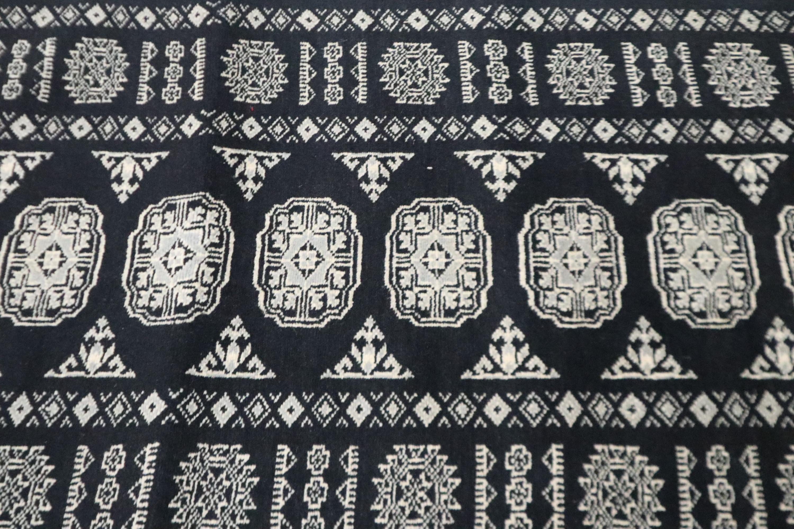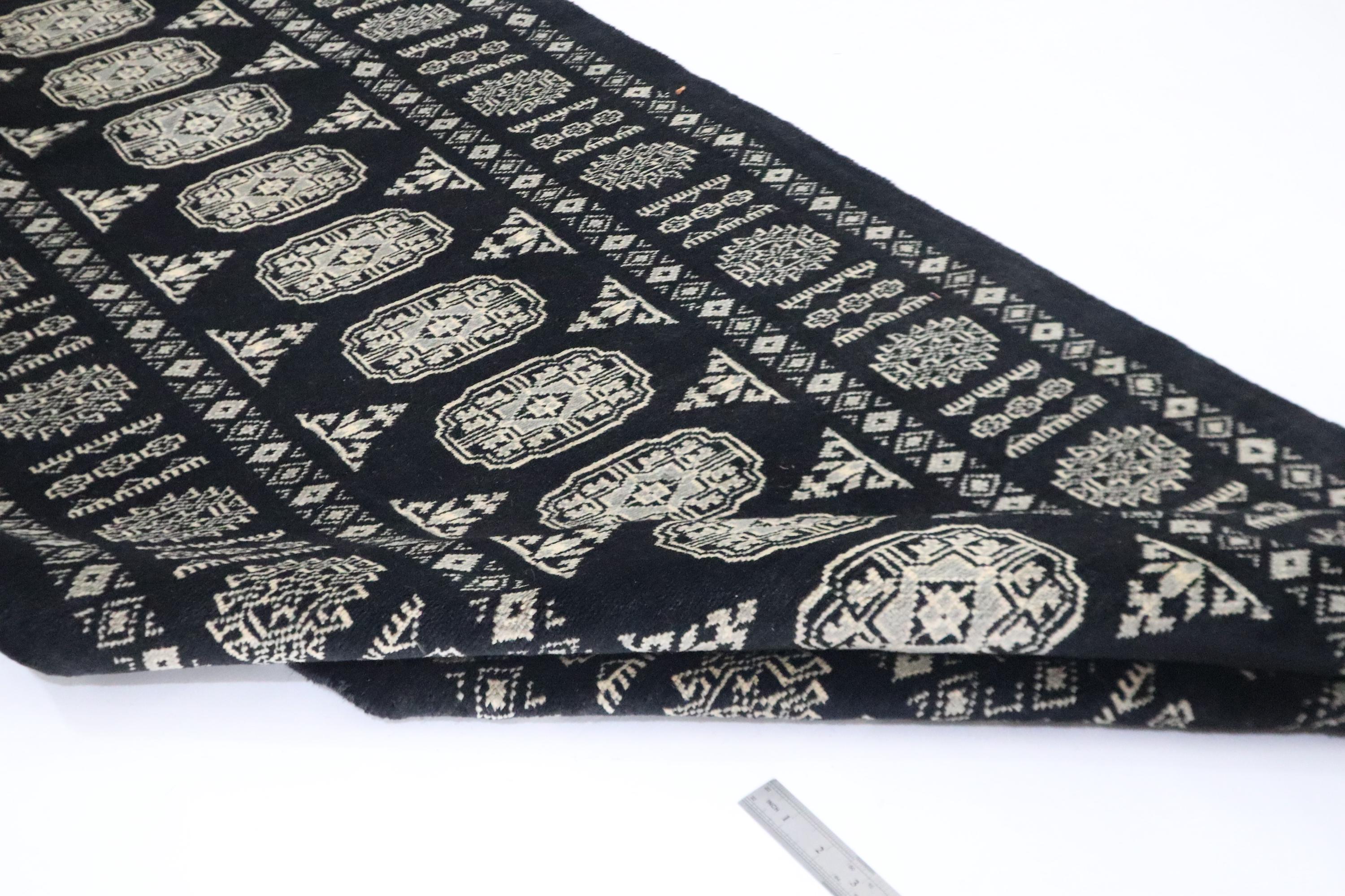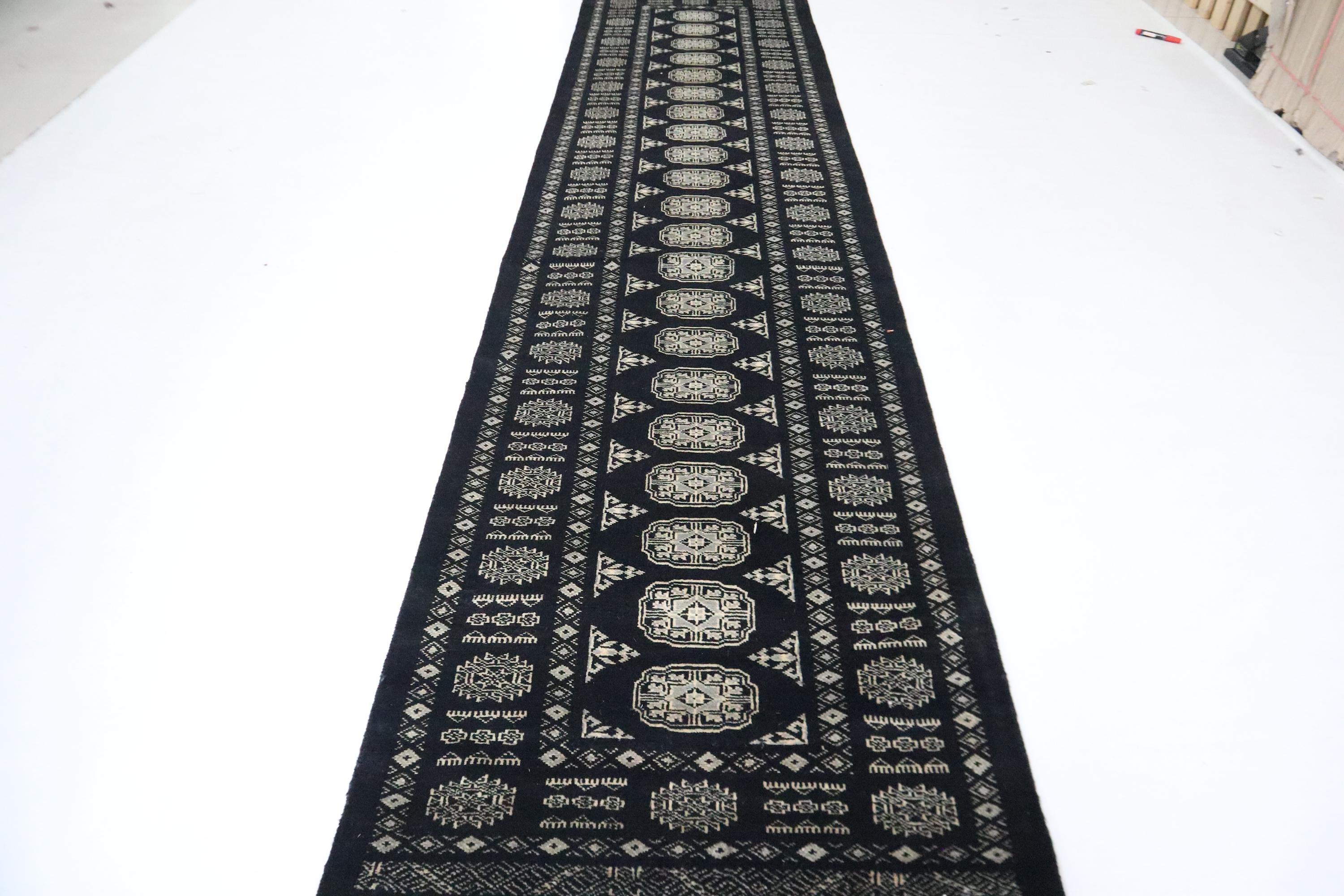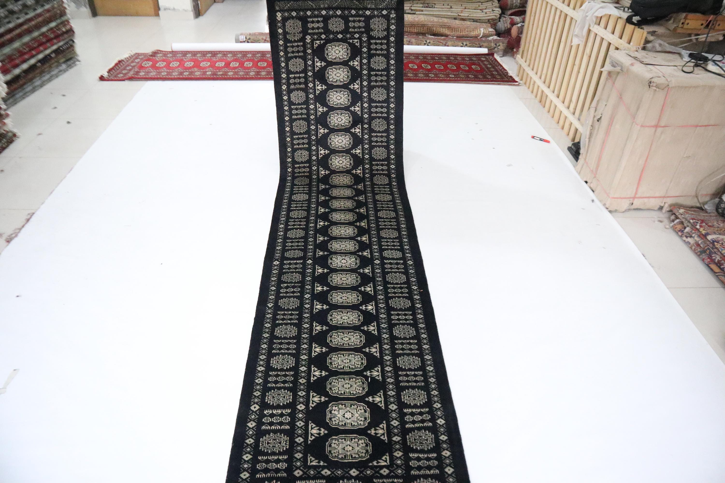 3x10 Ft Mori Bokhara Runner Rug, Black Runner, Hand Knotted Runner, Soft Wool Runner, Geometric Runner, Tribal Runner, Bedroom Runner