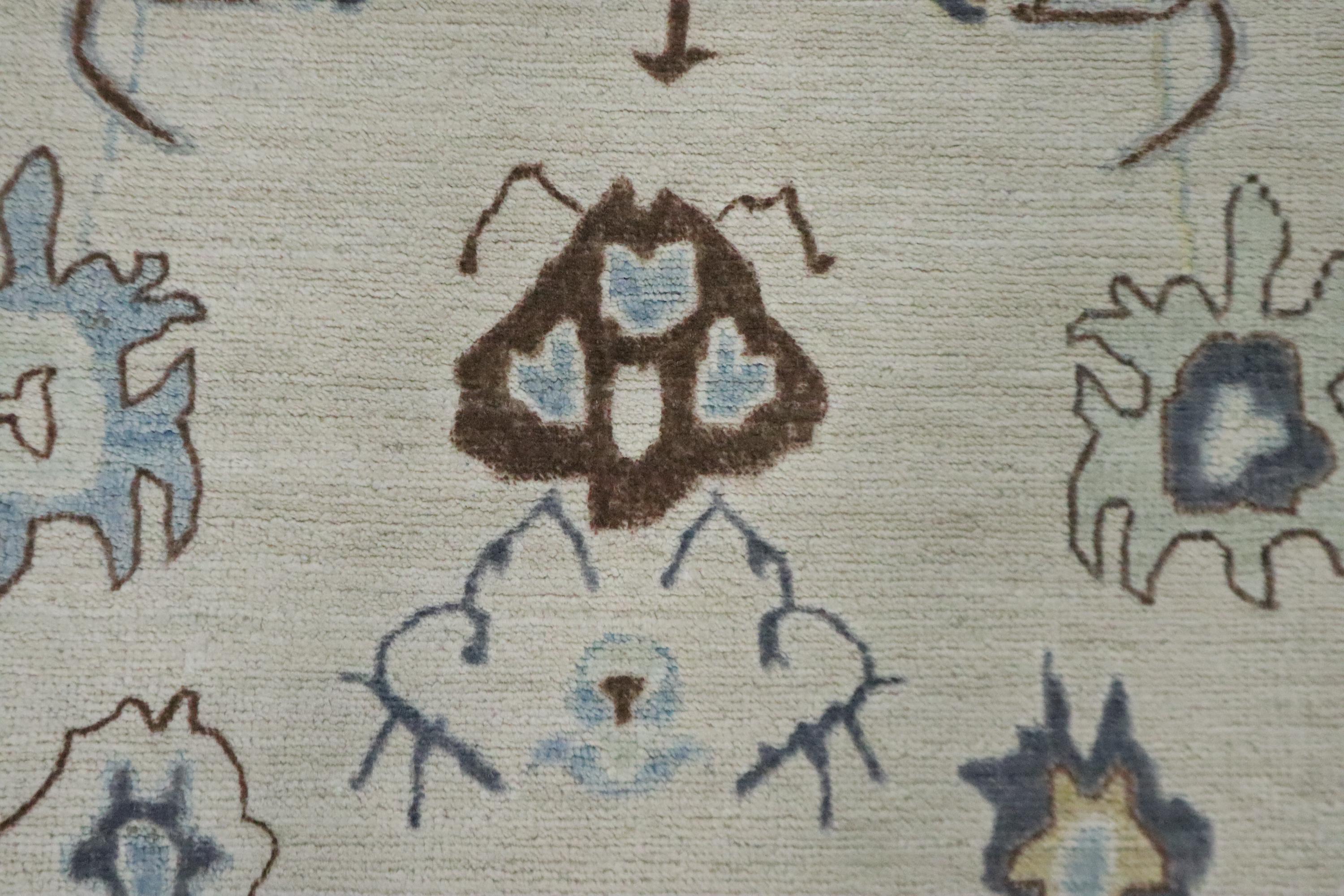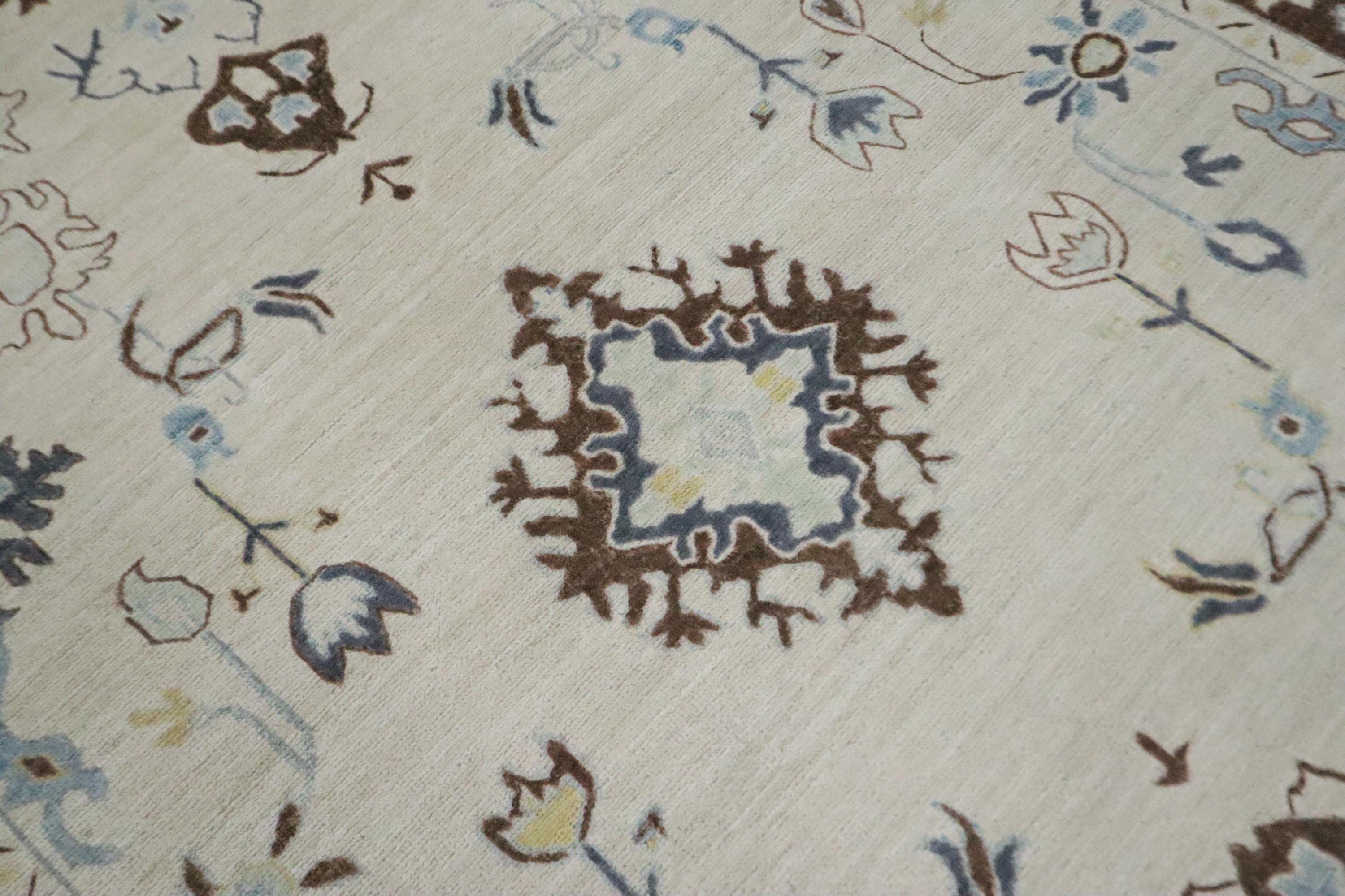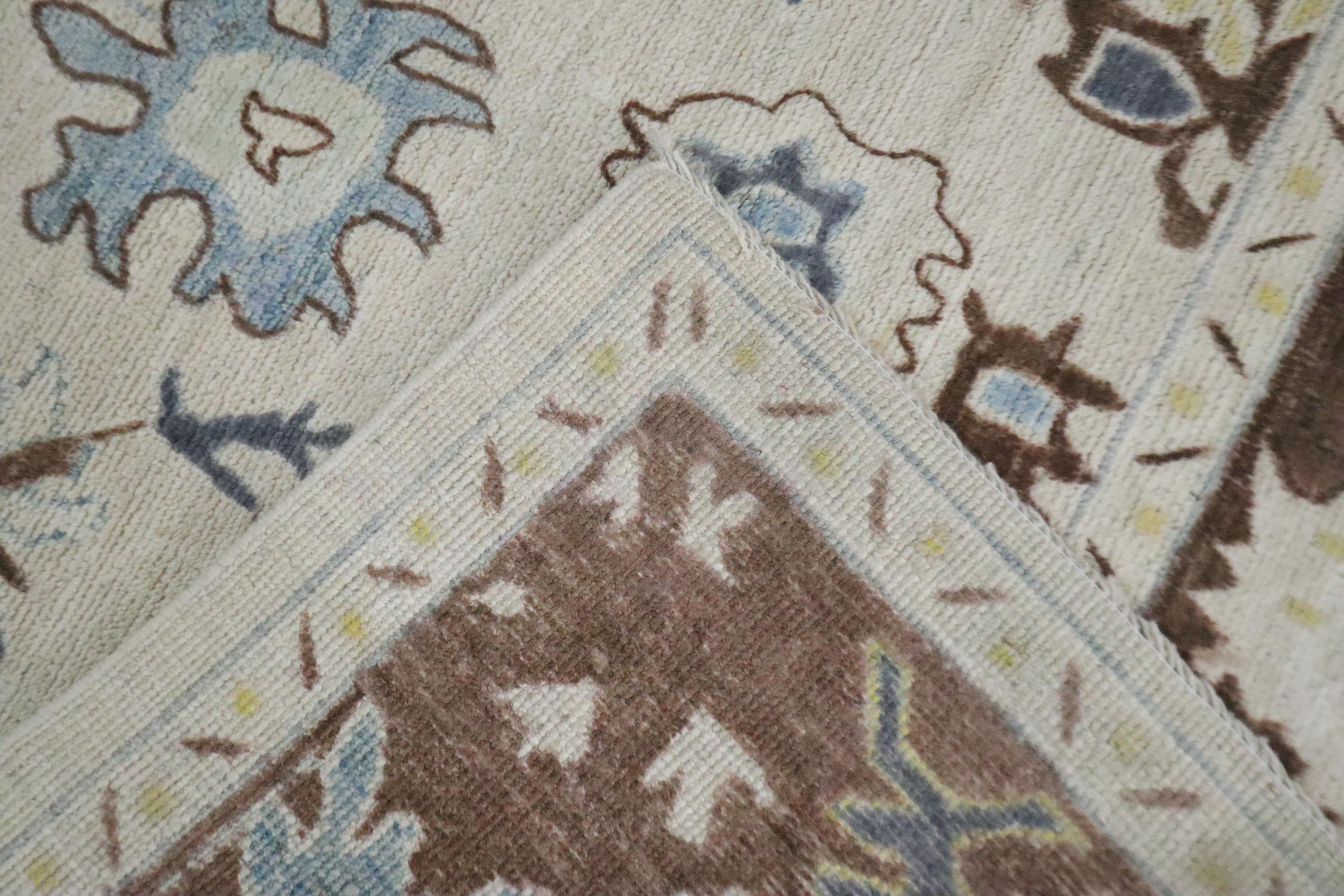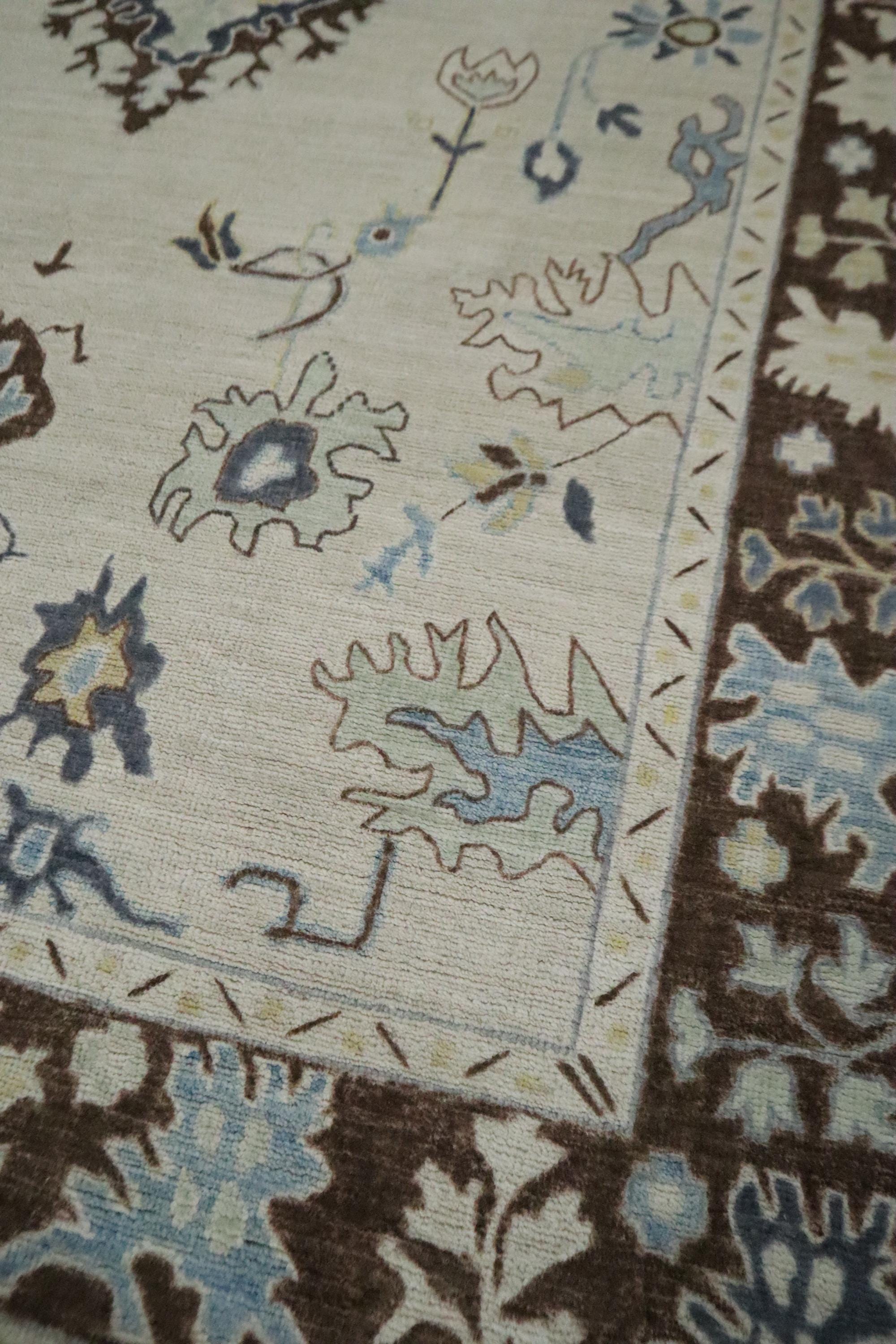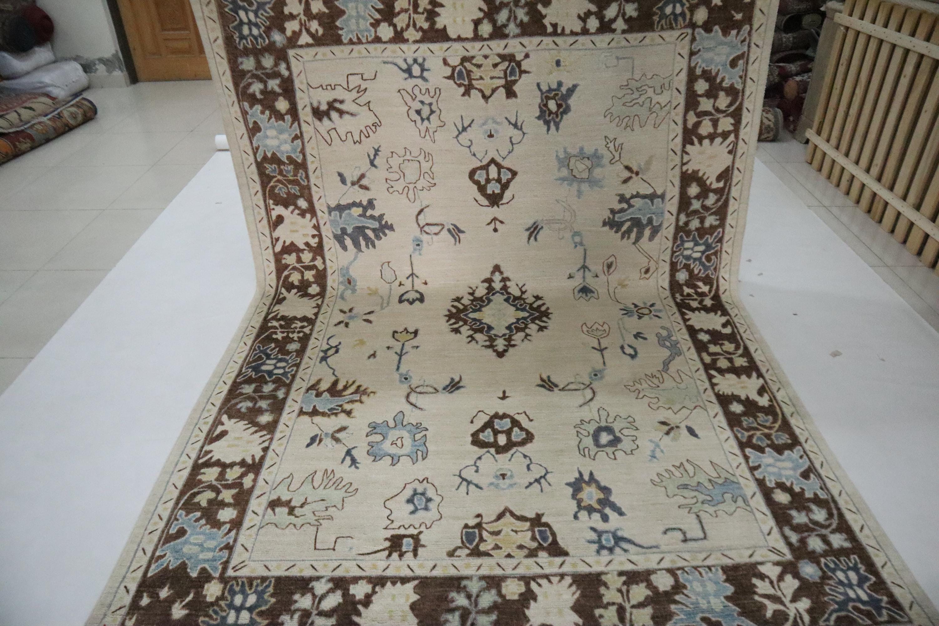 6x9 Ft Oushak Area Rug, Beige Brown Turkish Hand Knotted Floral Motif Soft Wool Rug, Oriental Rug, Bedroom Rug, Office Rug, Living Room Rug