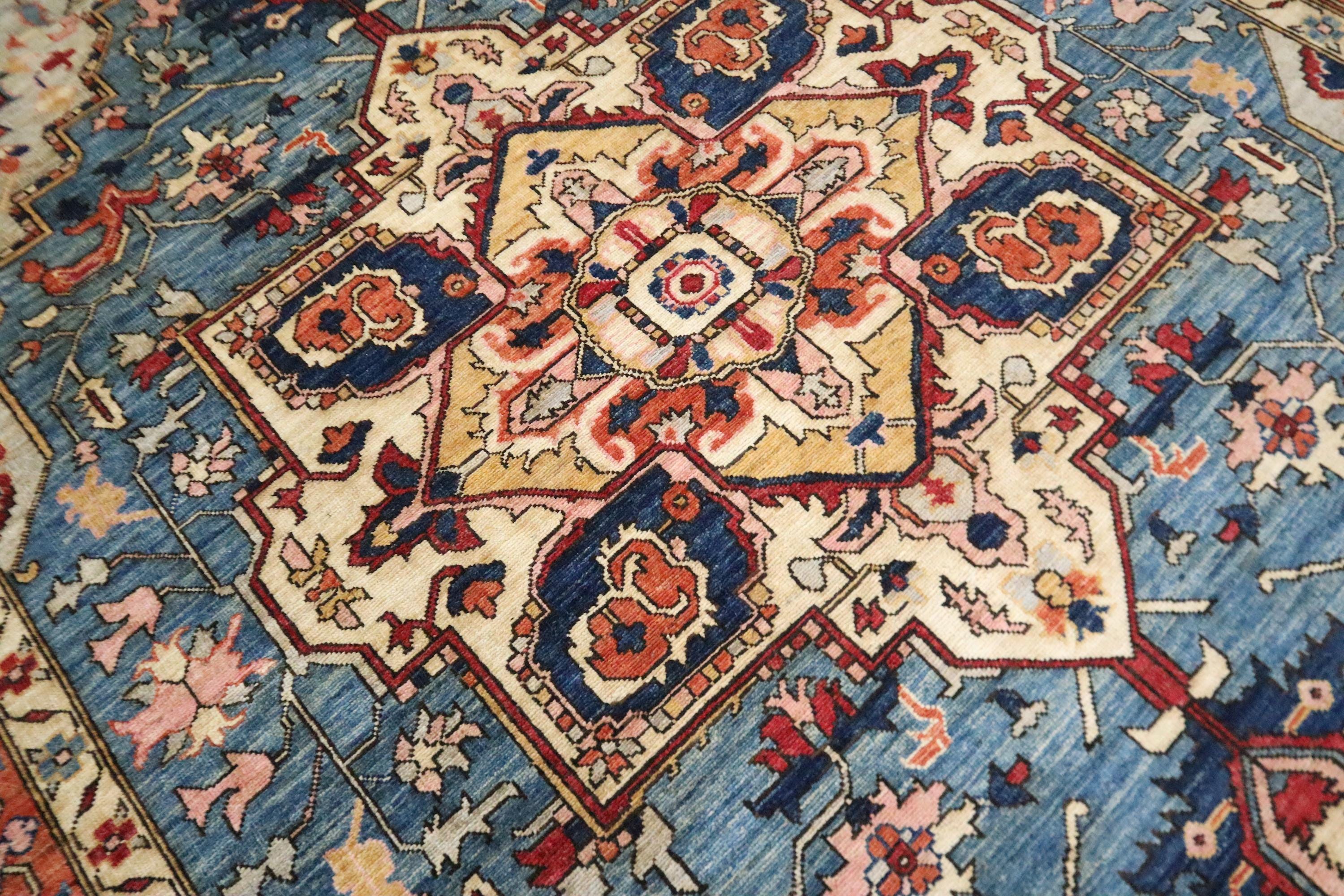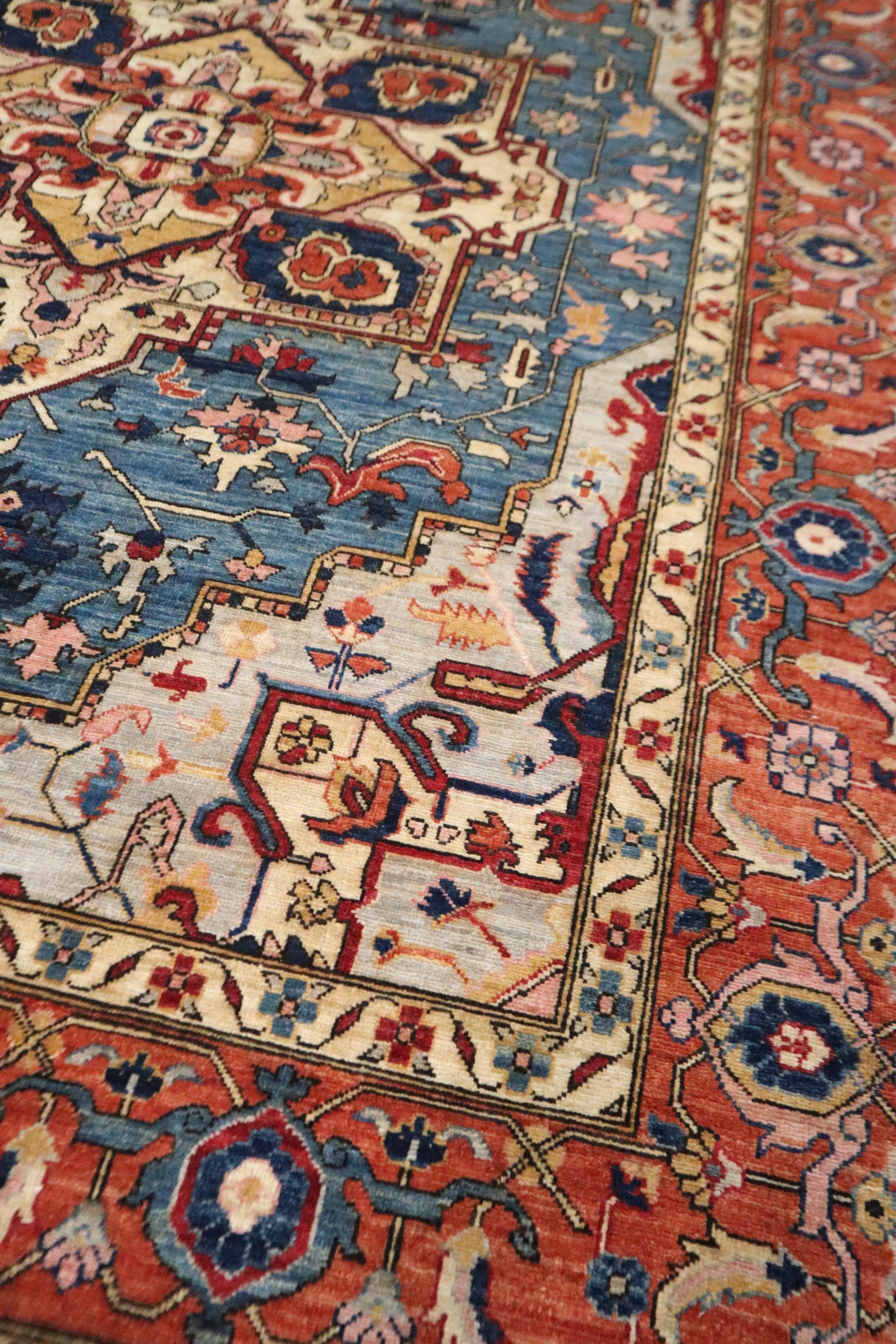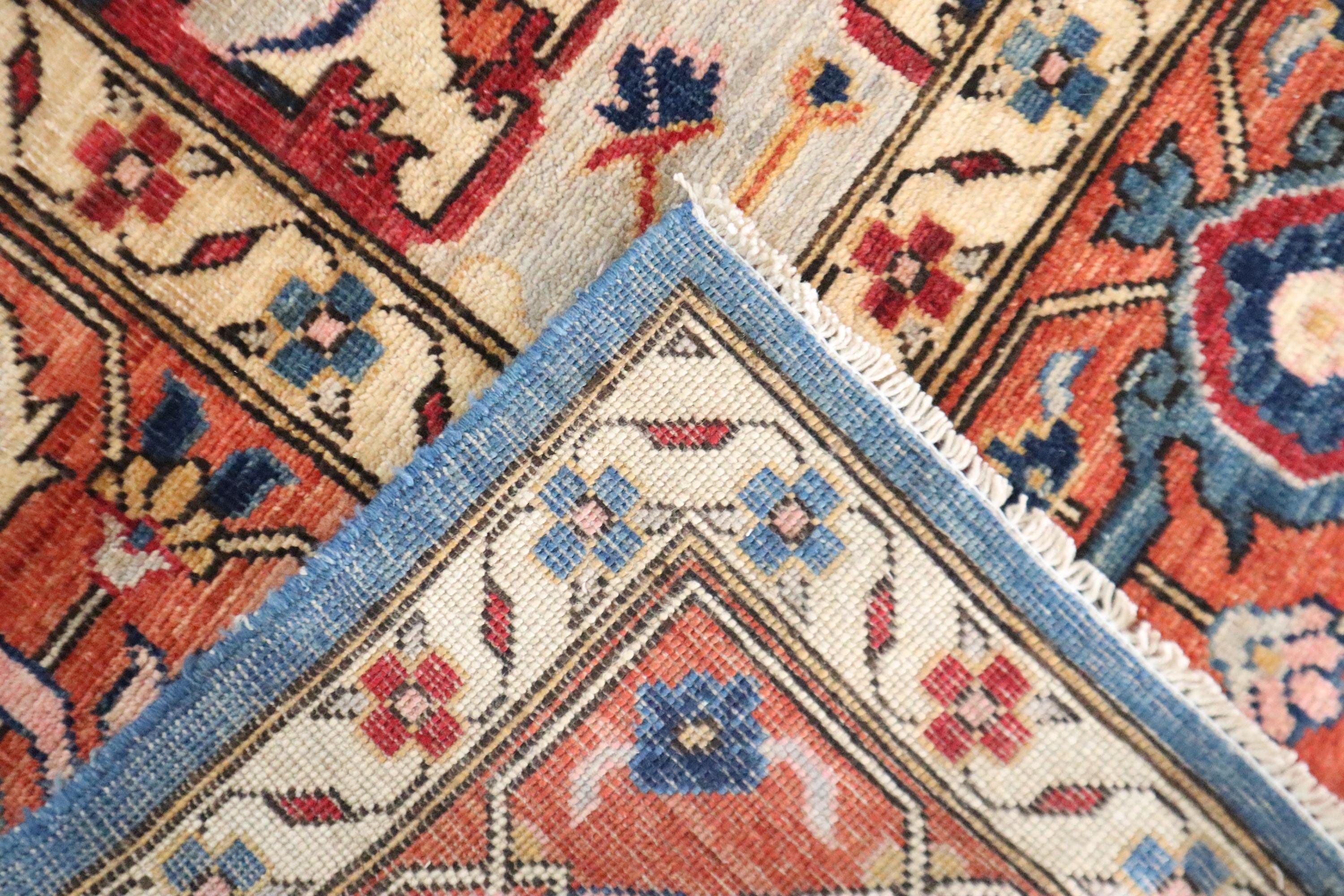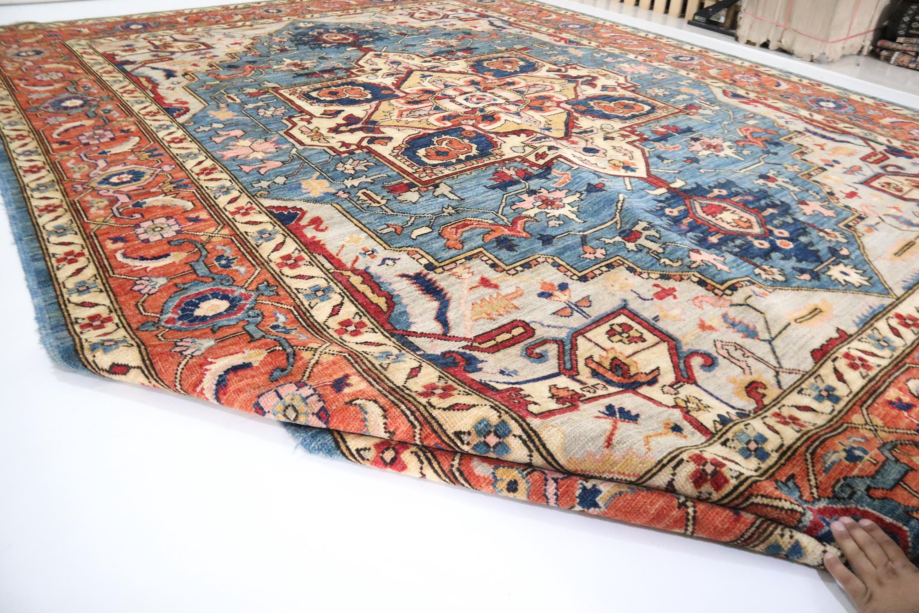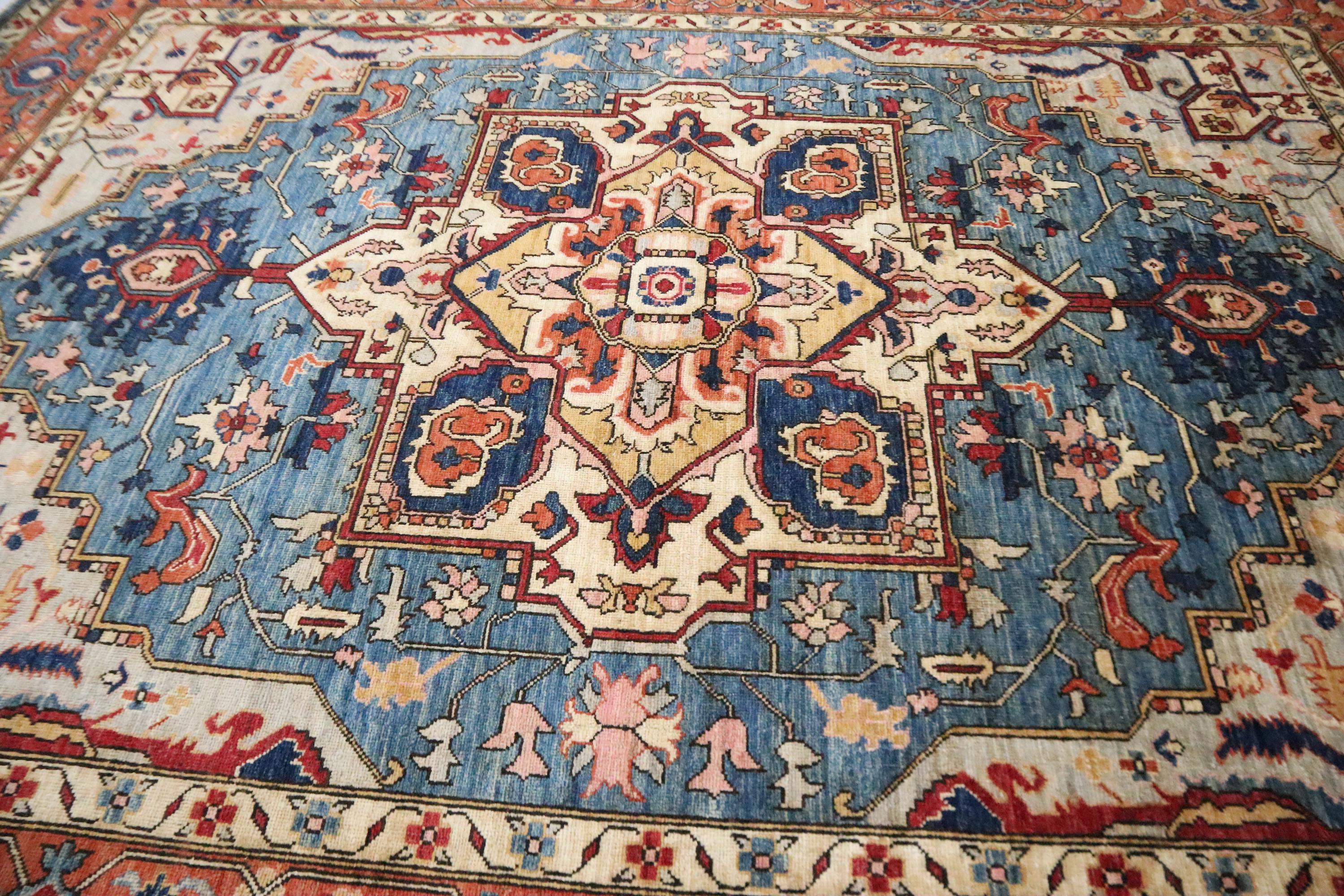 9x12 Ft Heriz Area Rug, Rust Blue Persian Style Afghan Hand Knotted Geometric Veg Dye Wool Rug, Traditional Rug, Bedroom Rug, Office Rug