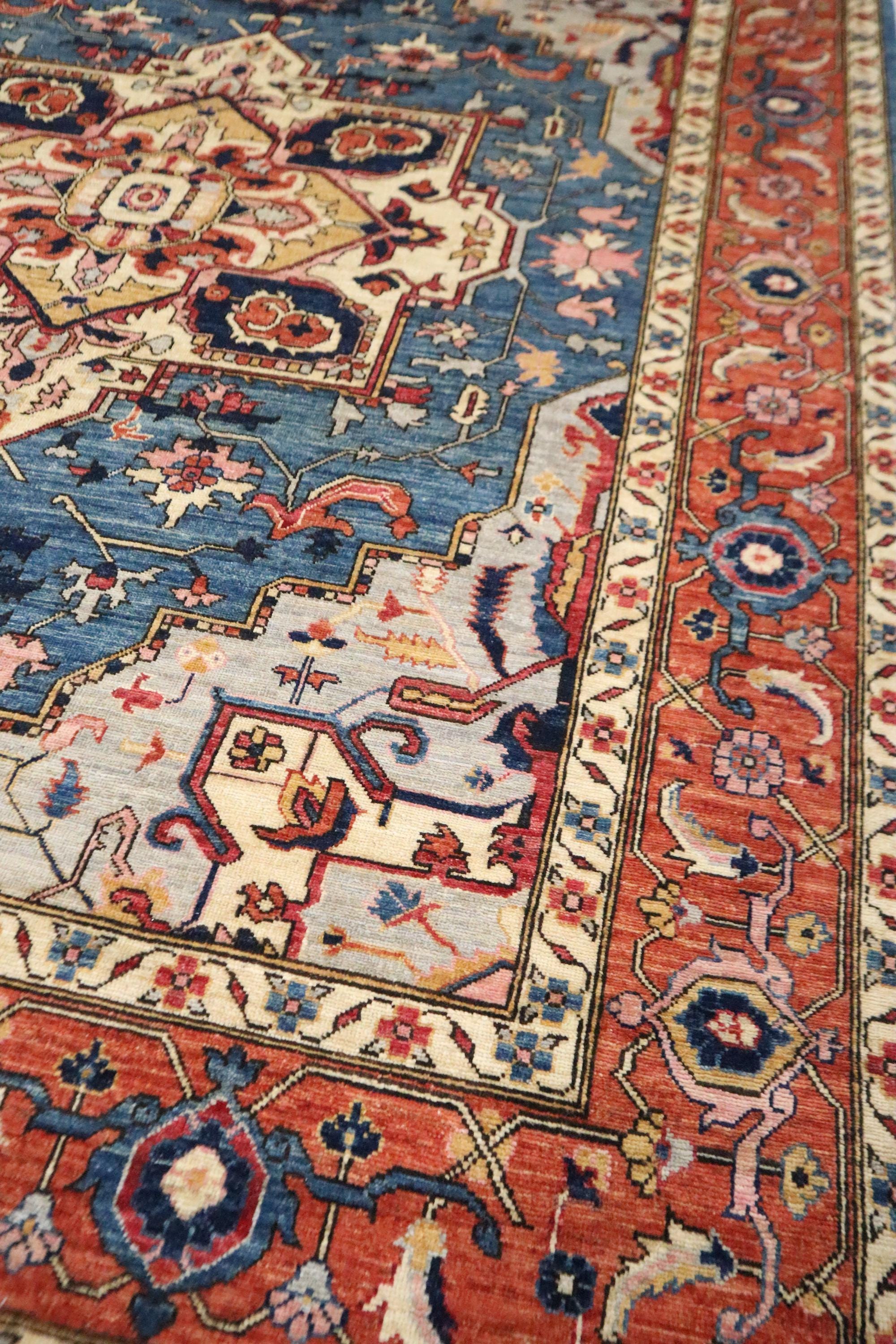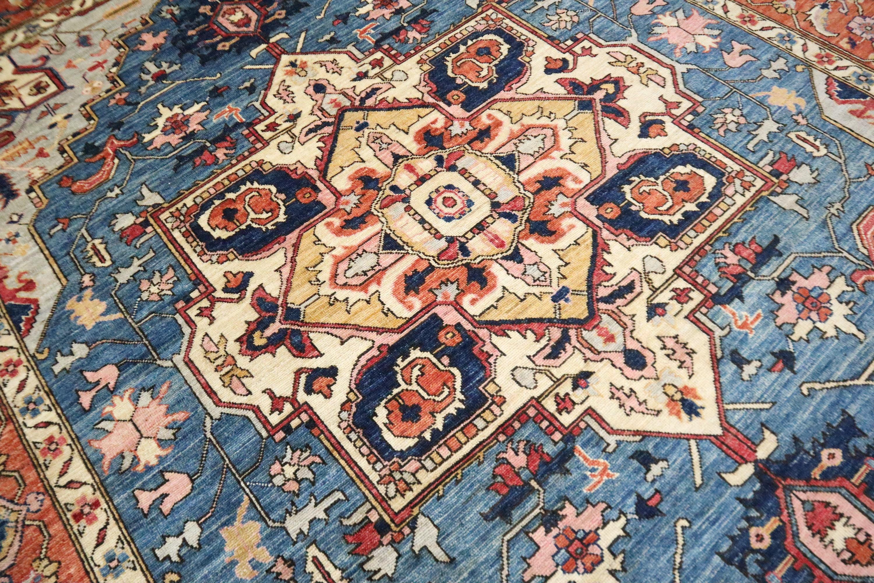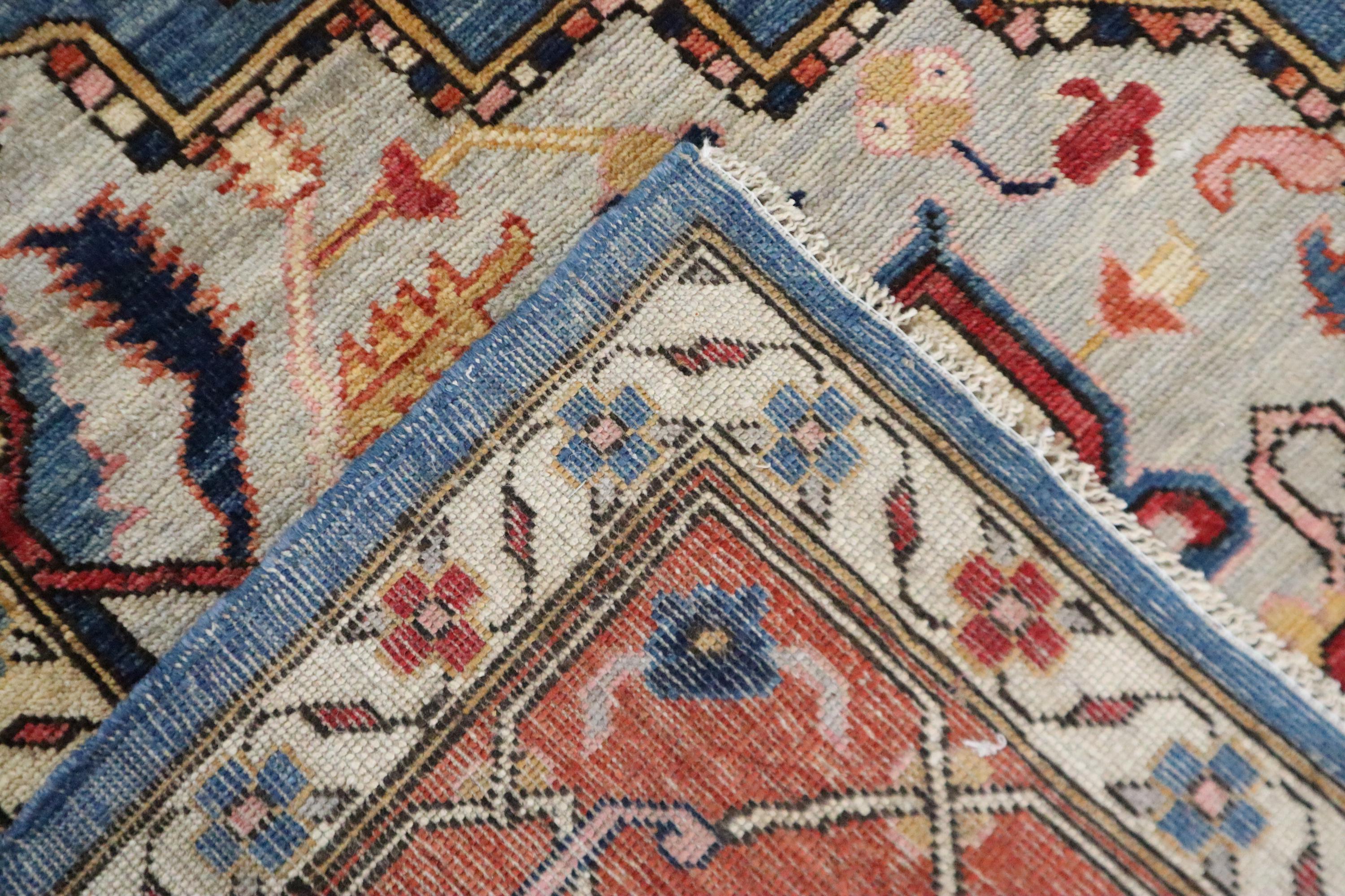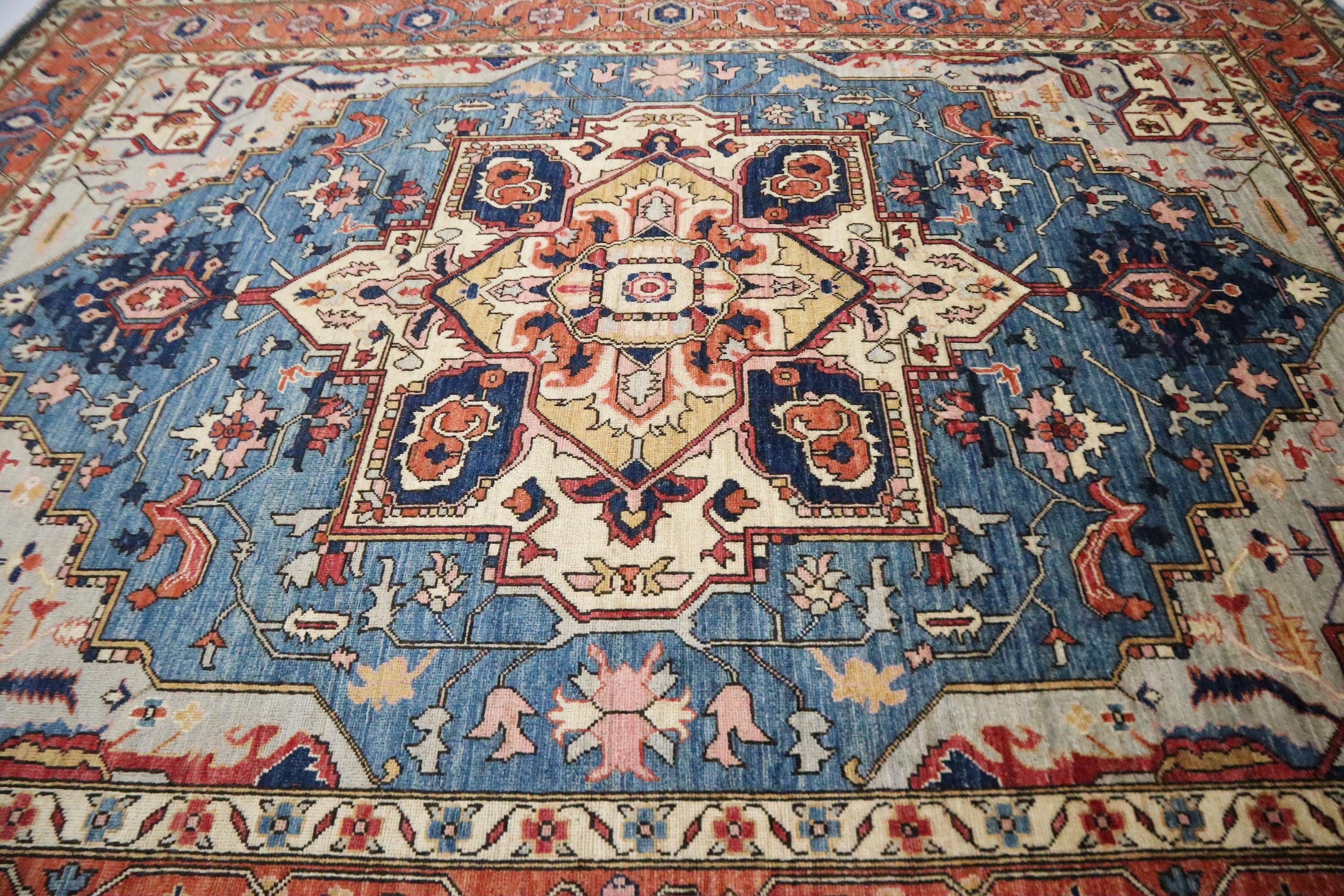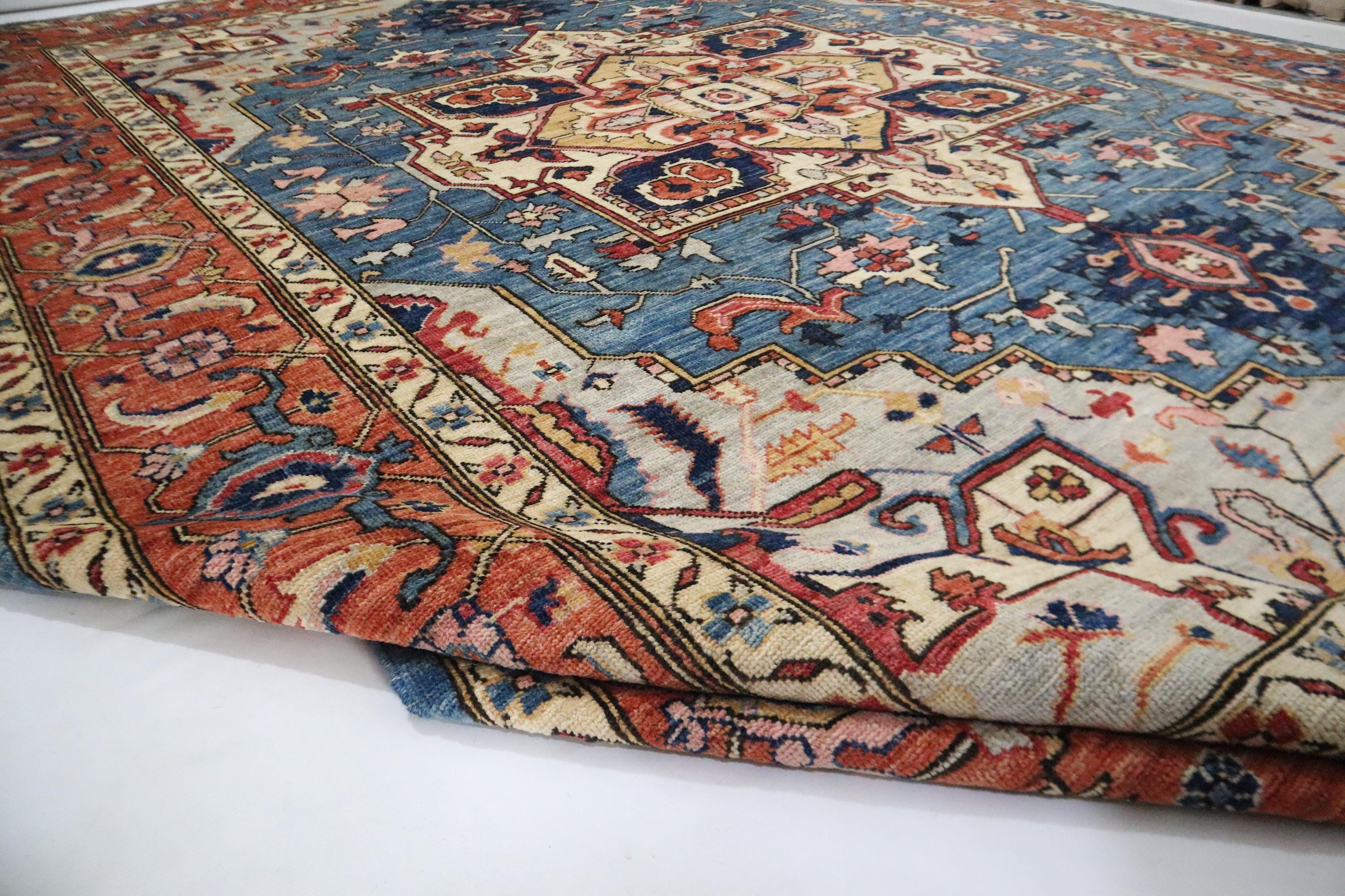 9x12 Ft Heriz Area Rug, Blue Rust Persian Style Afghan Hand Knotted Medallion Veg Dye Wool Rug, Geometric Rug, Bedroom Rug, Living Room Rug