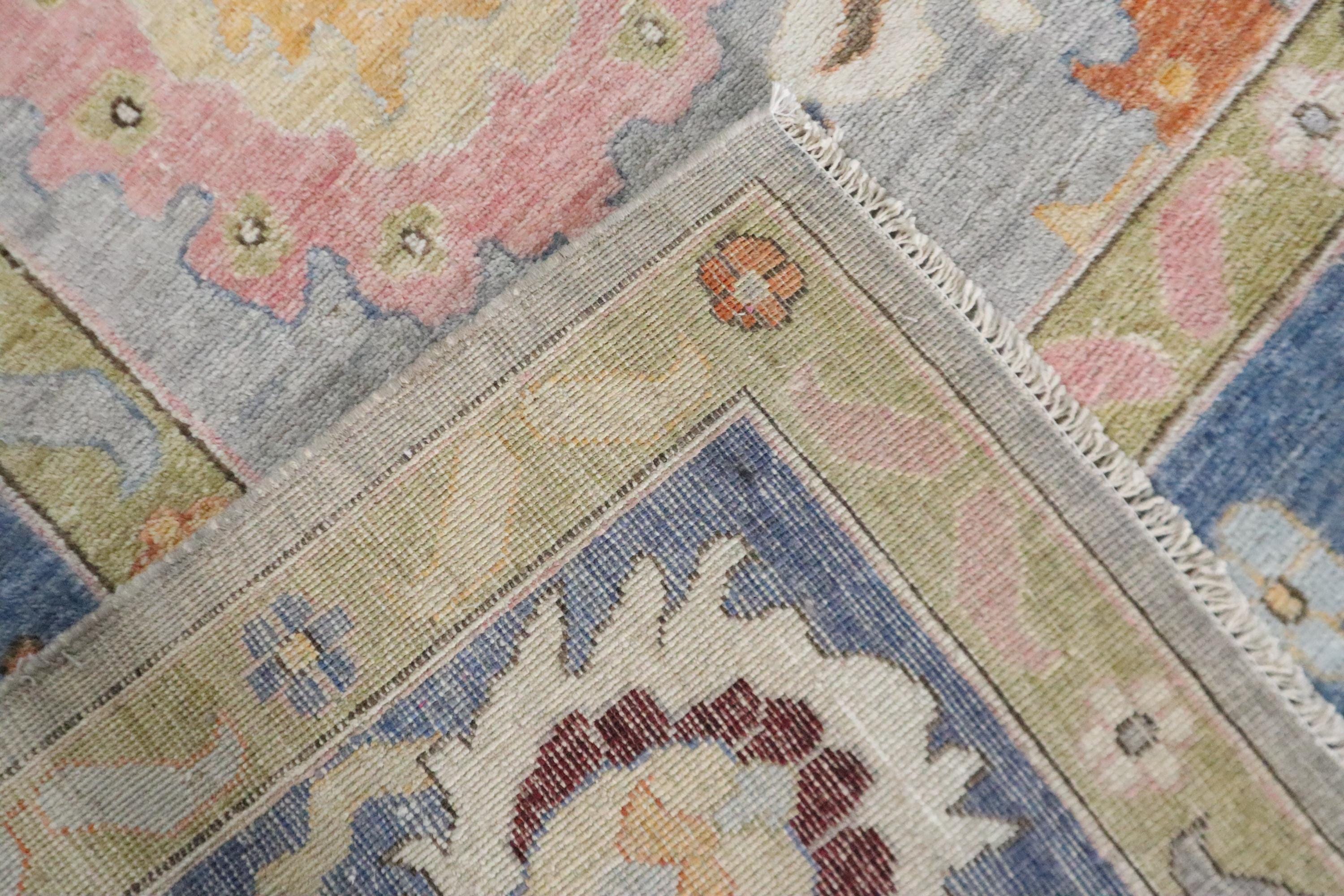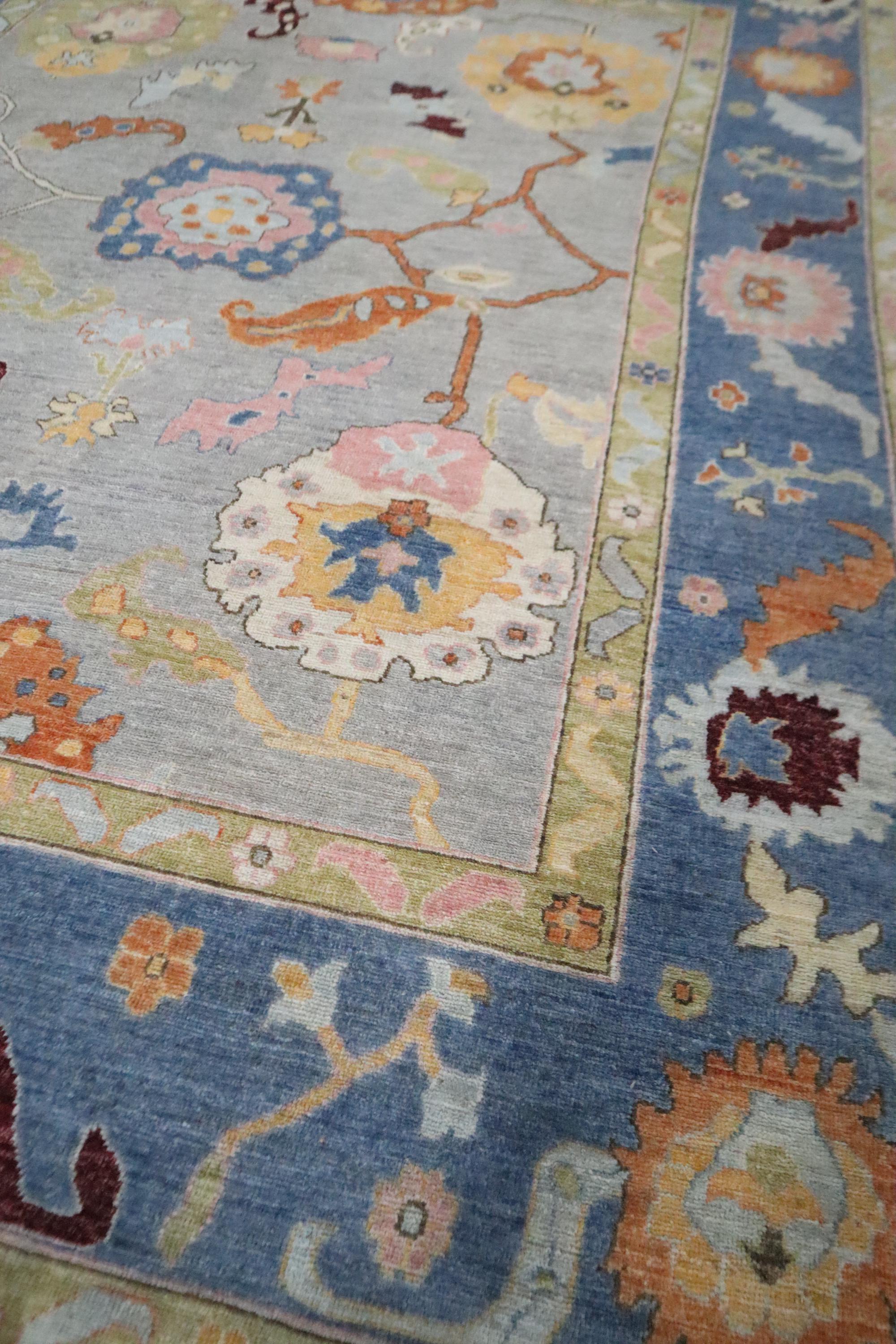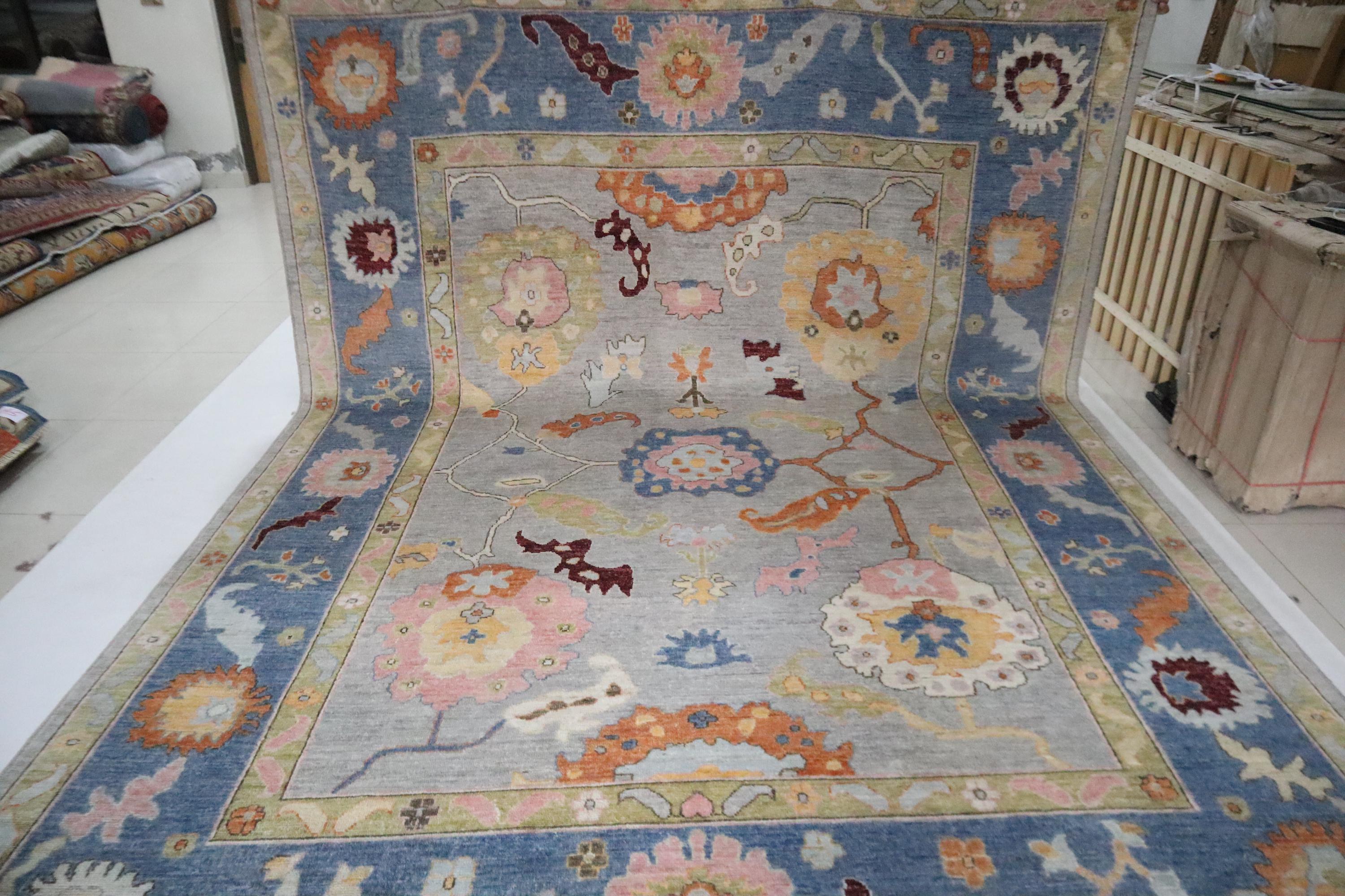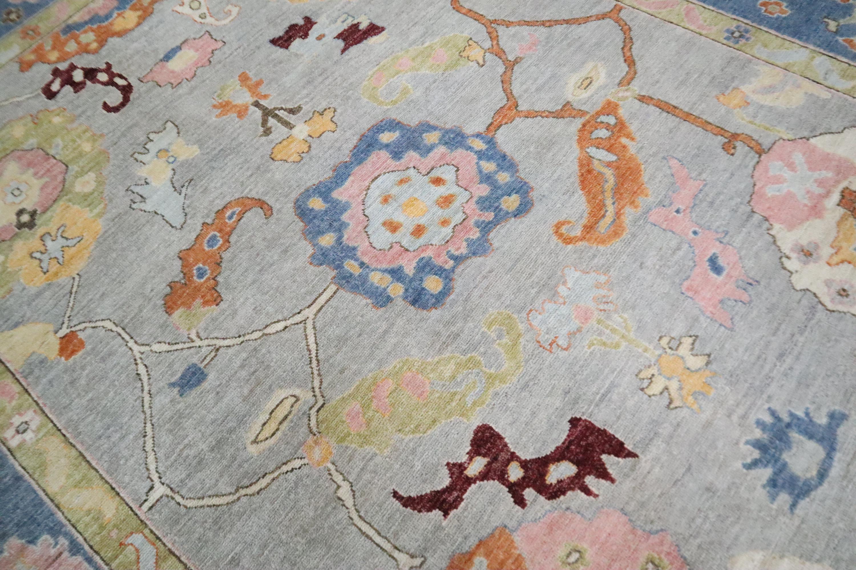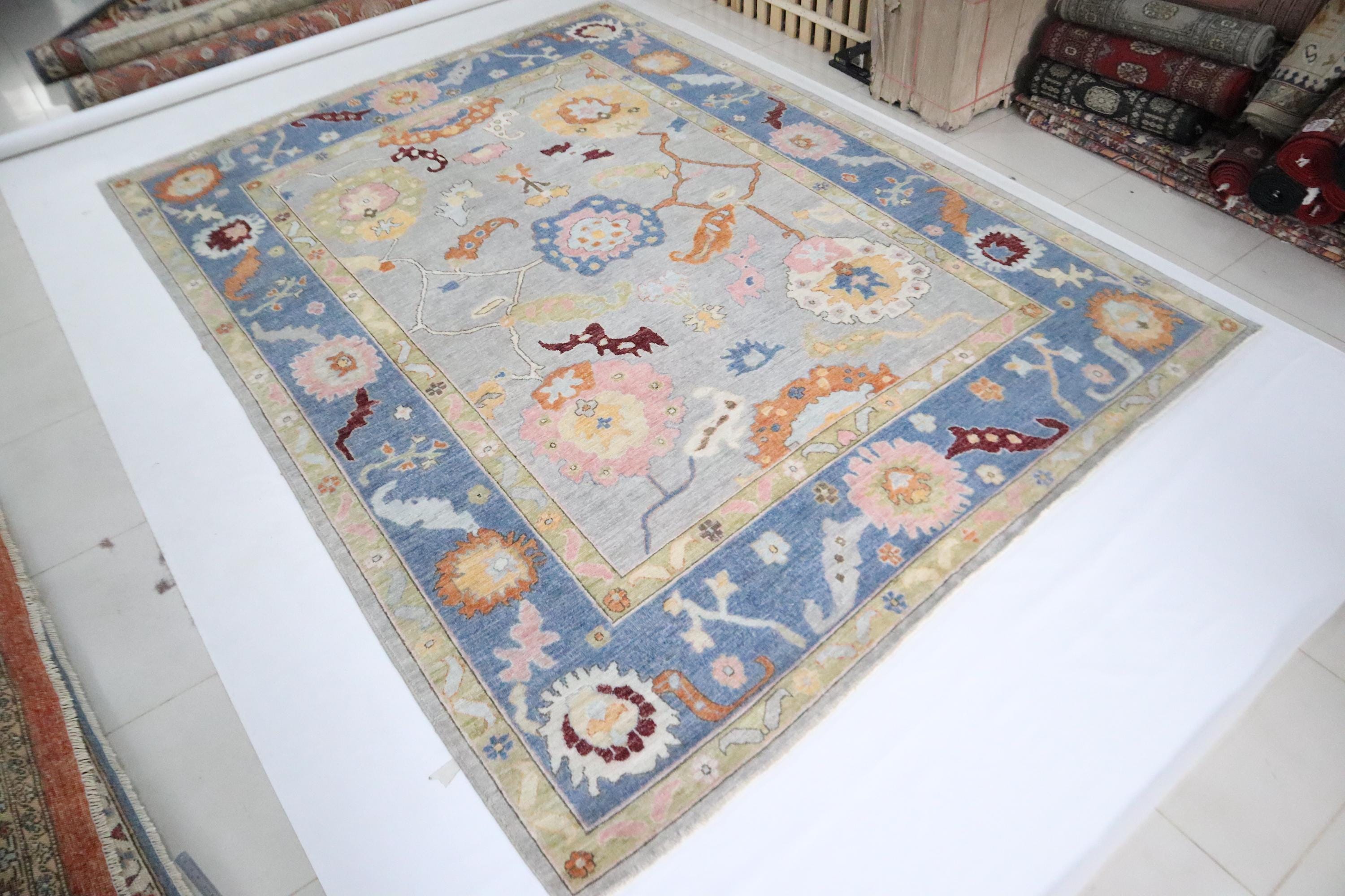 9x12 Ft Oushak Area Rug, Gray Blue Turkish Hand Knotted Floral Style Soft Wool Rug, Traditional Rug, Bedroom Rug, Living & Dining Room Rug