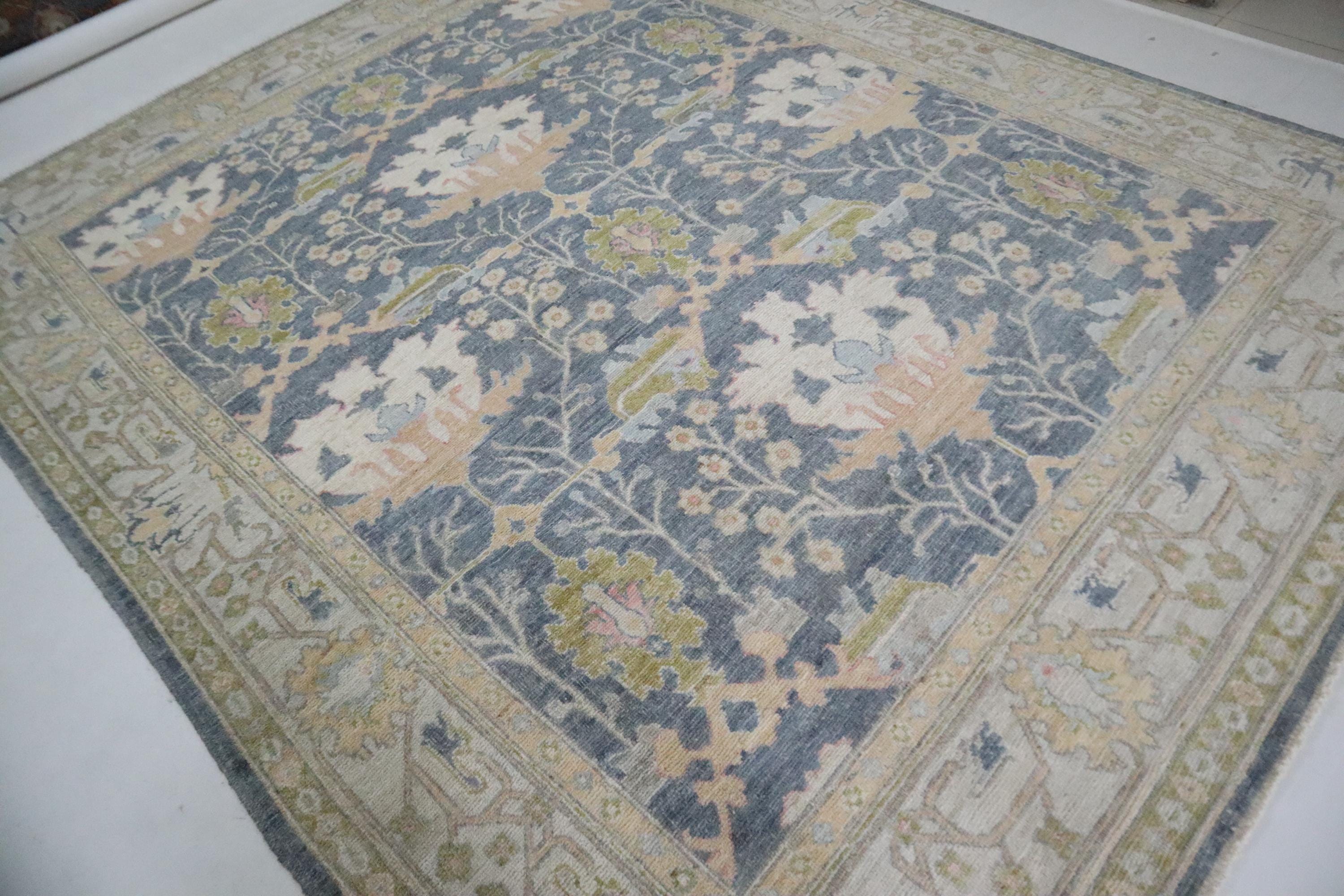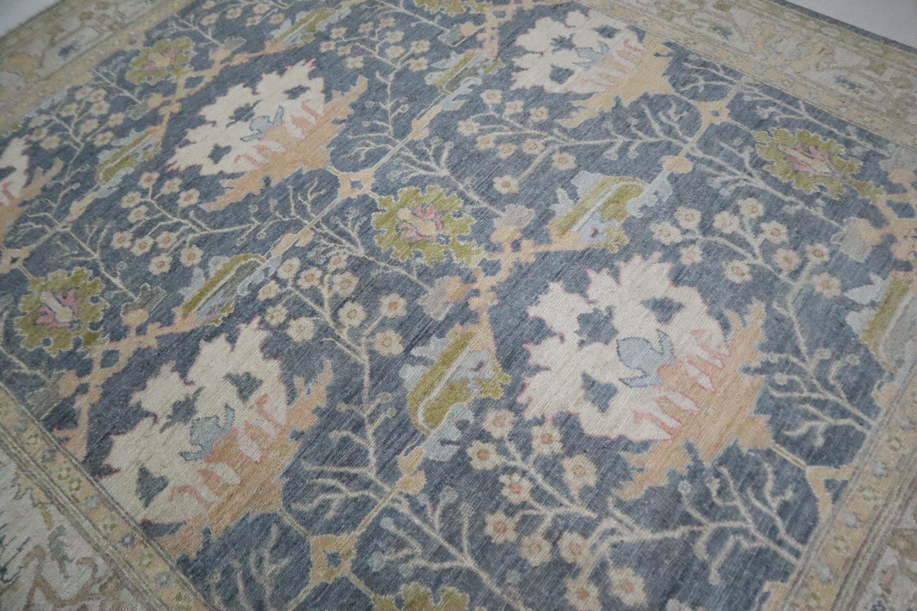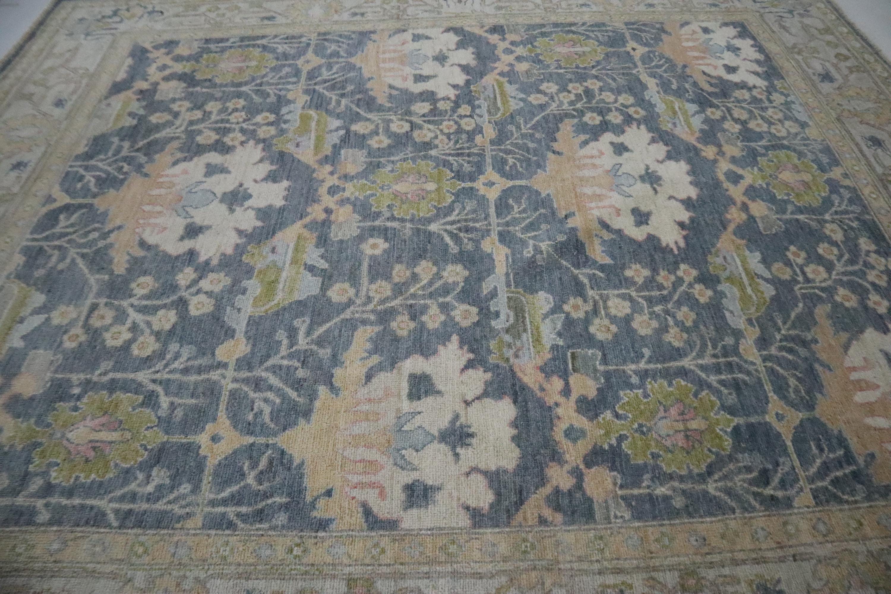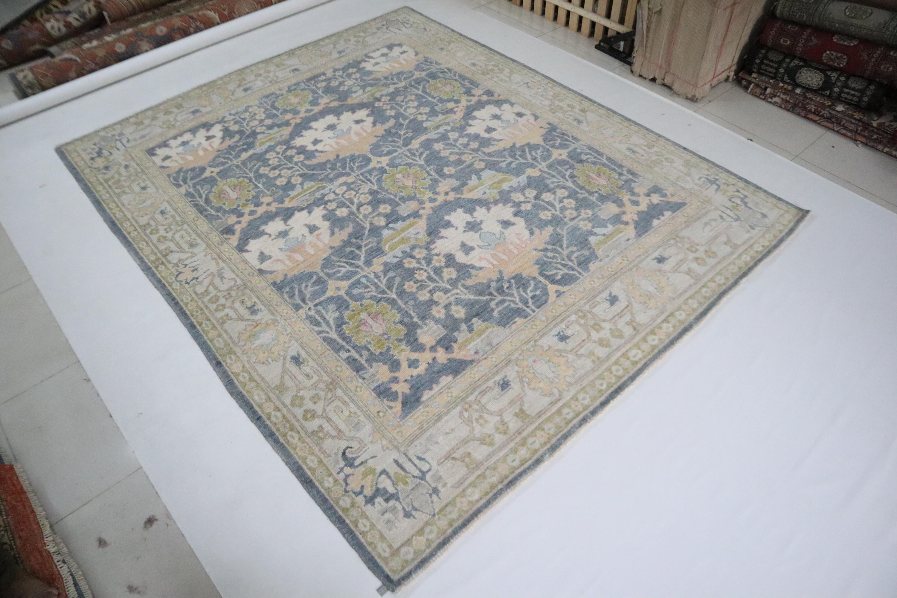 8x10 Ft Oushak Area Rug, Gray Turkish Hand Knotted Floral Design Soft Wool Rug, Traditional Rug, Oriental Rug, Bedroom Rug, Living Room Rug