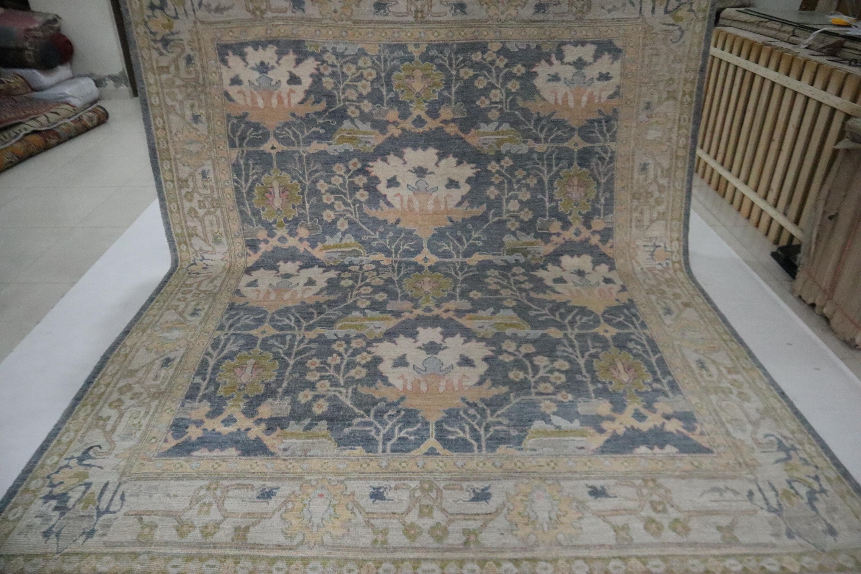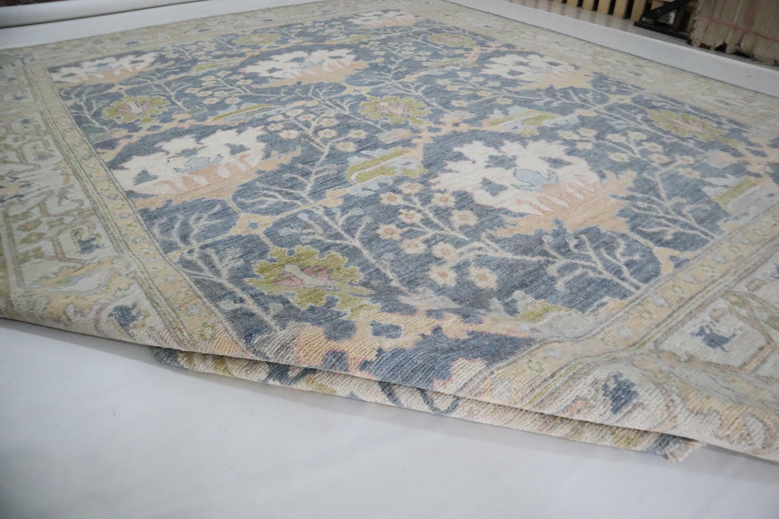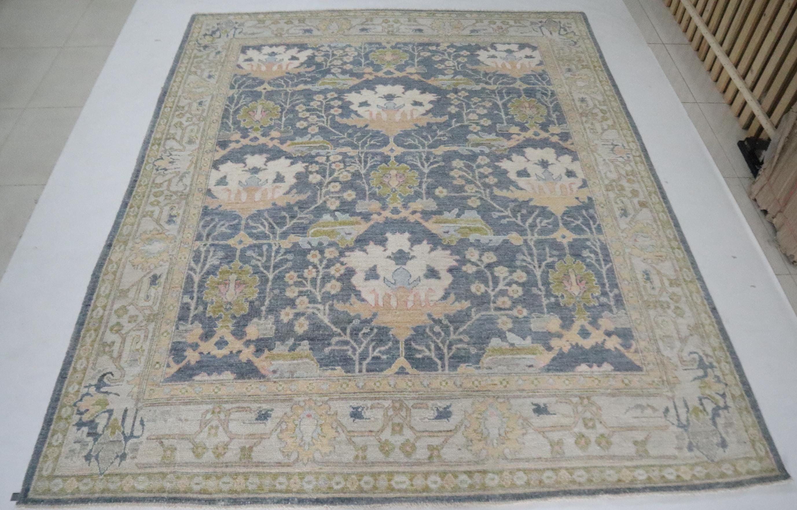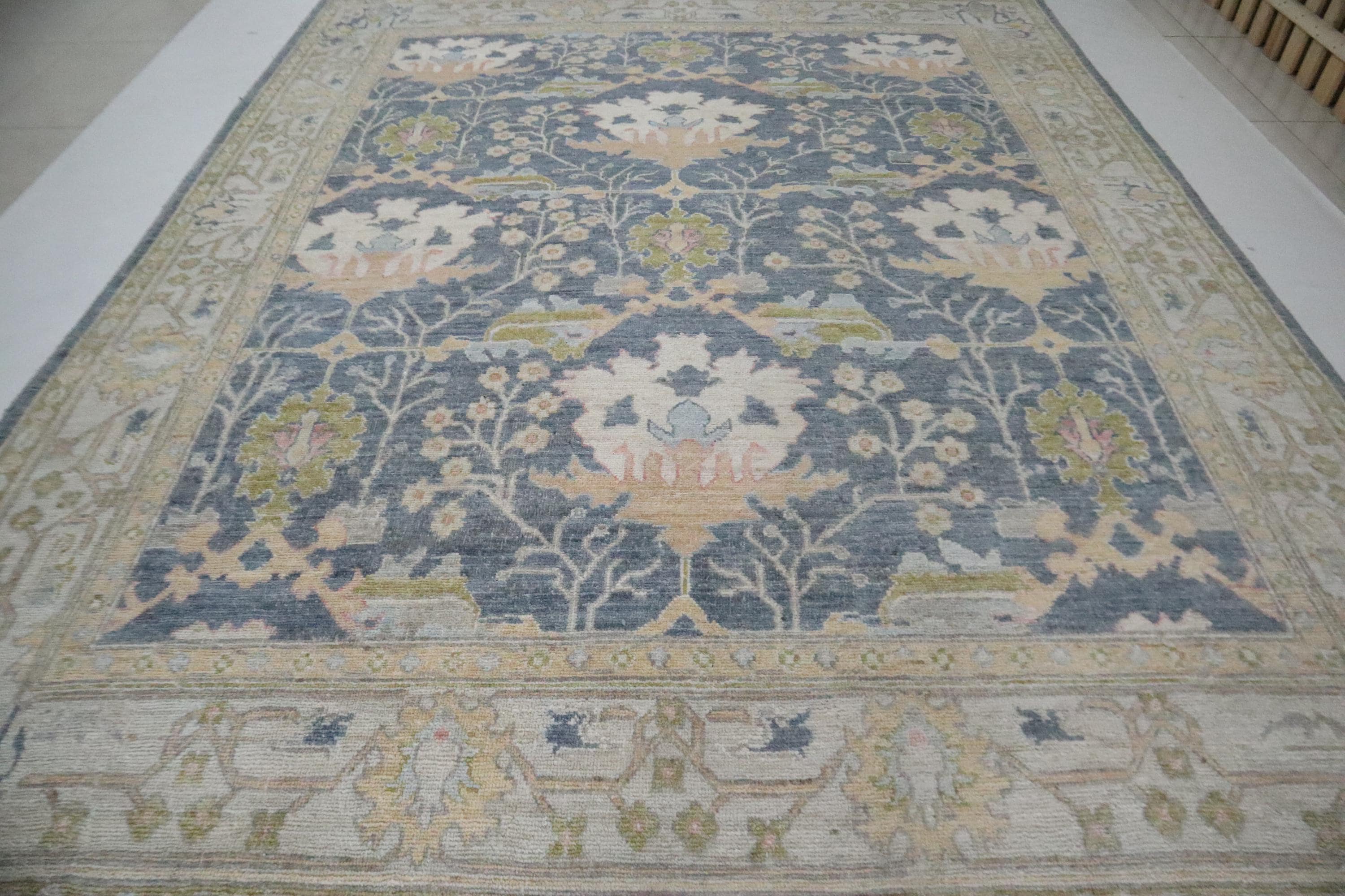 8x10 Ft Oushak Area Rug, Gray Turkish Hand Knotted Floral Design Soft Wool Rug, Traditional Rug, Oriental Rug, Bedroom Rug, Living Room Rug