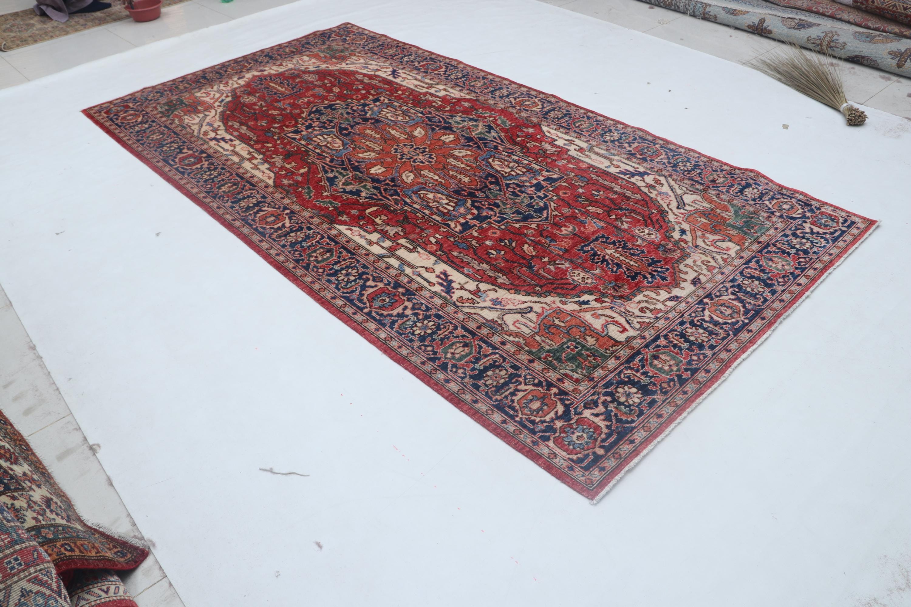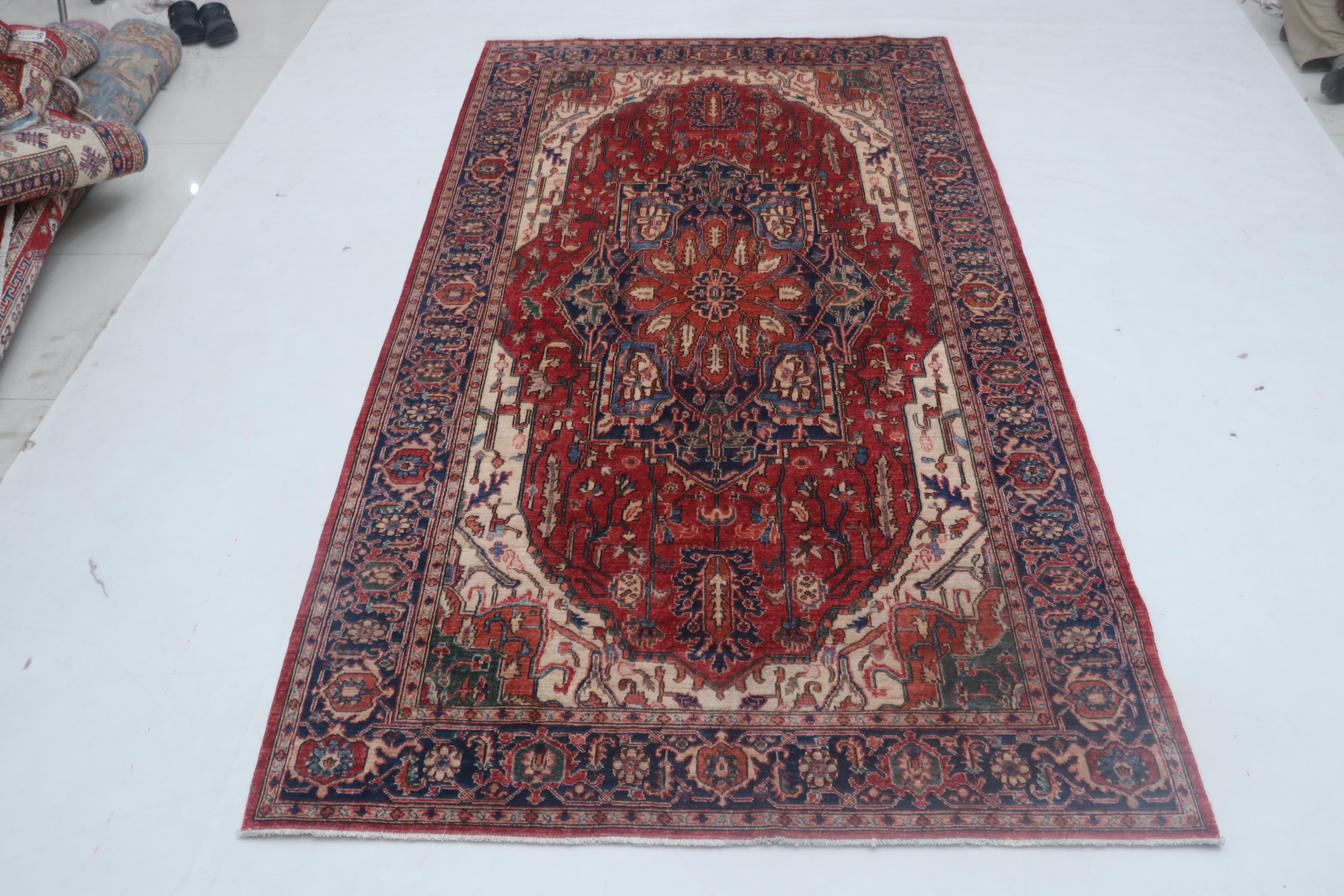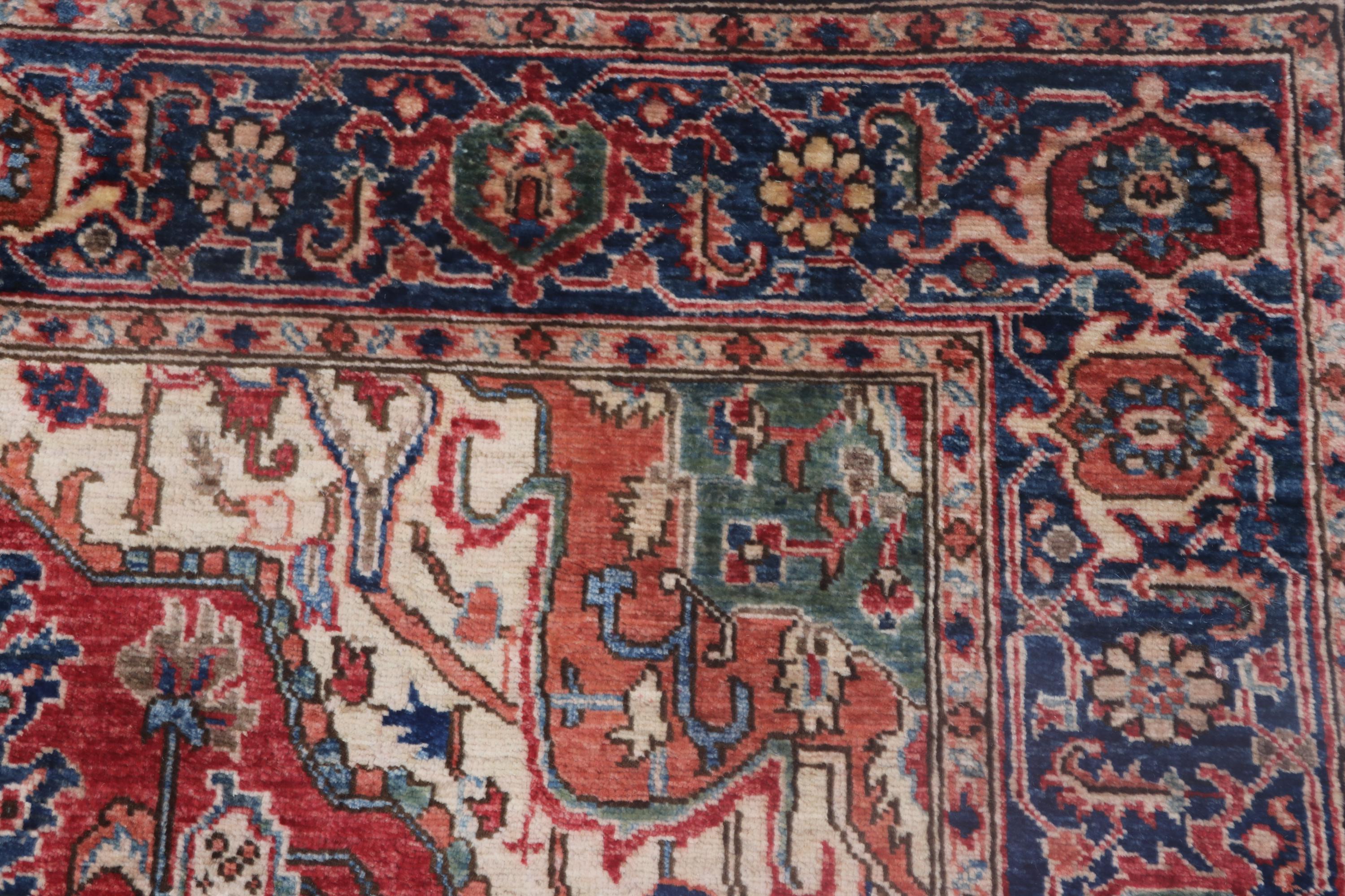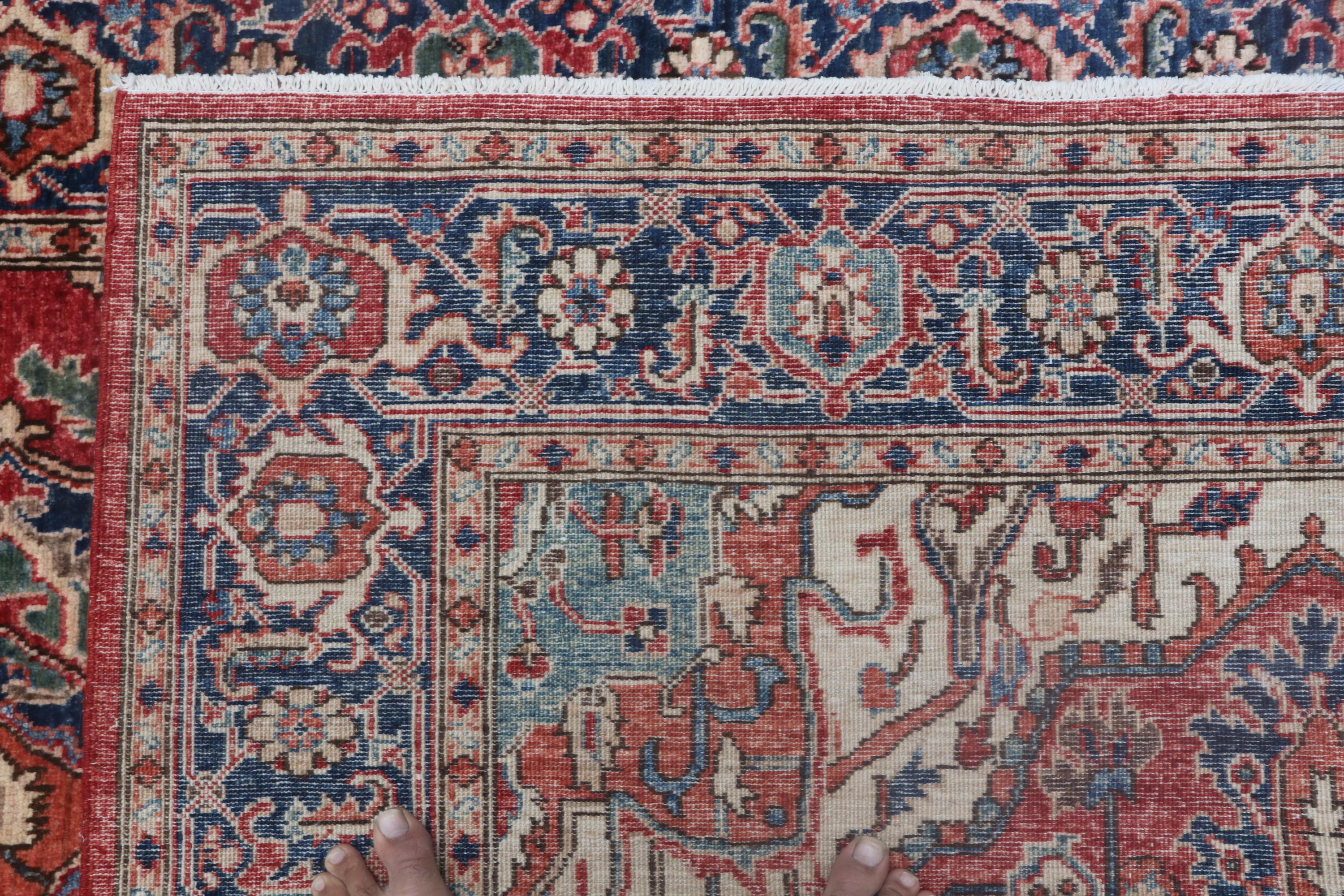 this rug in Red with a Blue border brings elegance to any room.