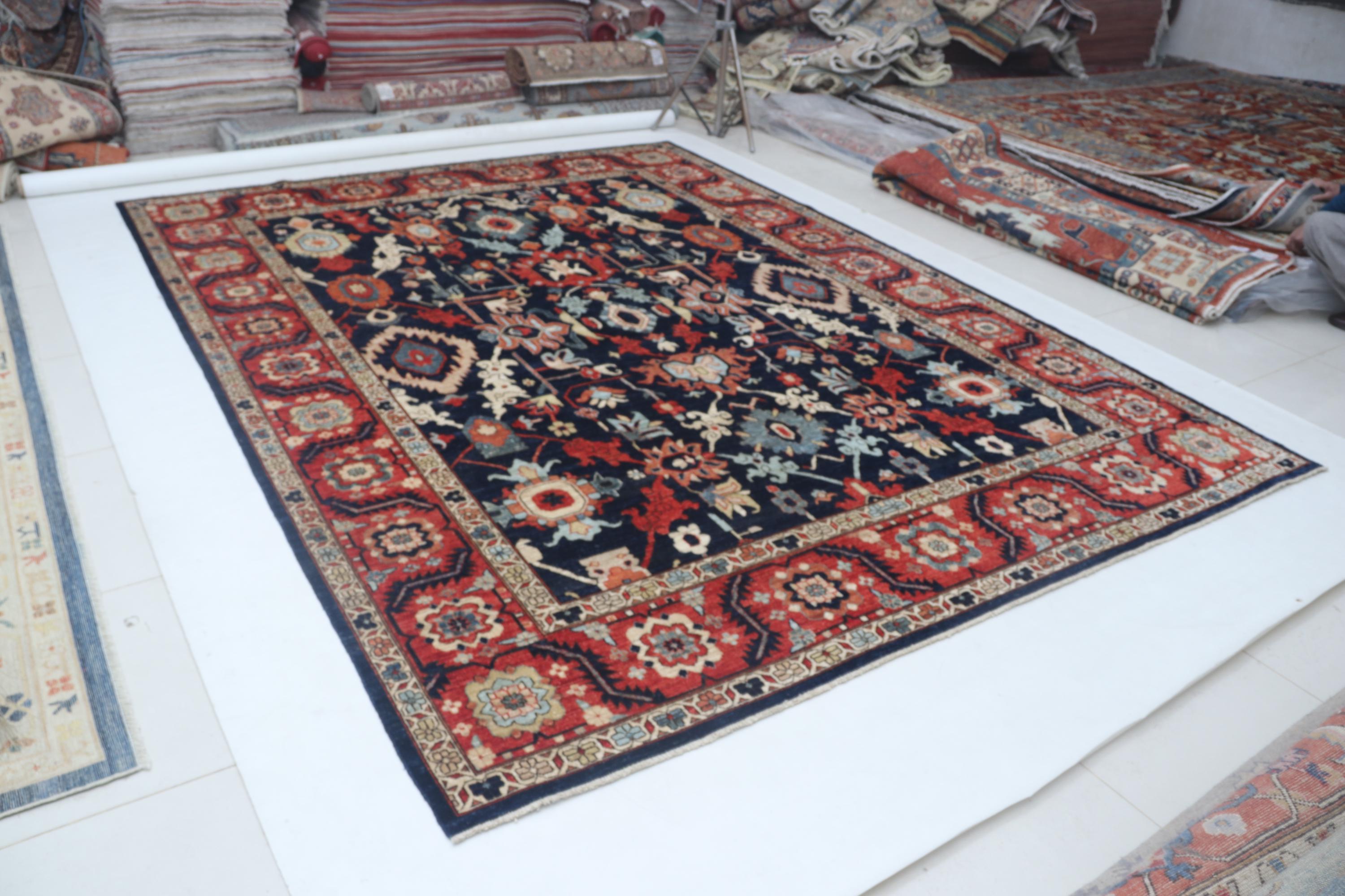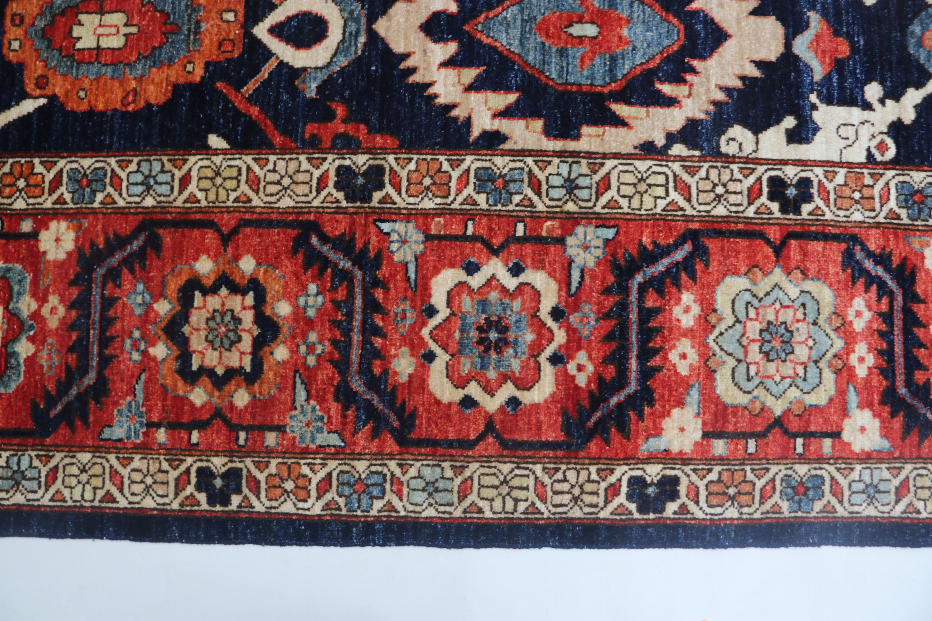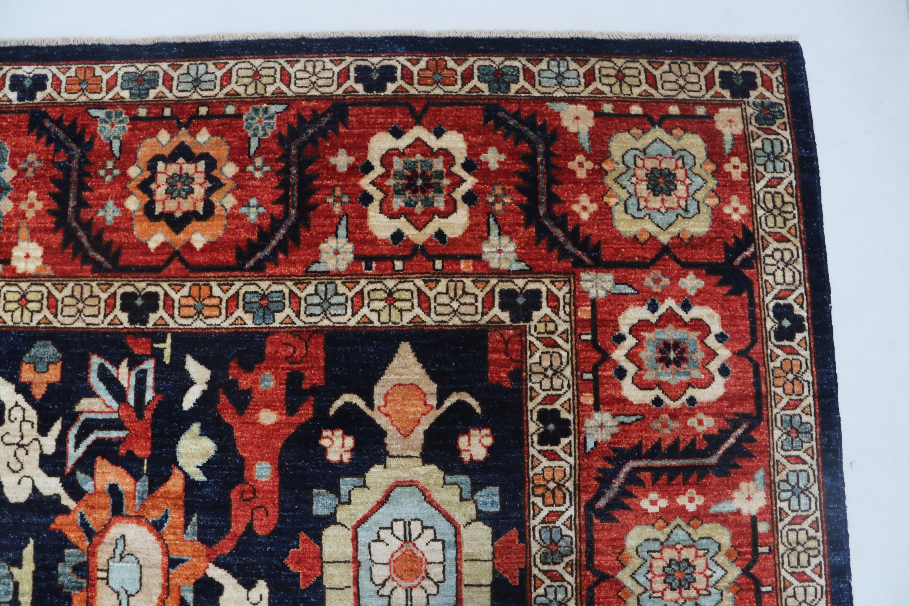 this rug in Blue with a Red border brings elegance to any room.
