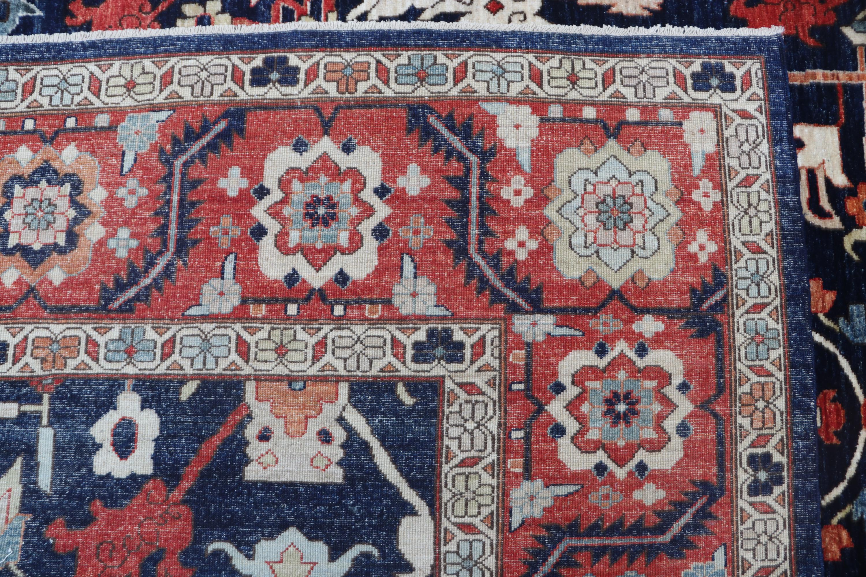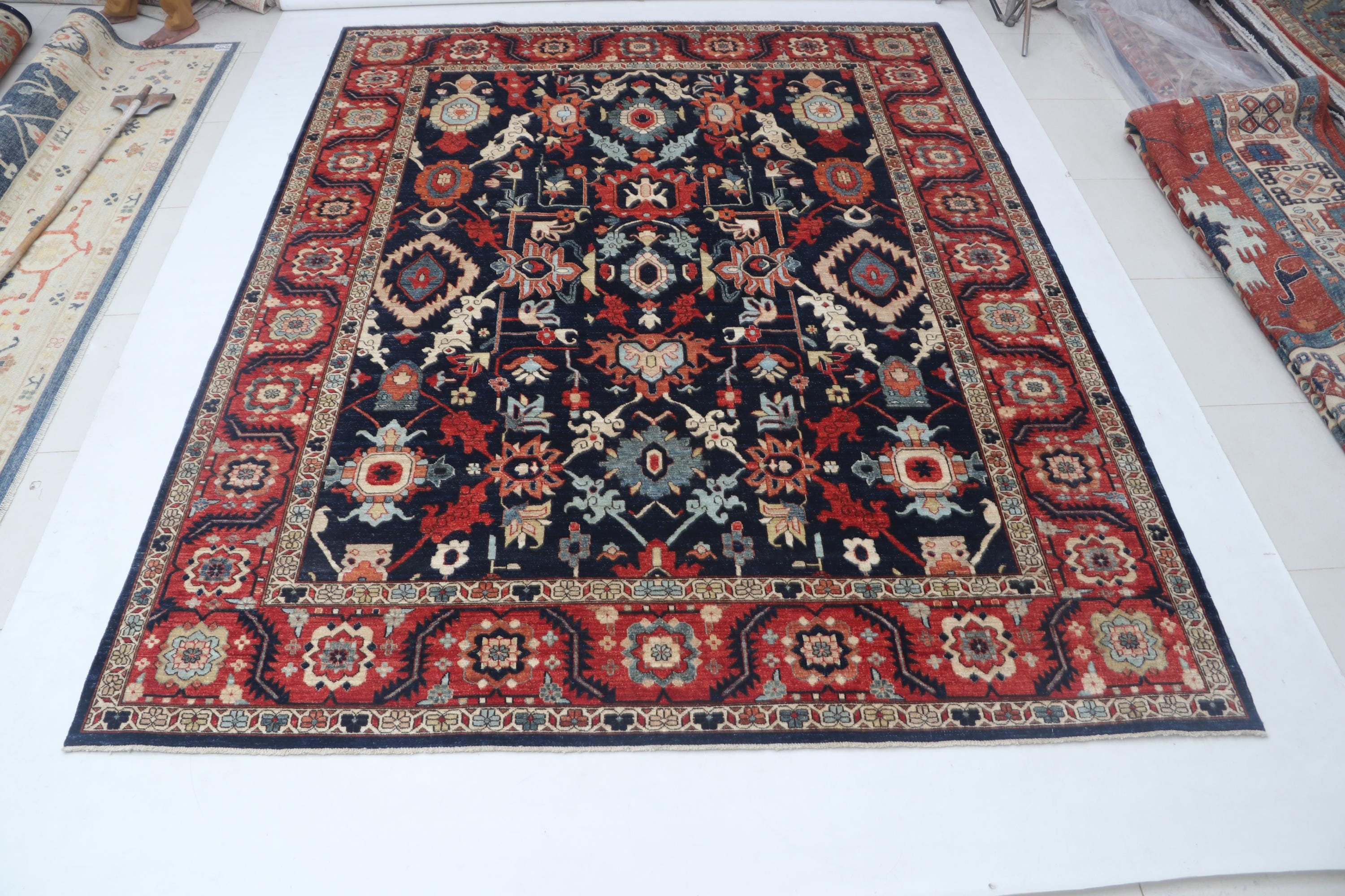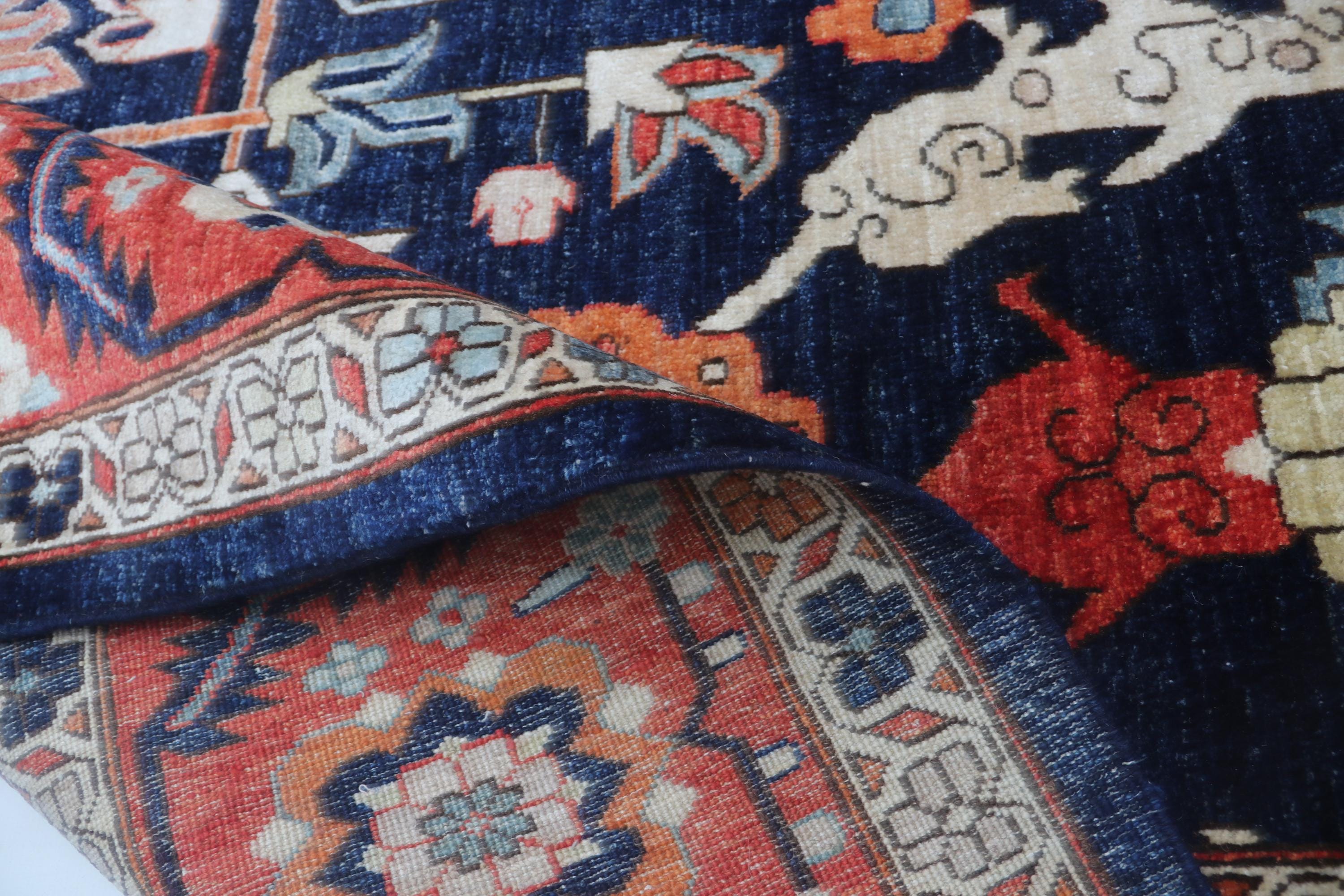 this rug in Blue with a Red border brings elegance to any room.