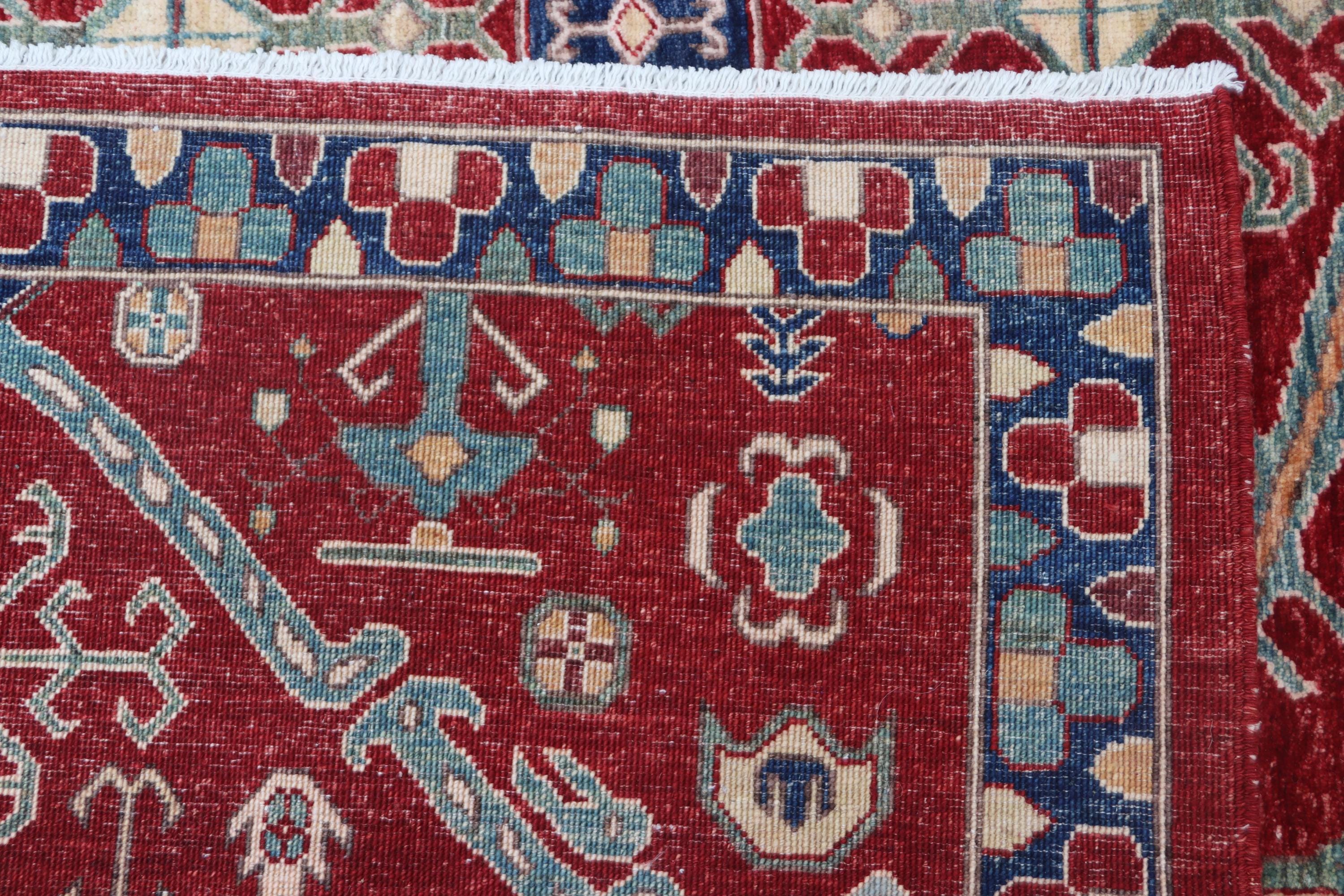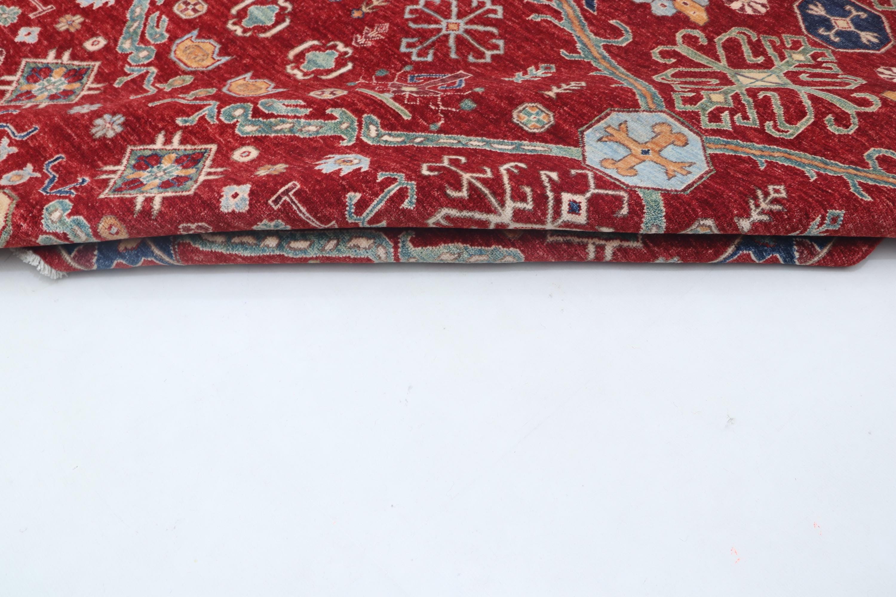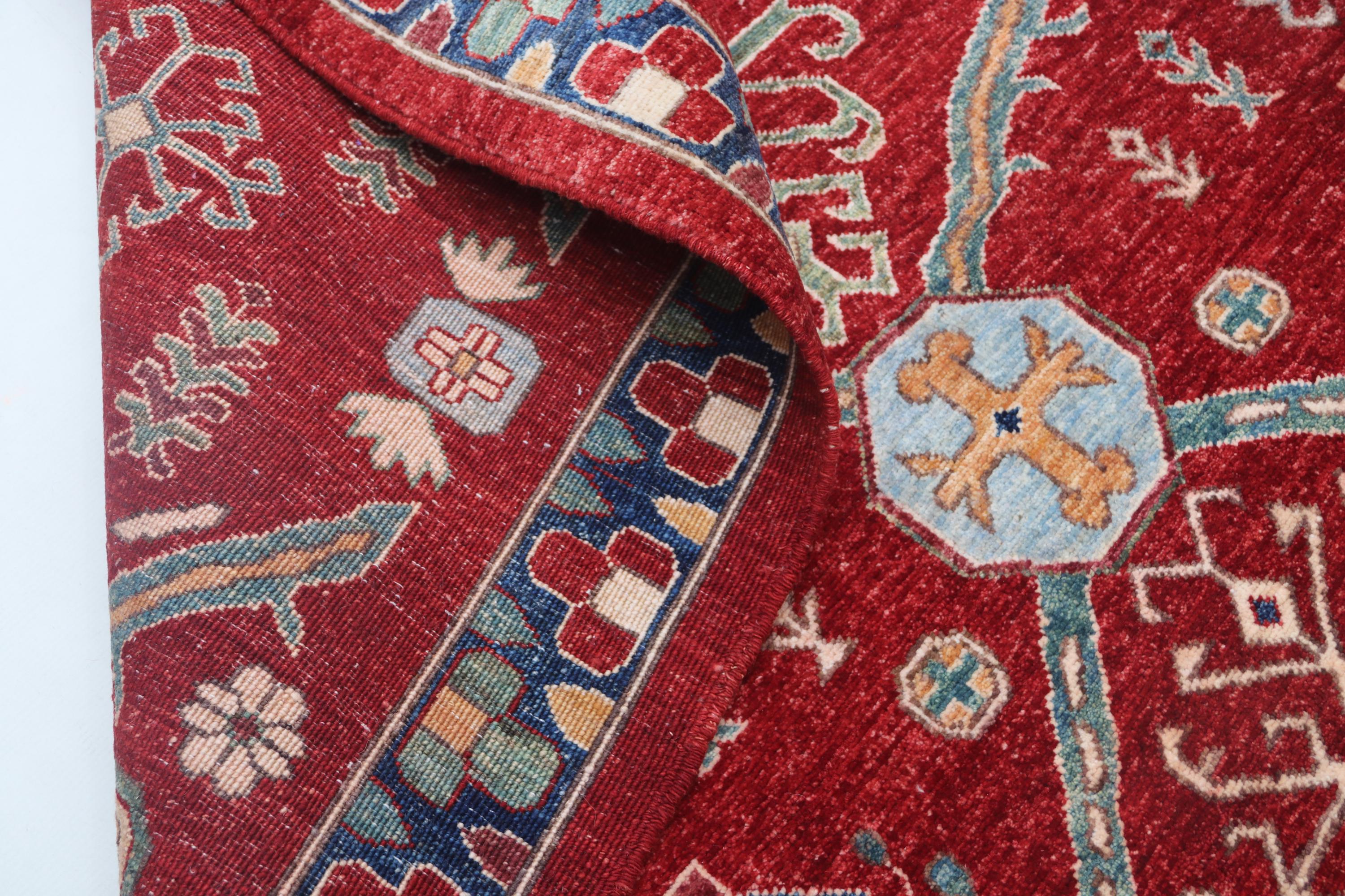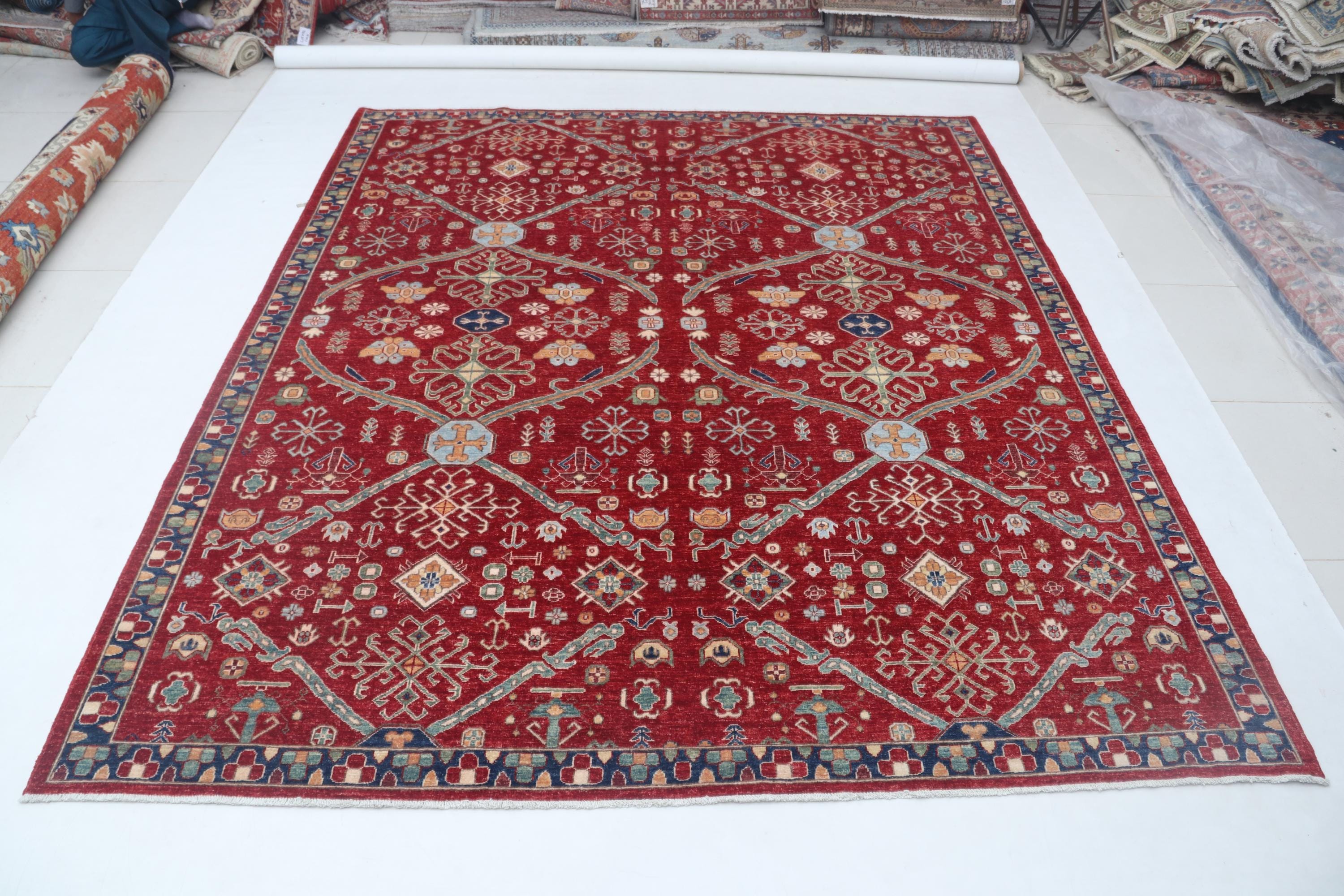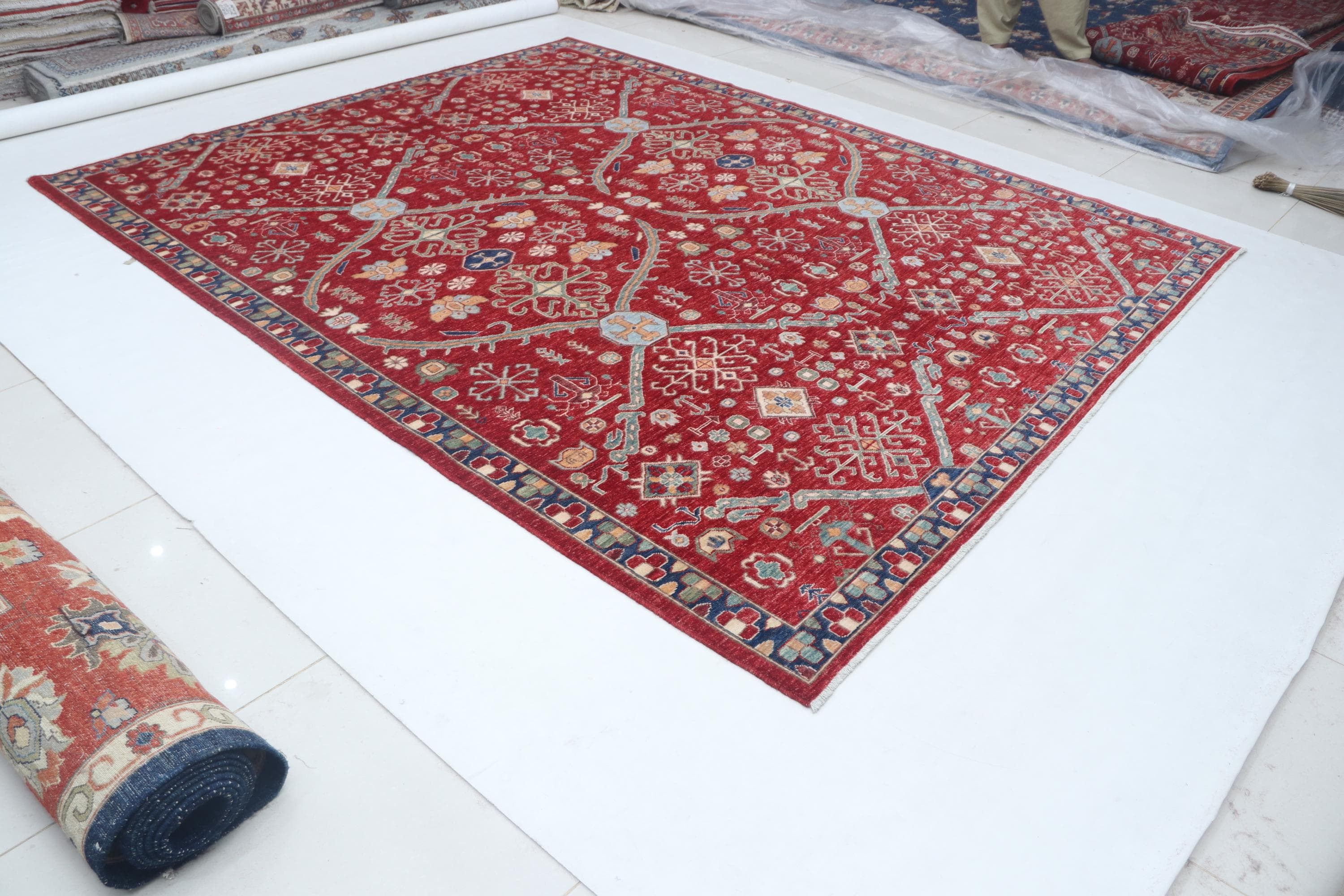 this rug in Red with a Blue border brings elegance to any room.