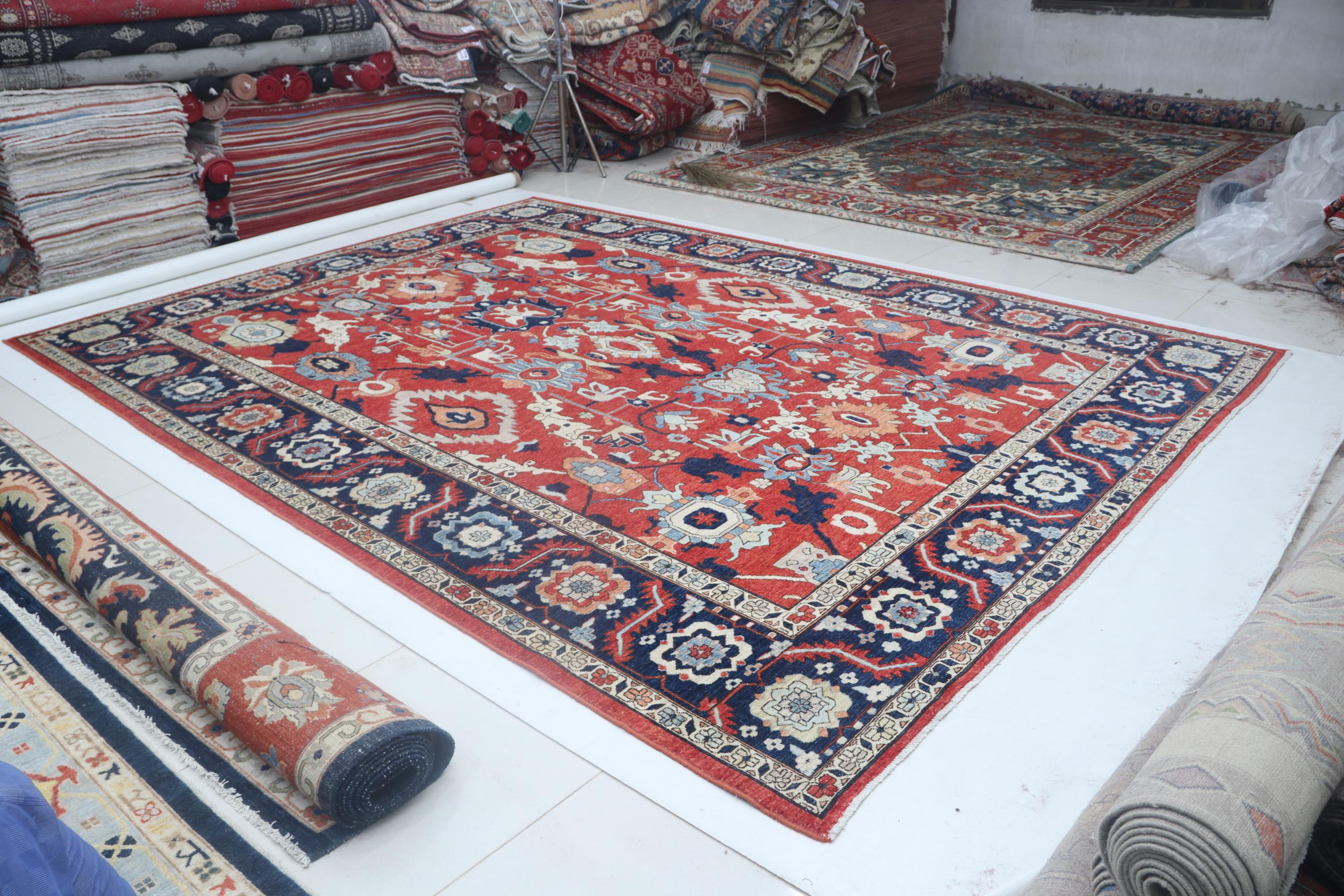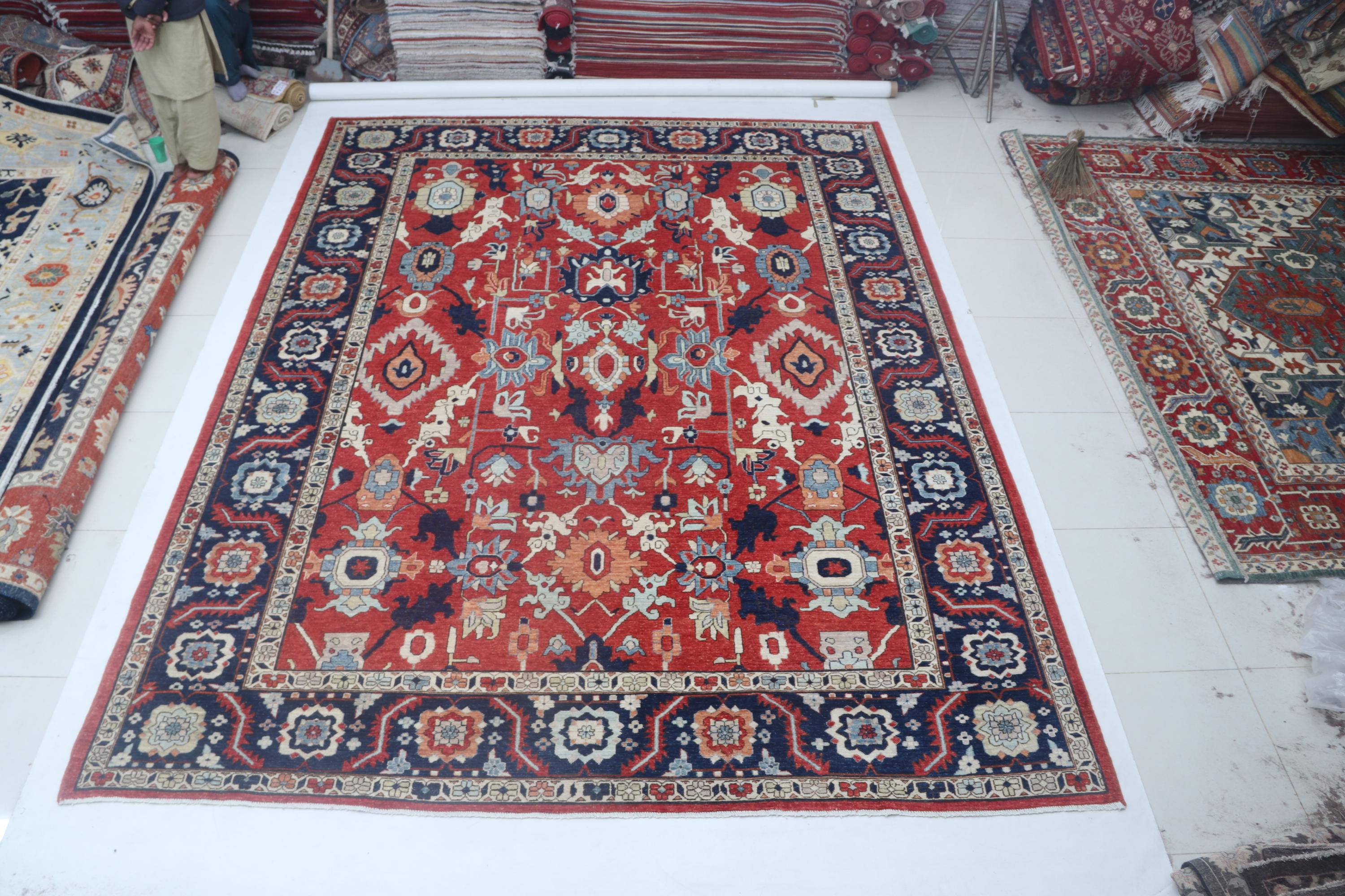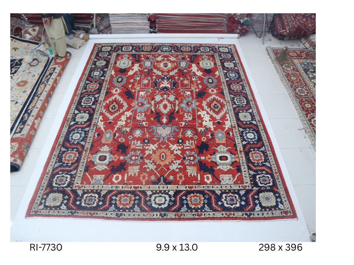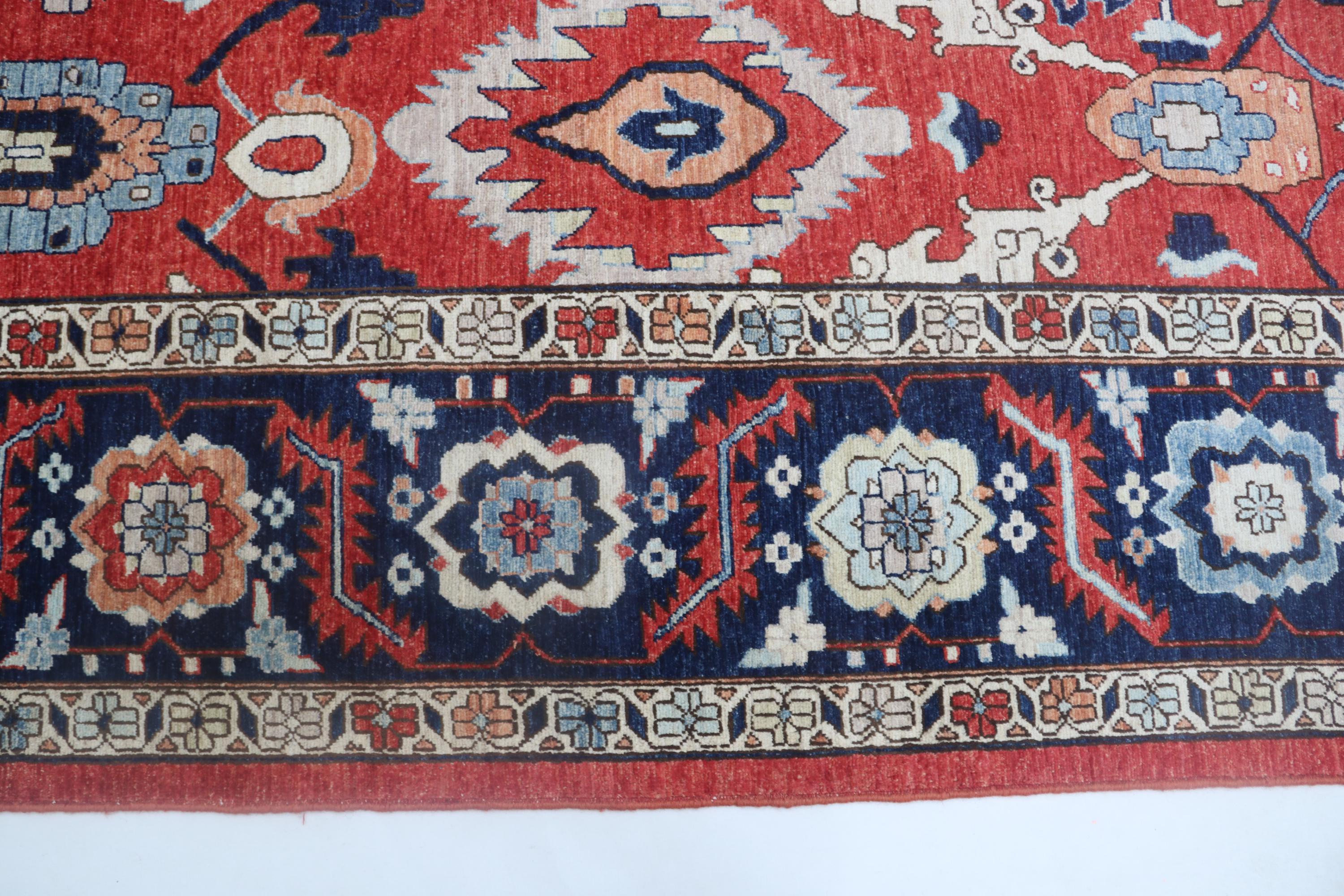 this rug in Red with a Blue border brings elegance to any room.