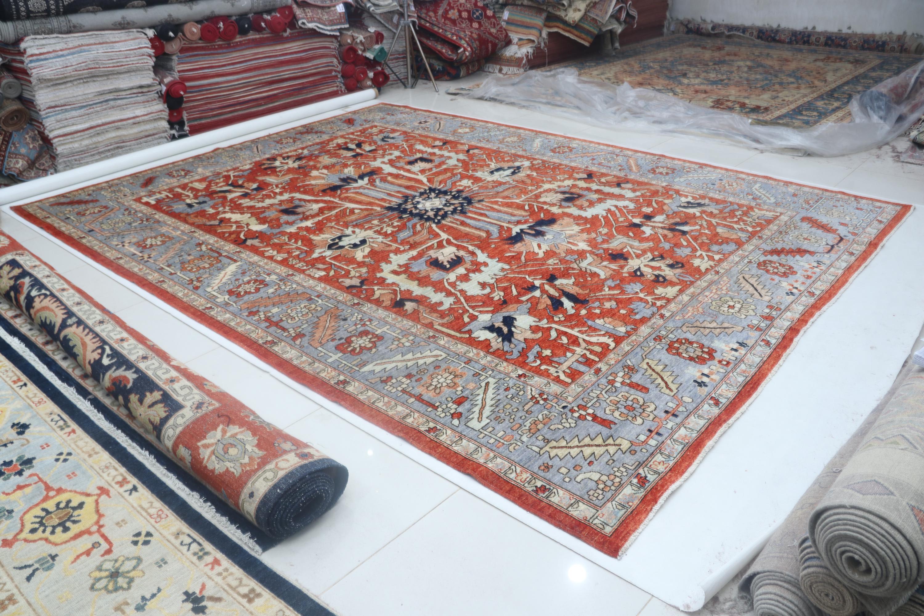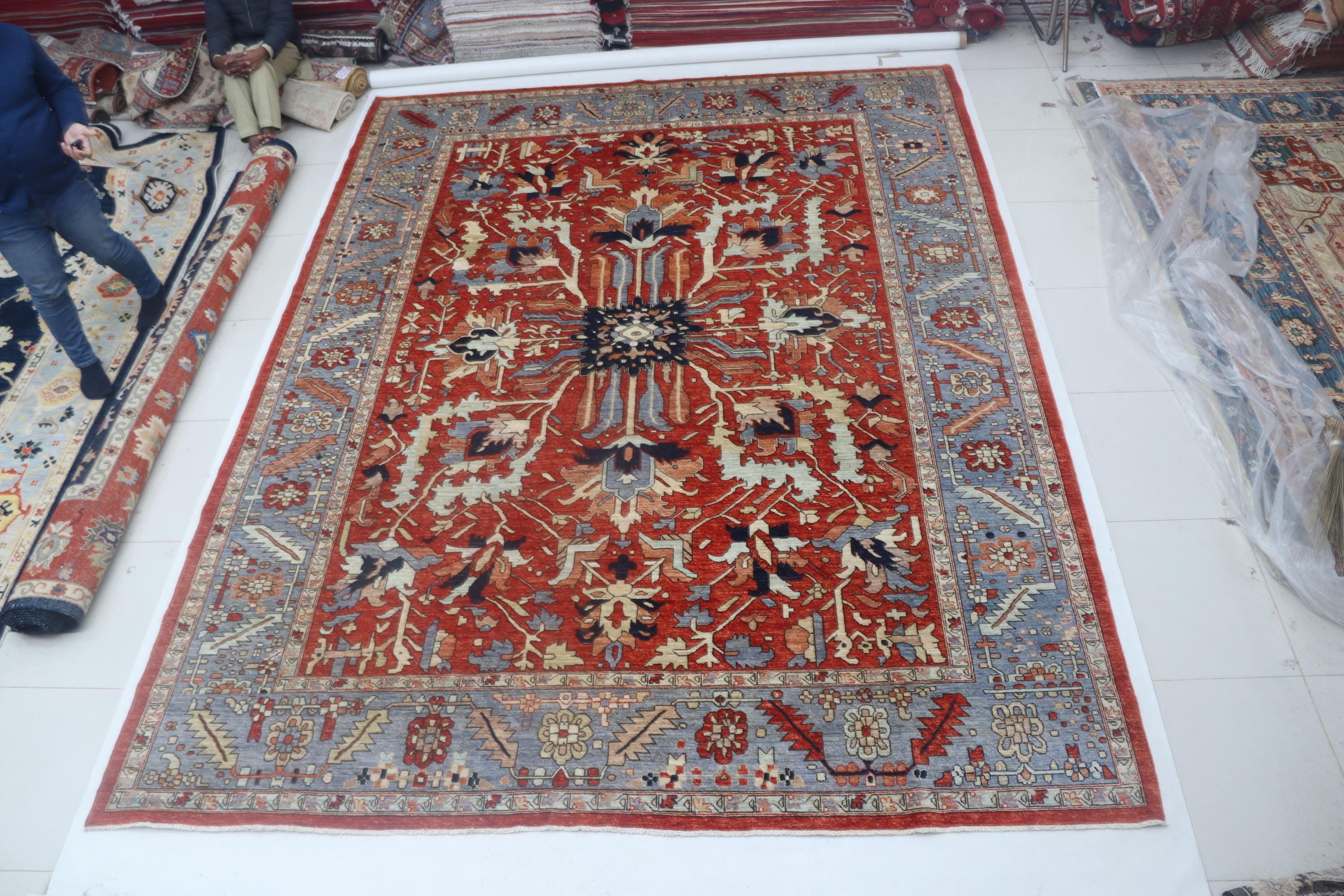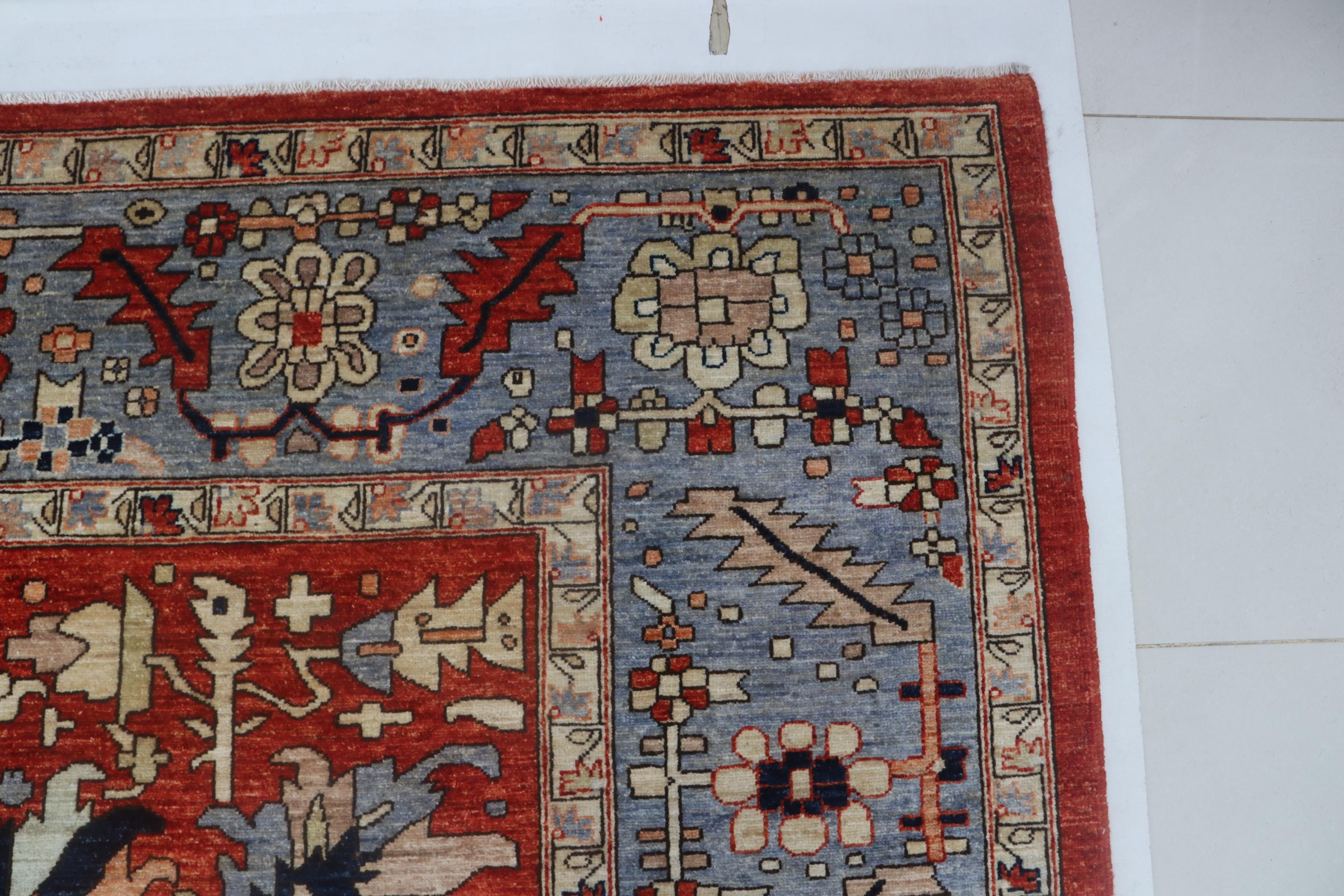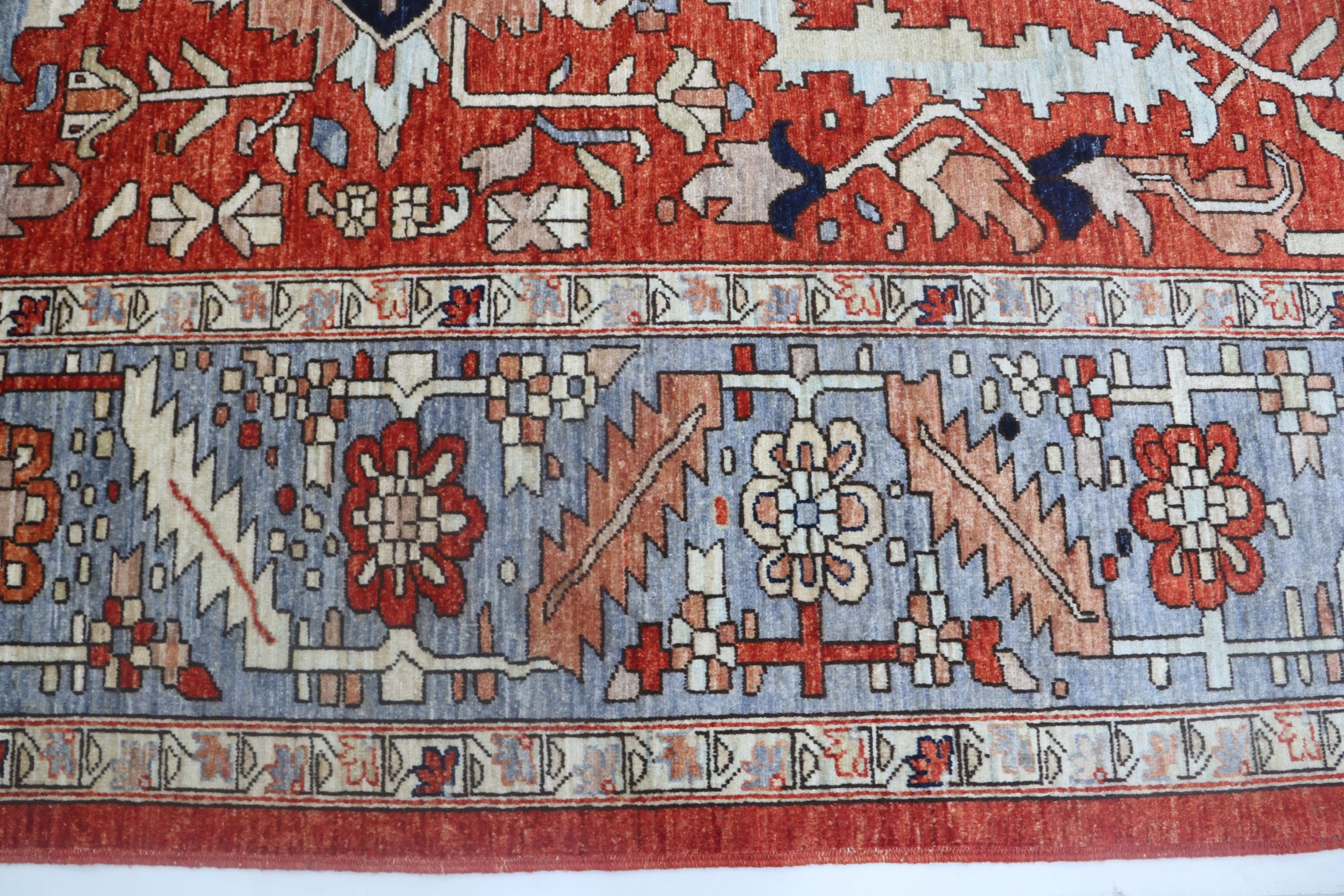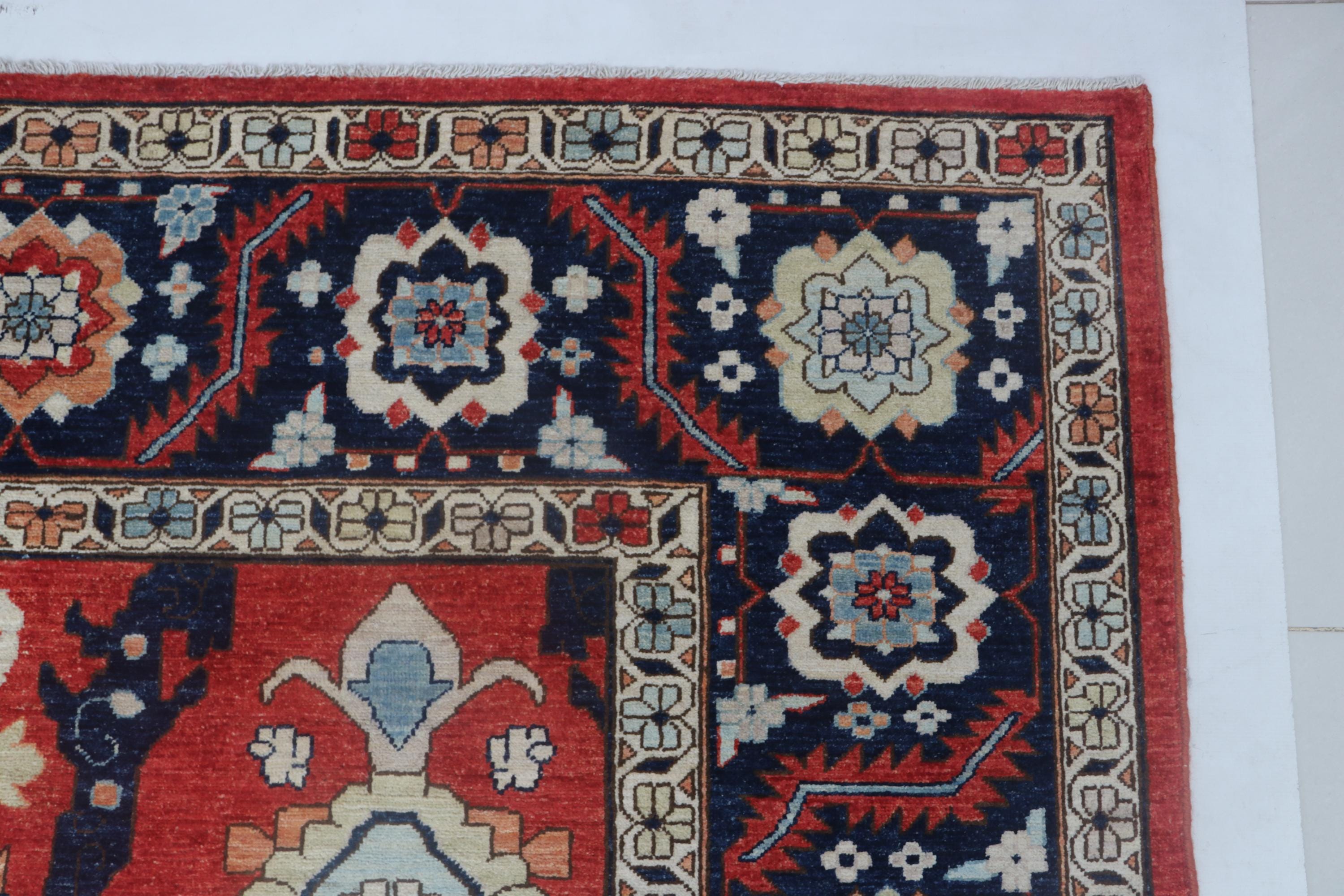 this rug in Red with a Blue border brings elegance to any room.