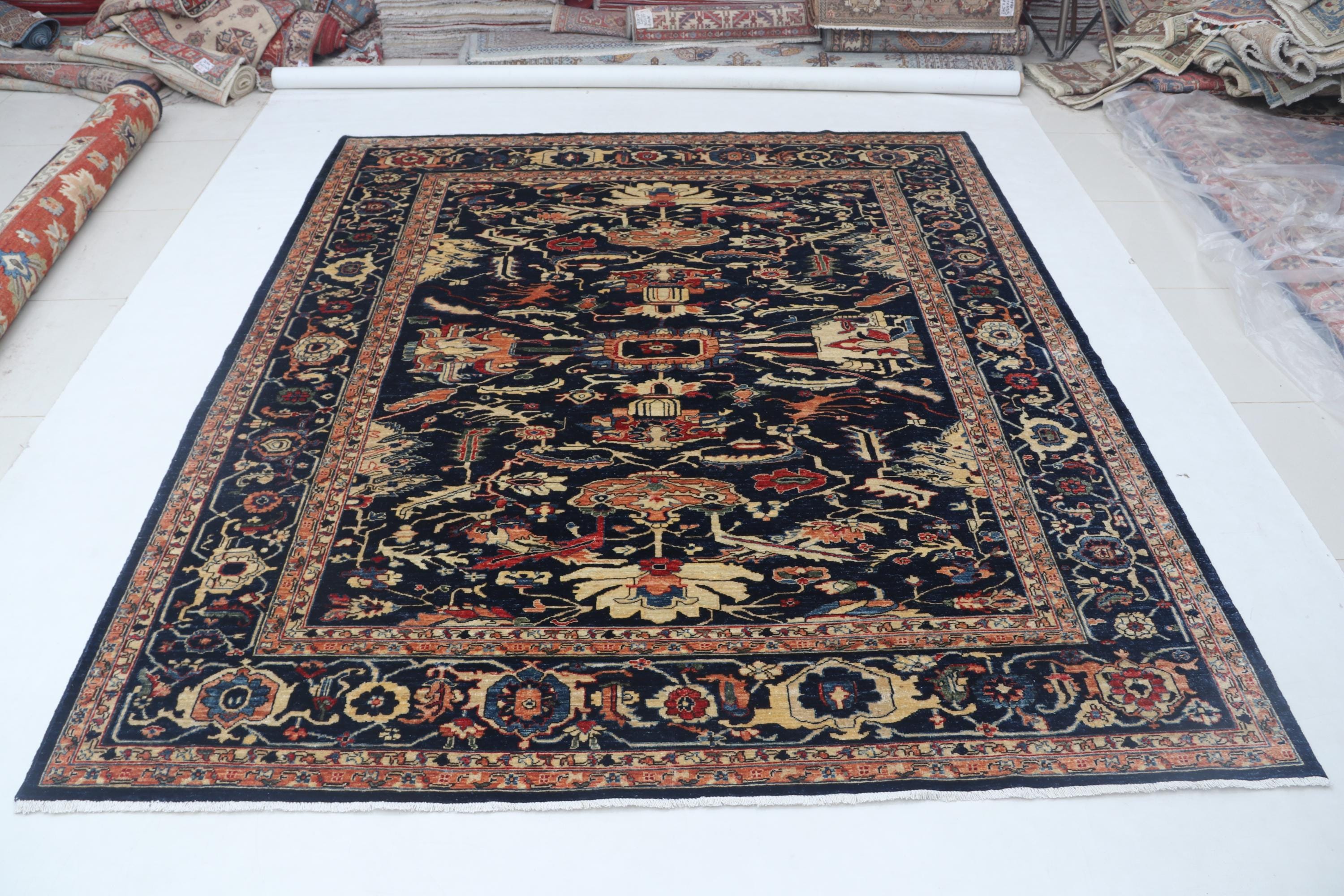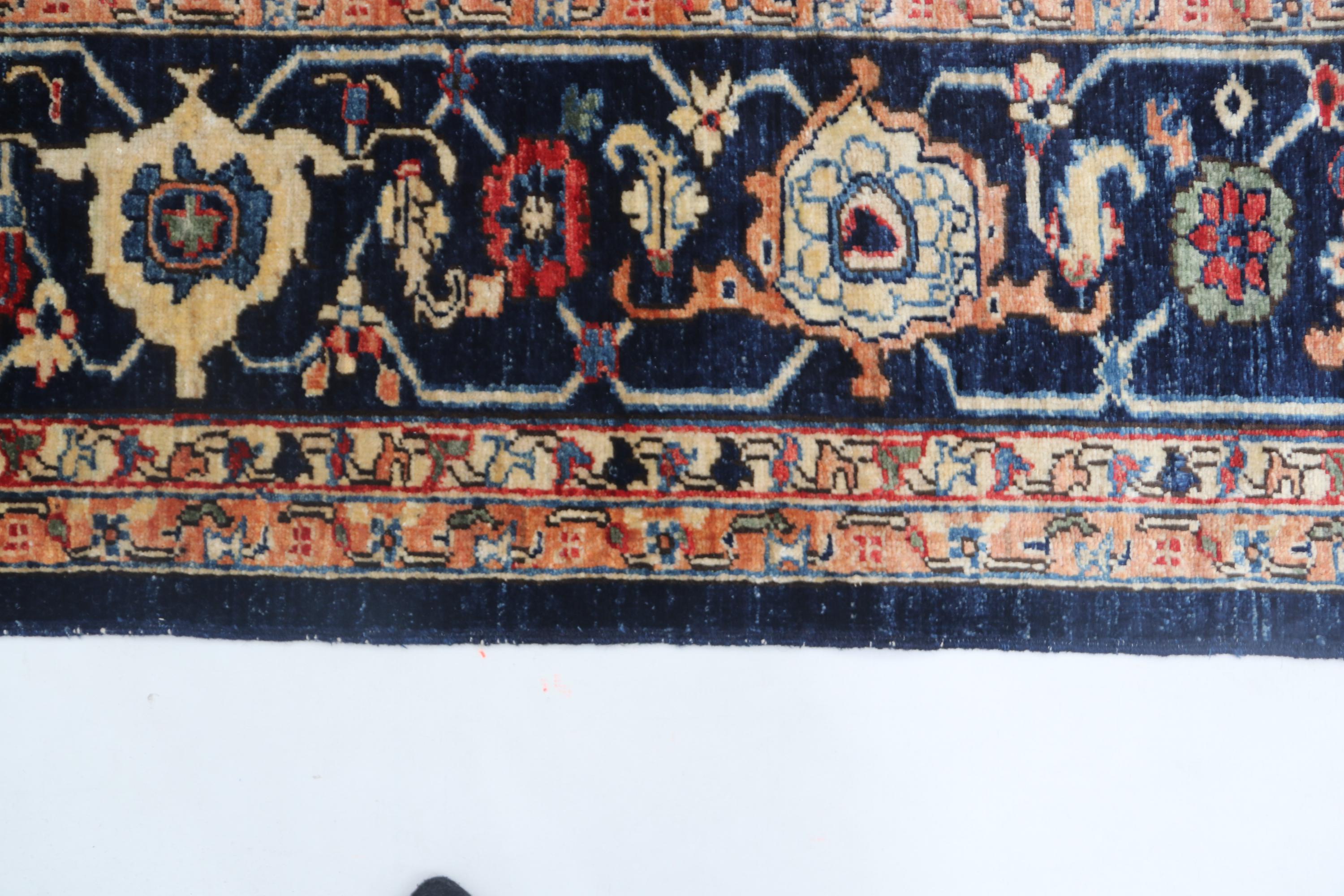 this rug in Blue with a Blue border brings elegance to any room.