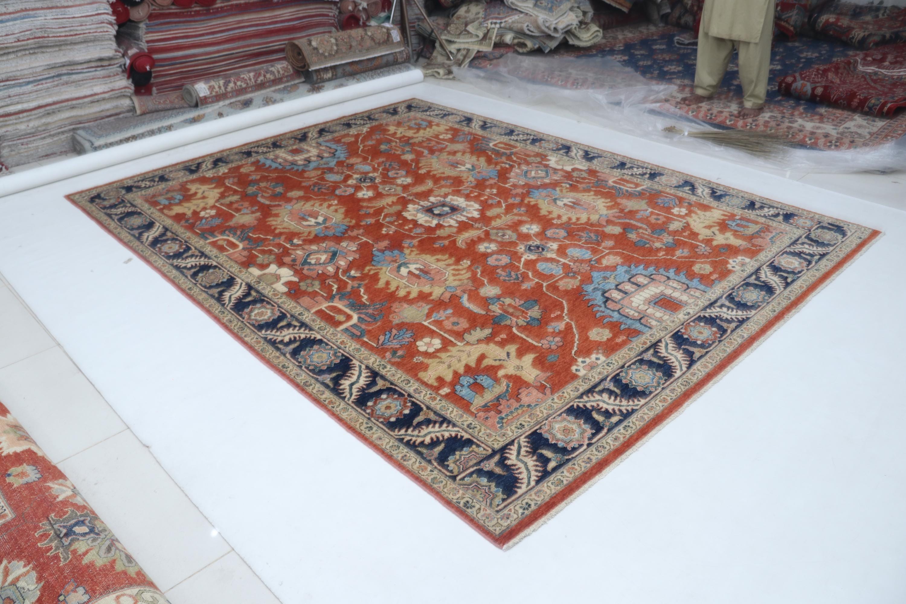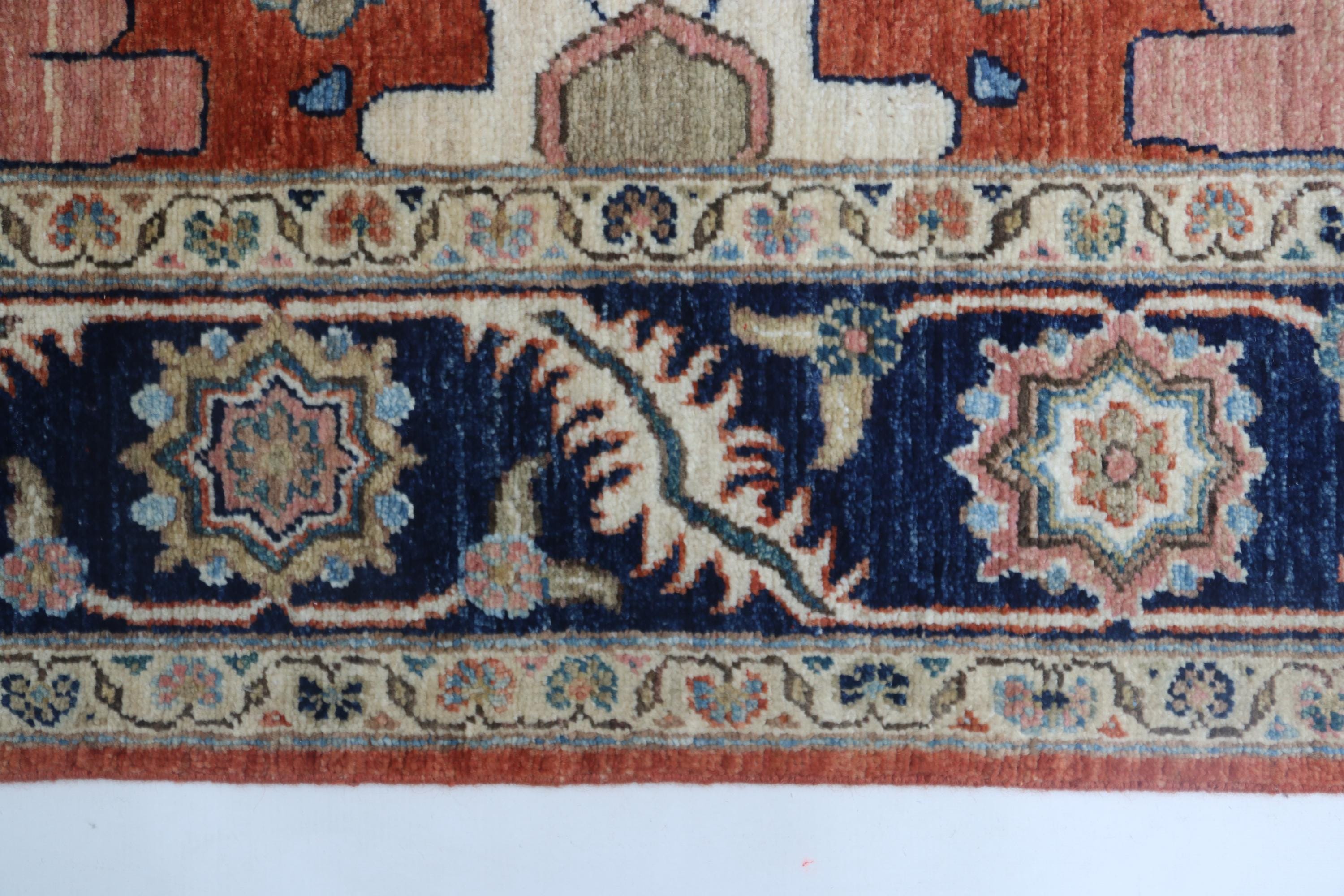 this rug in Red with a Blue border brings elegance to any room.