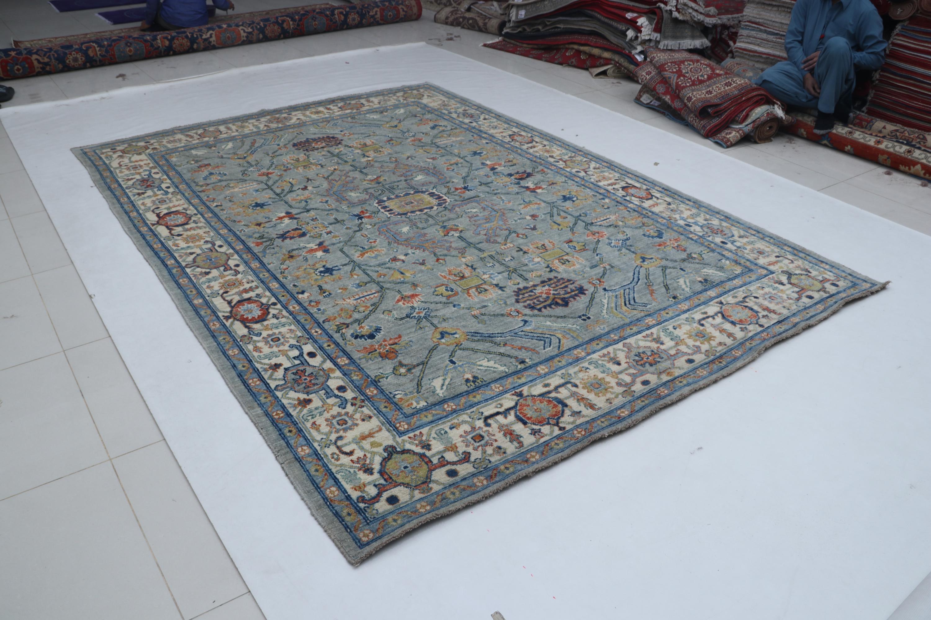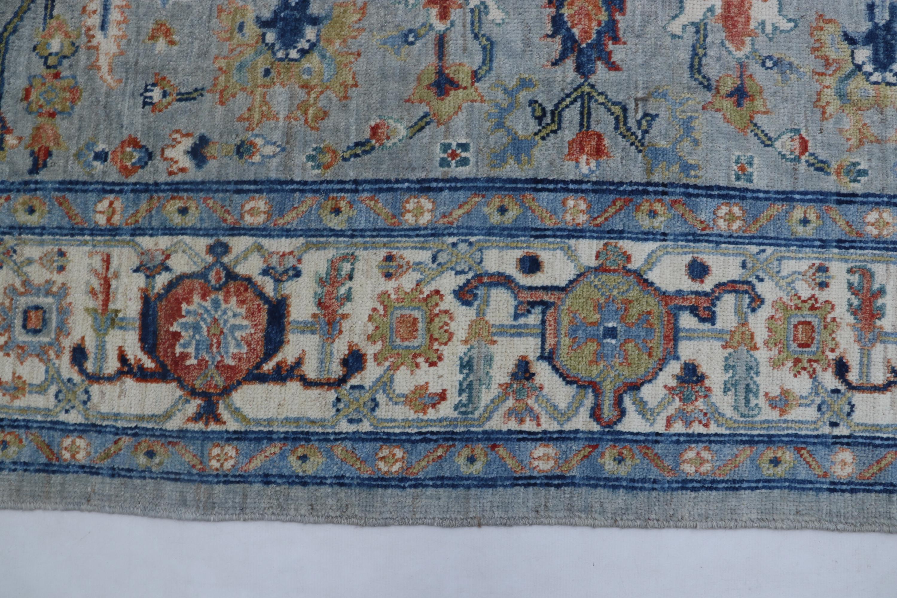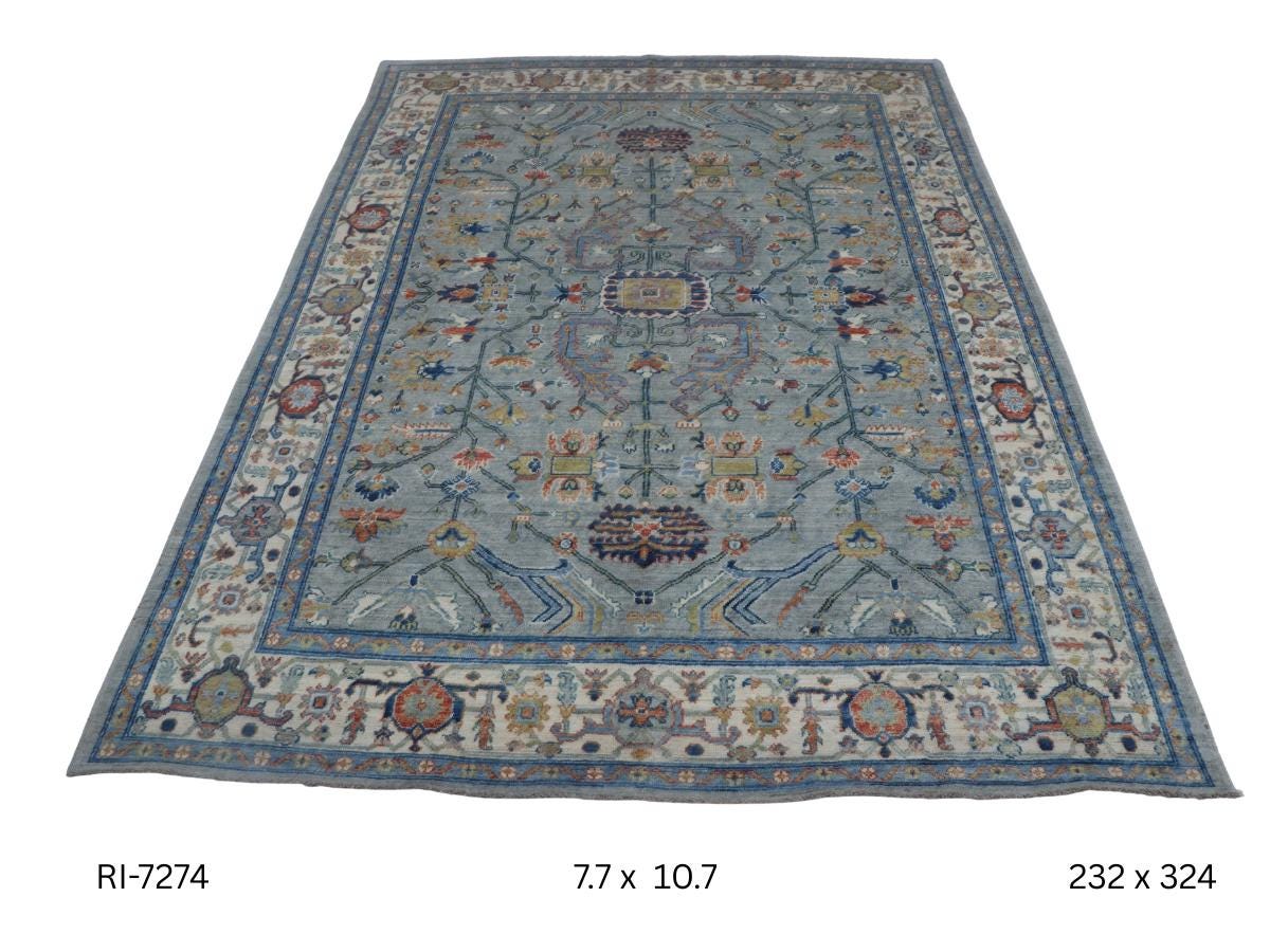 this rug in Blue with a Beige border brings elegance to any room.