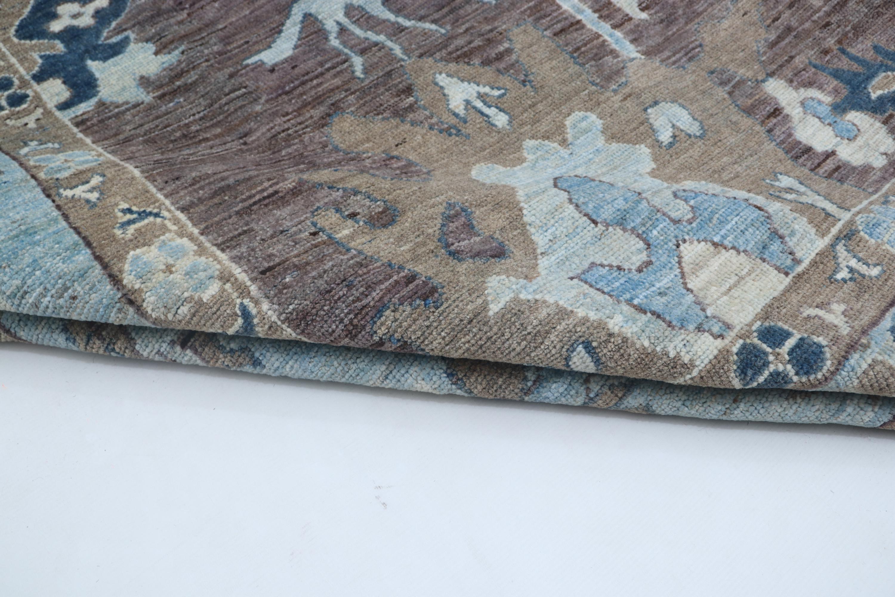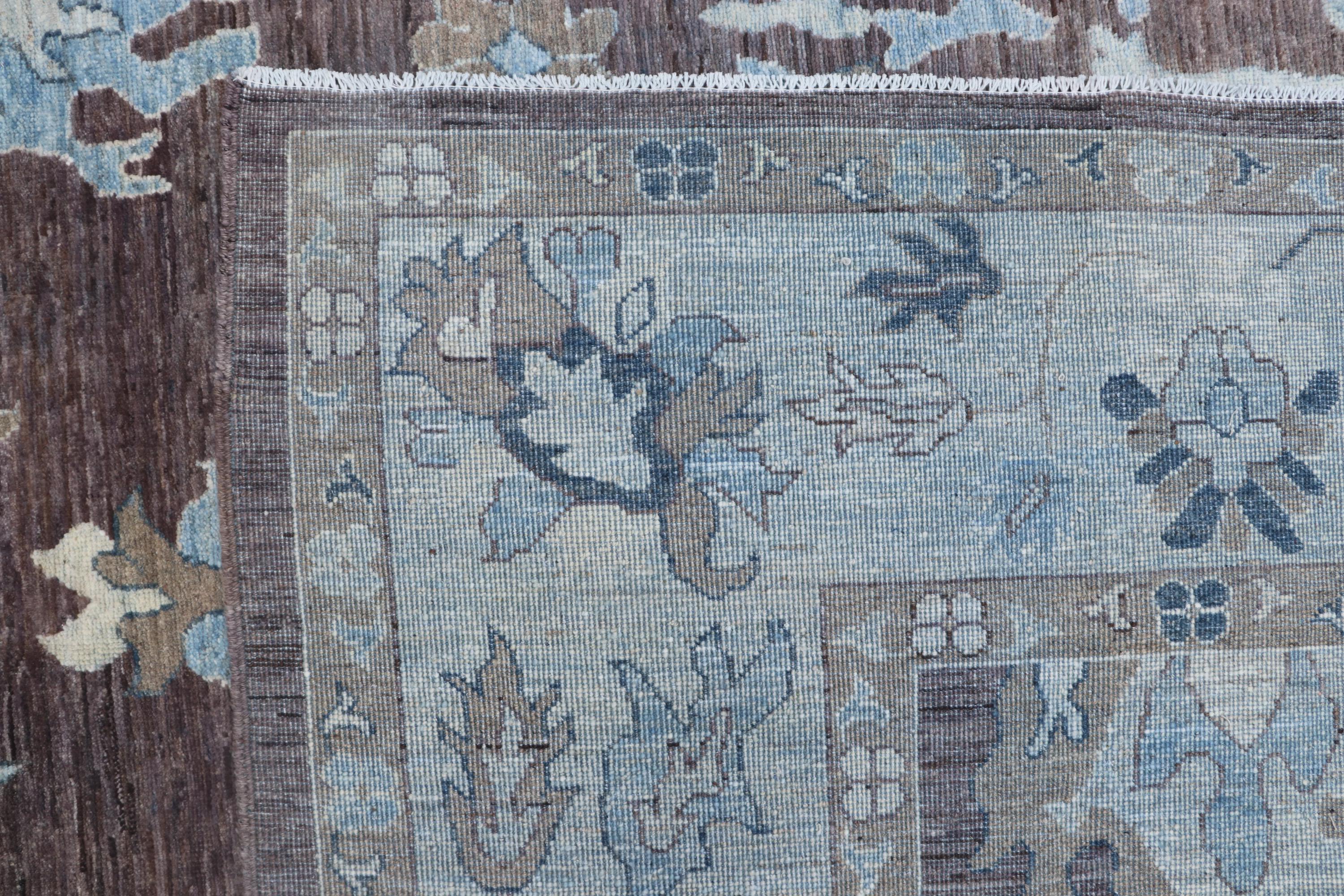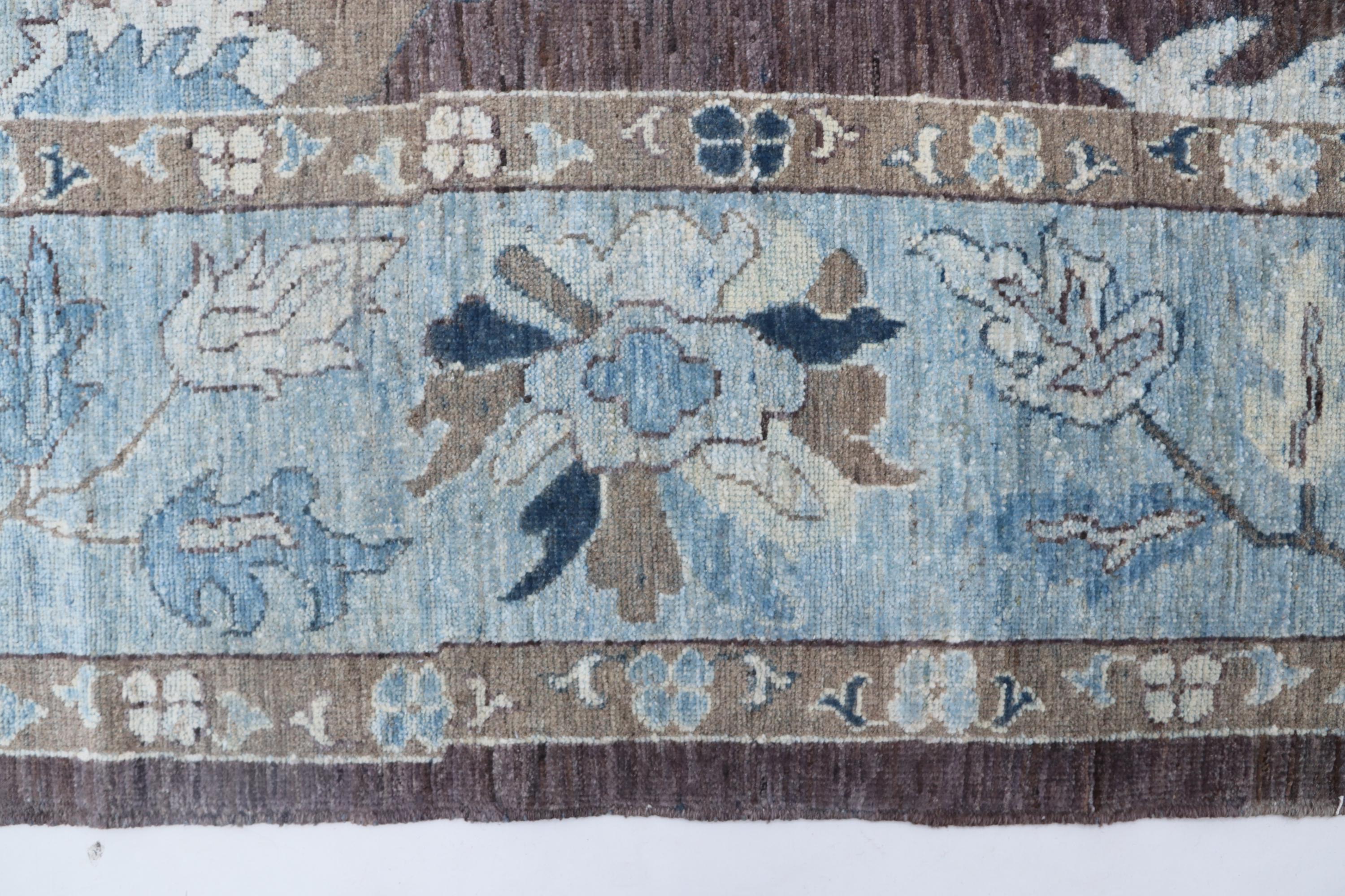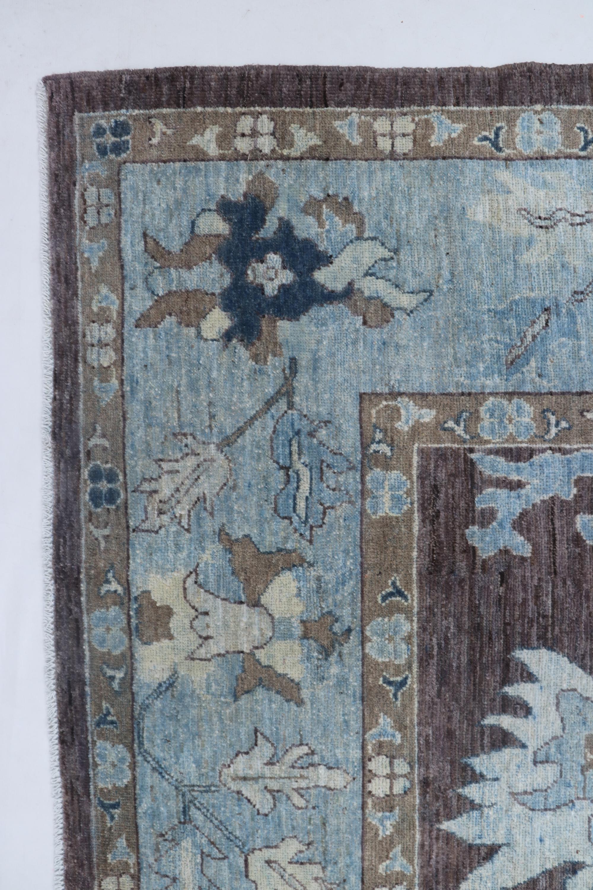 this rug in Brown with a Blue border brings elegance to any room.