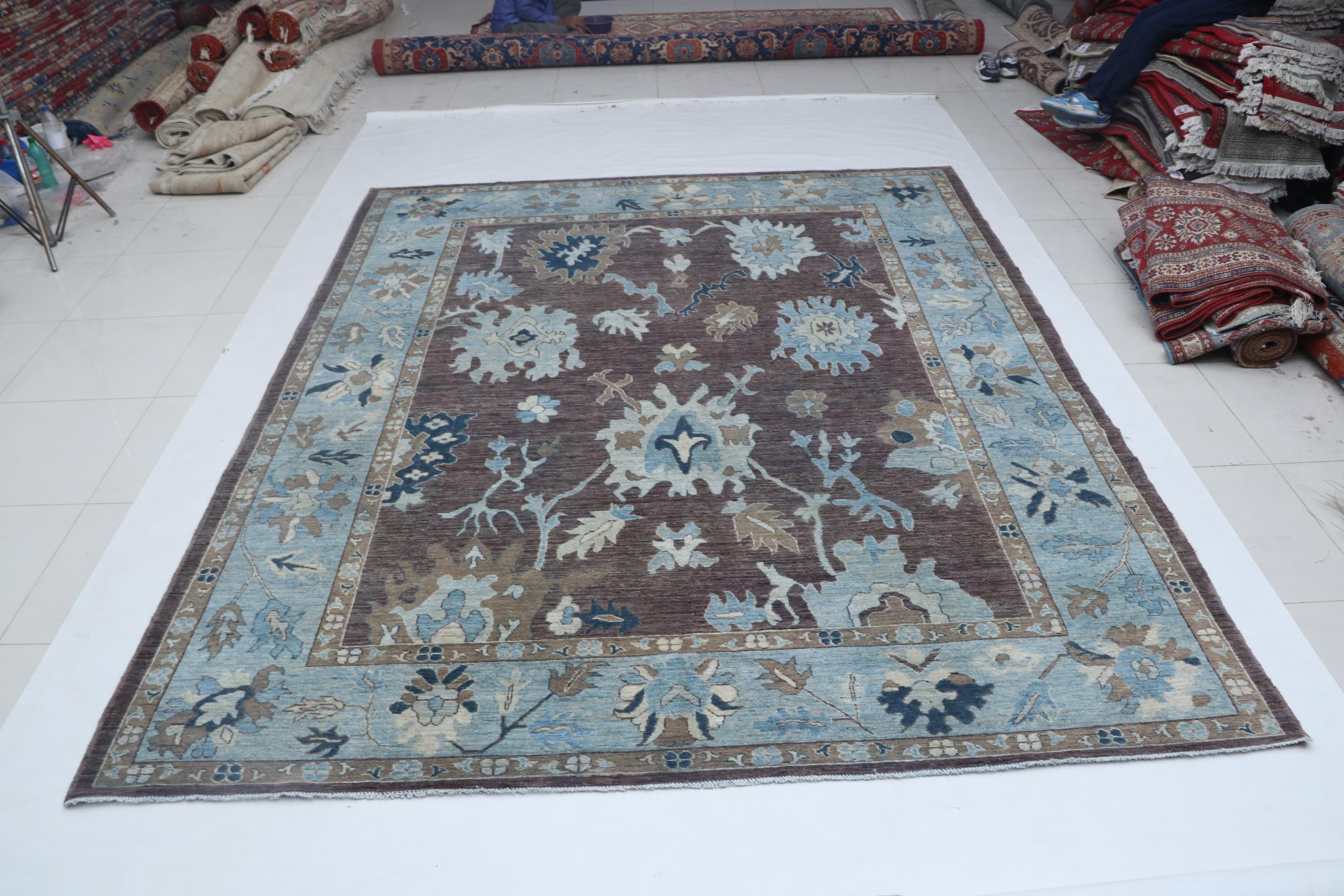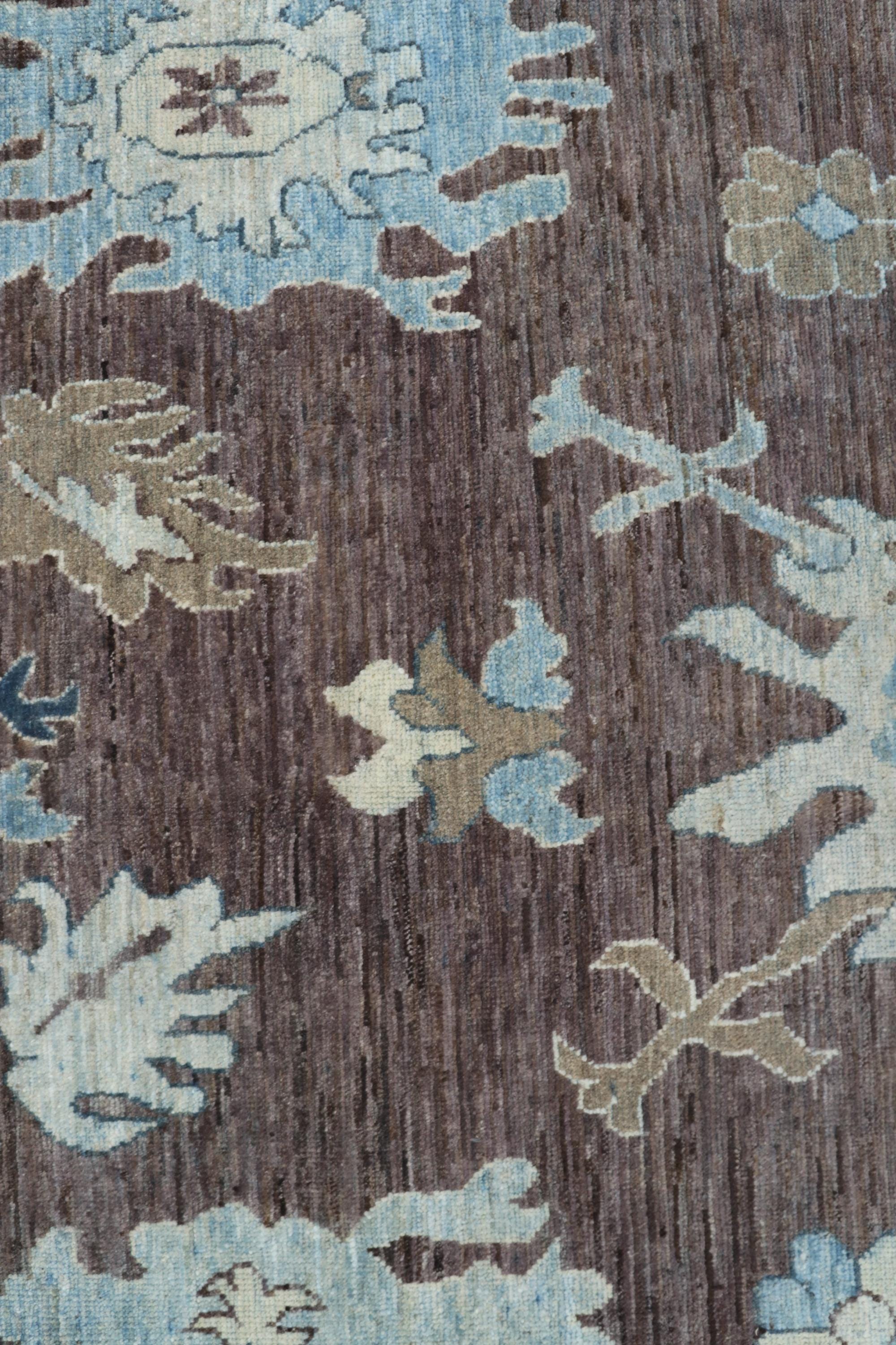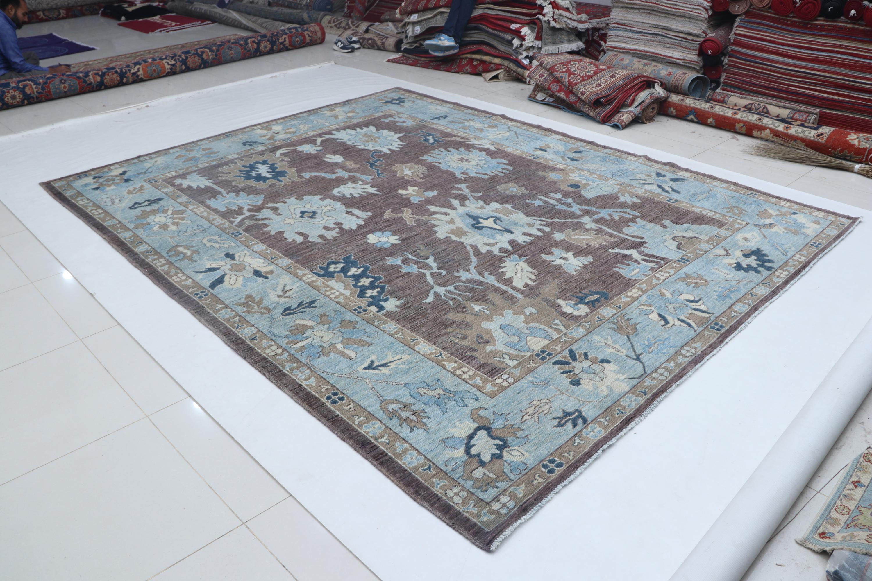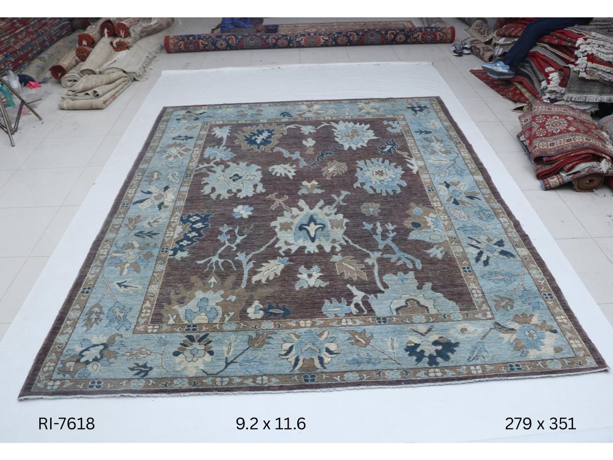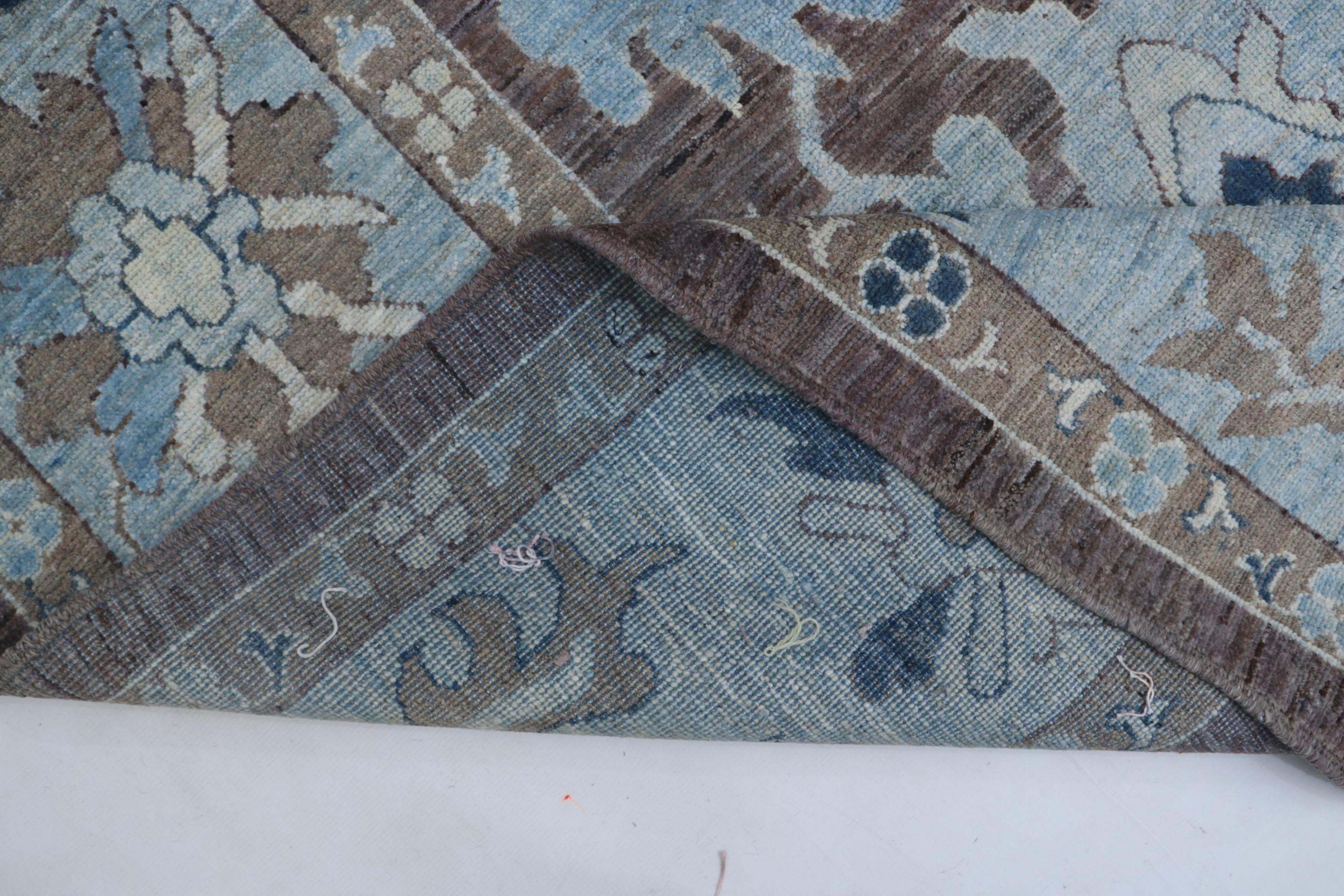this rug in Brown with a Blue border brings elegance to any room.