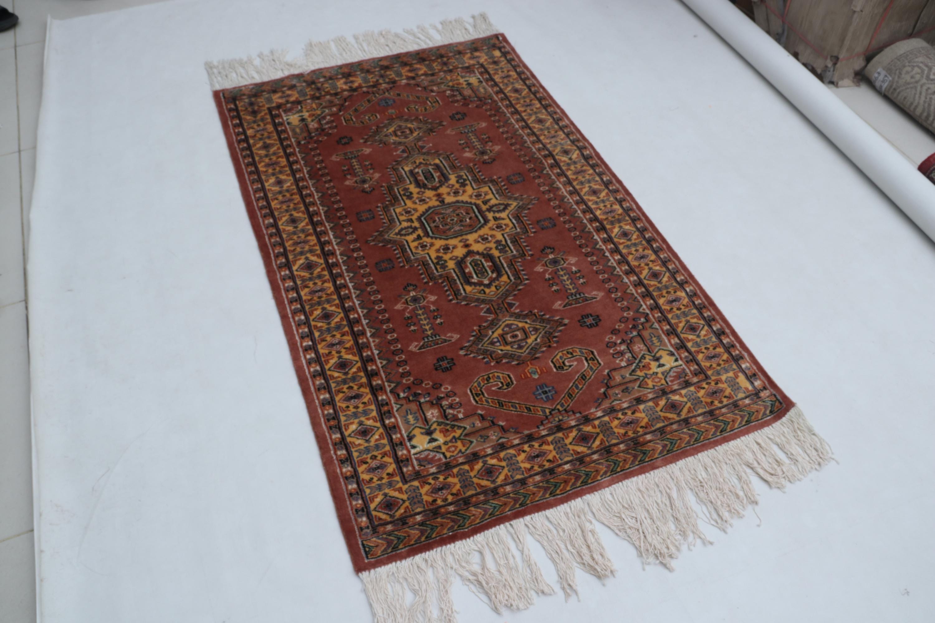 this rug in Red with a Orange border brings elegance to any room.