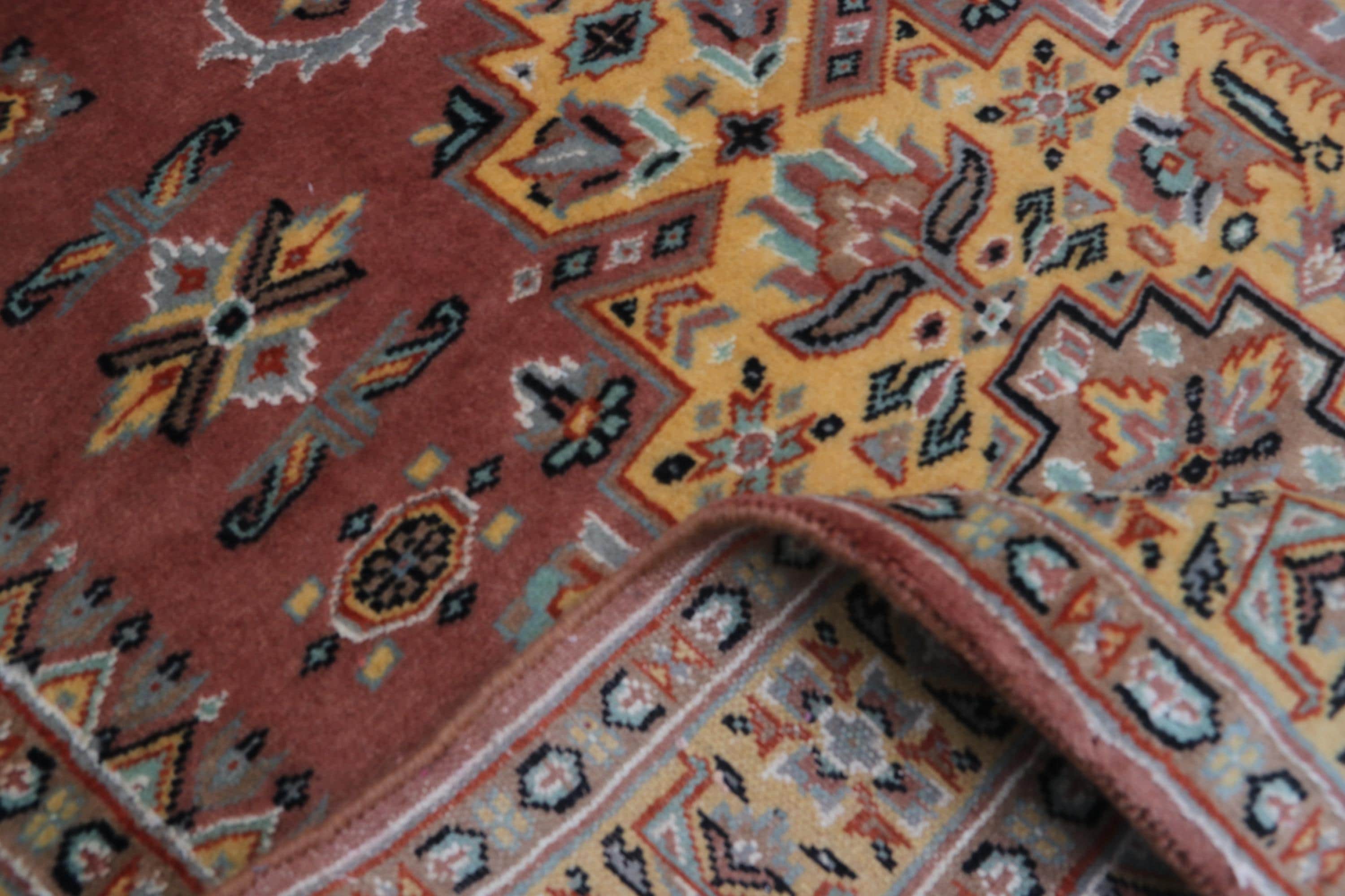 Hand-Knotted Wool & Silk Touch Rug, Red Geometric Design (3.1 x 5.1 ft.)