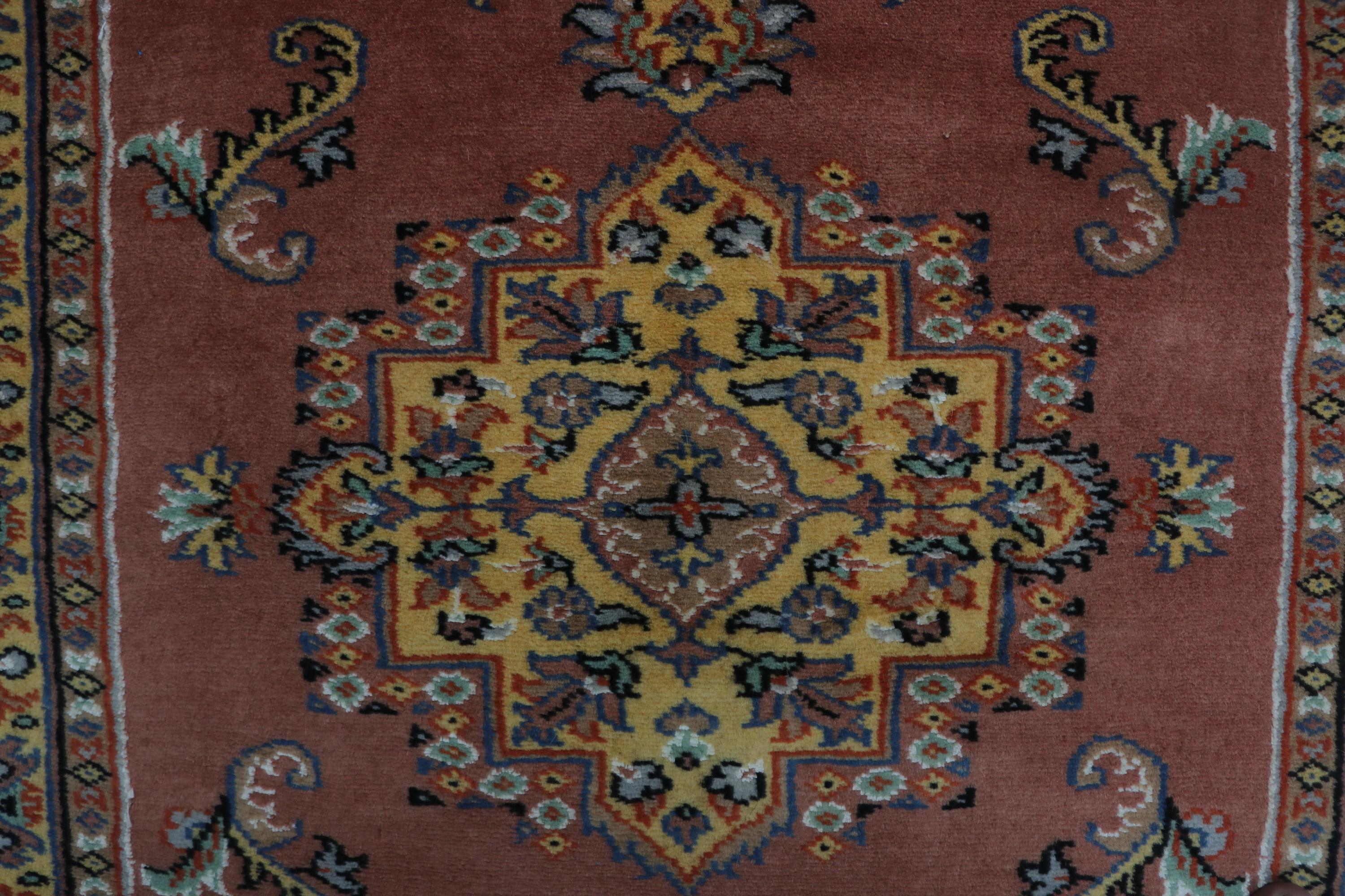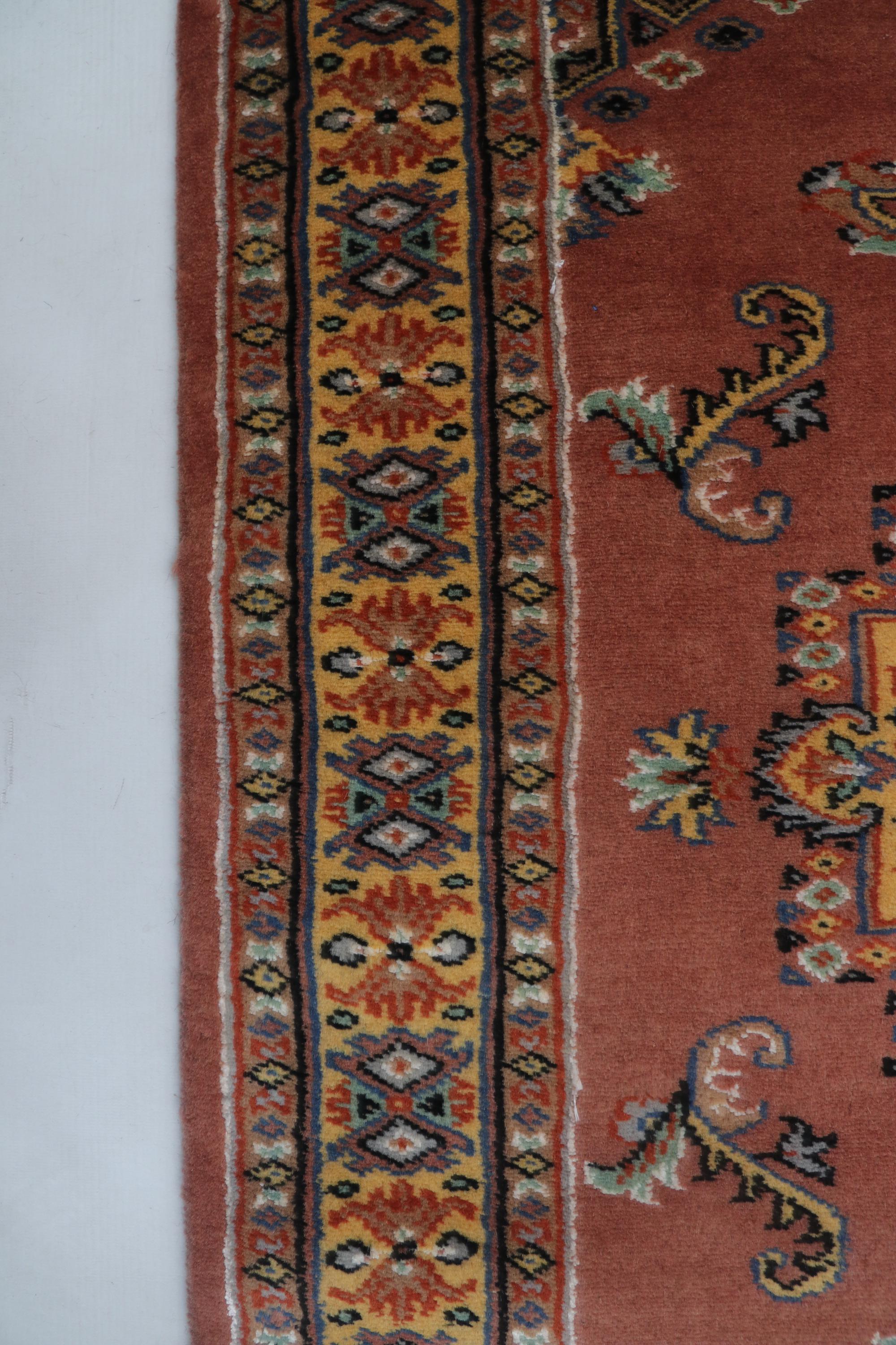 this rug in Copper with a Yellow border brings elegance to any room.