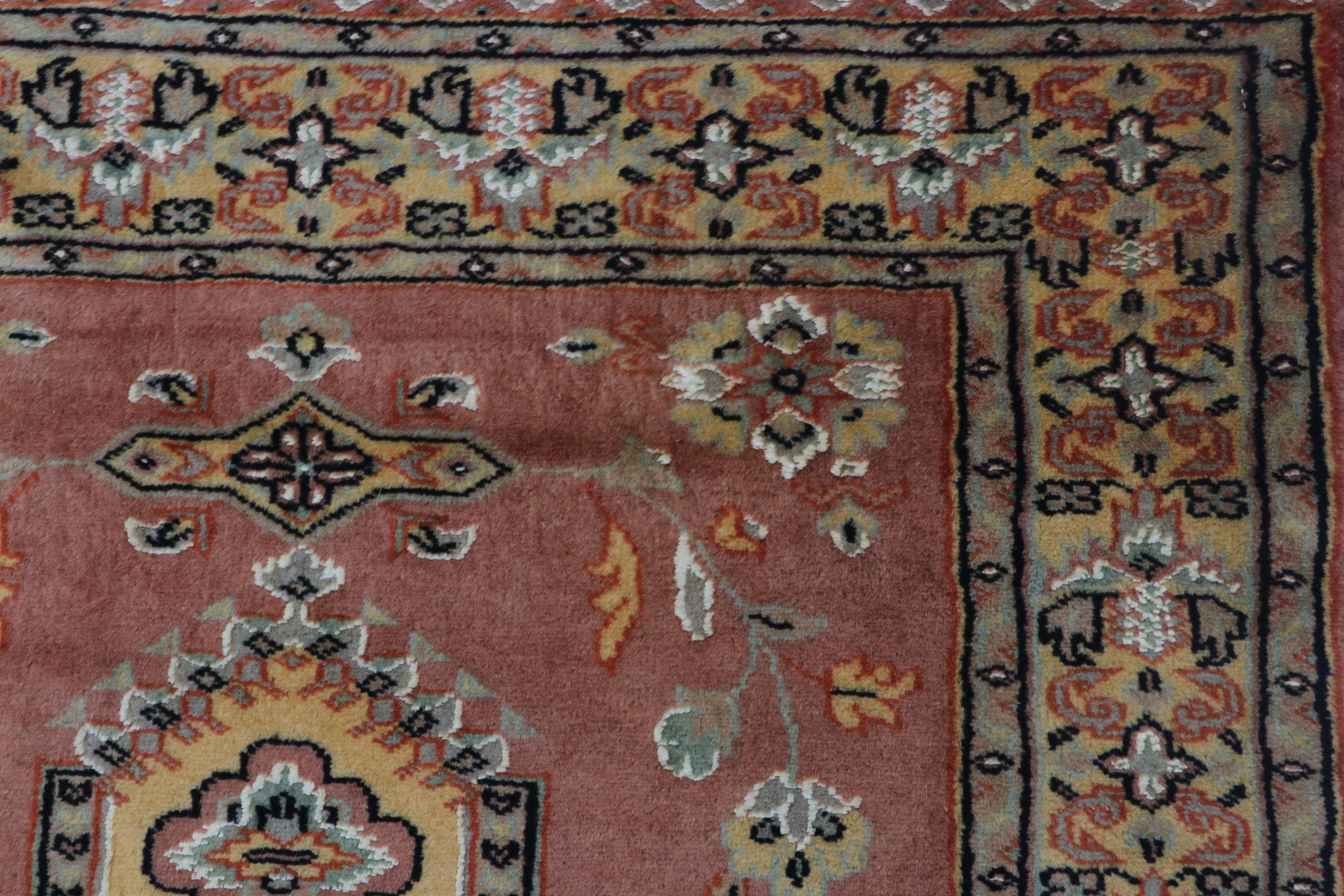 this rug in Copper with a Yellow border brings elegance to any room.