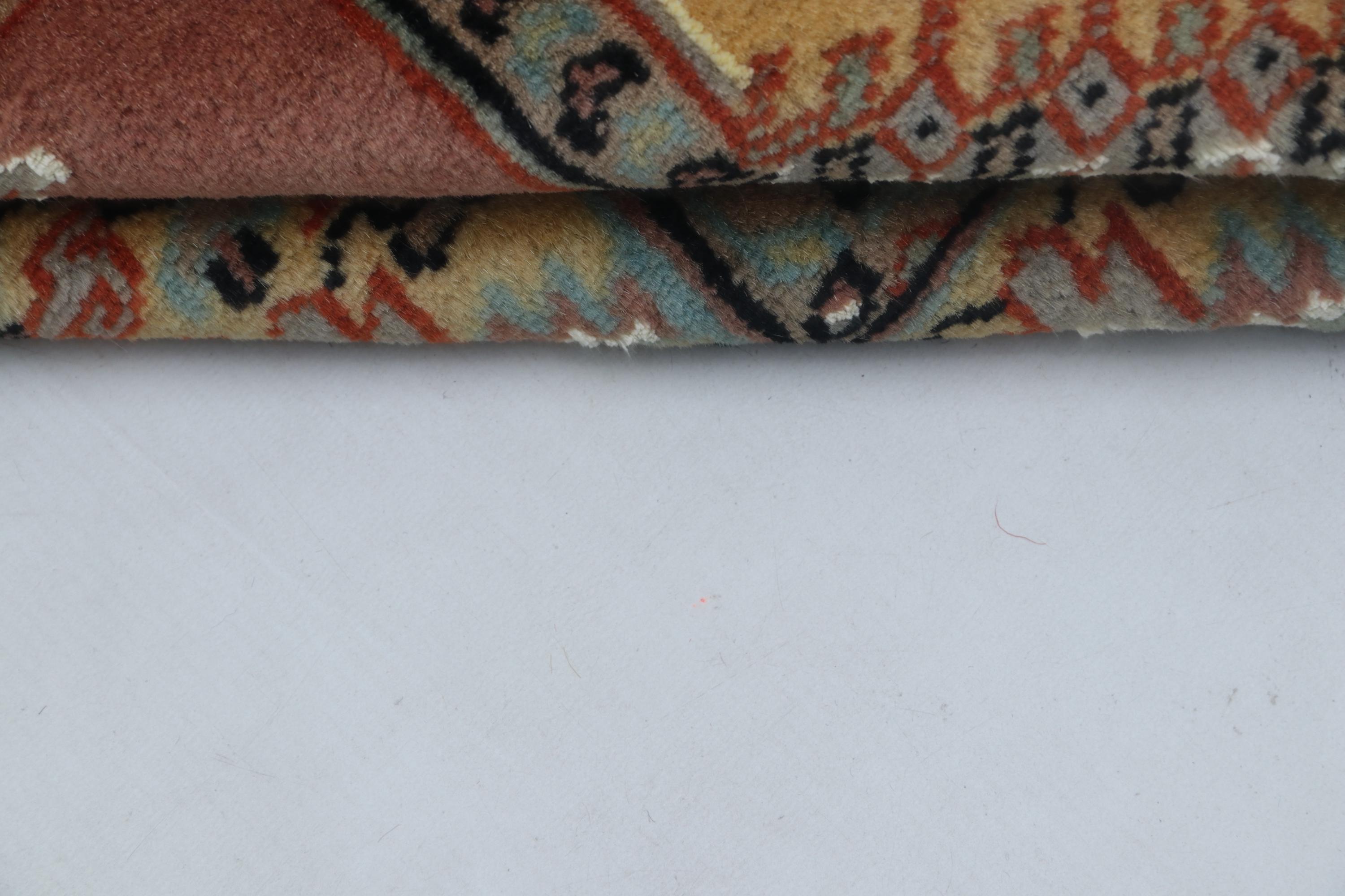 this rug in Orange with a Yellow border brings elegance to any room.