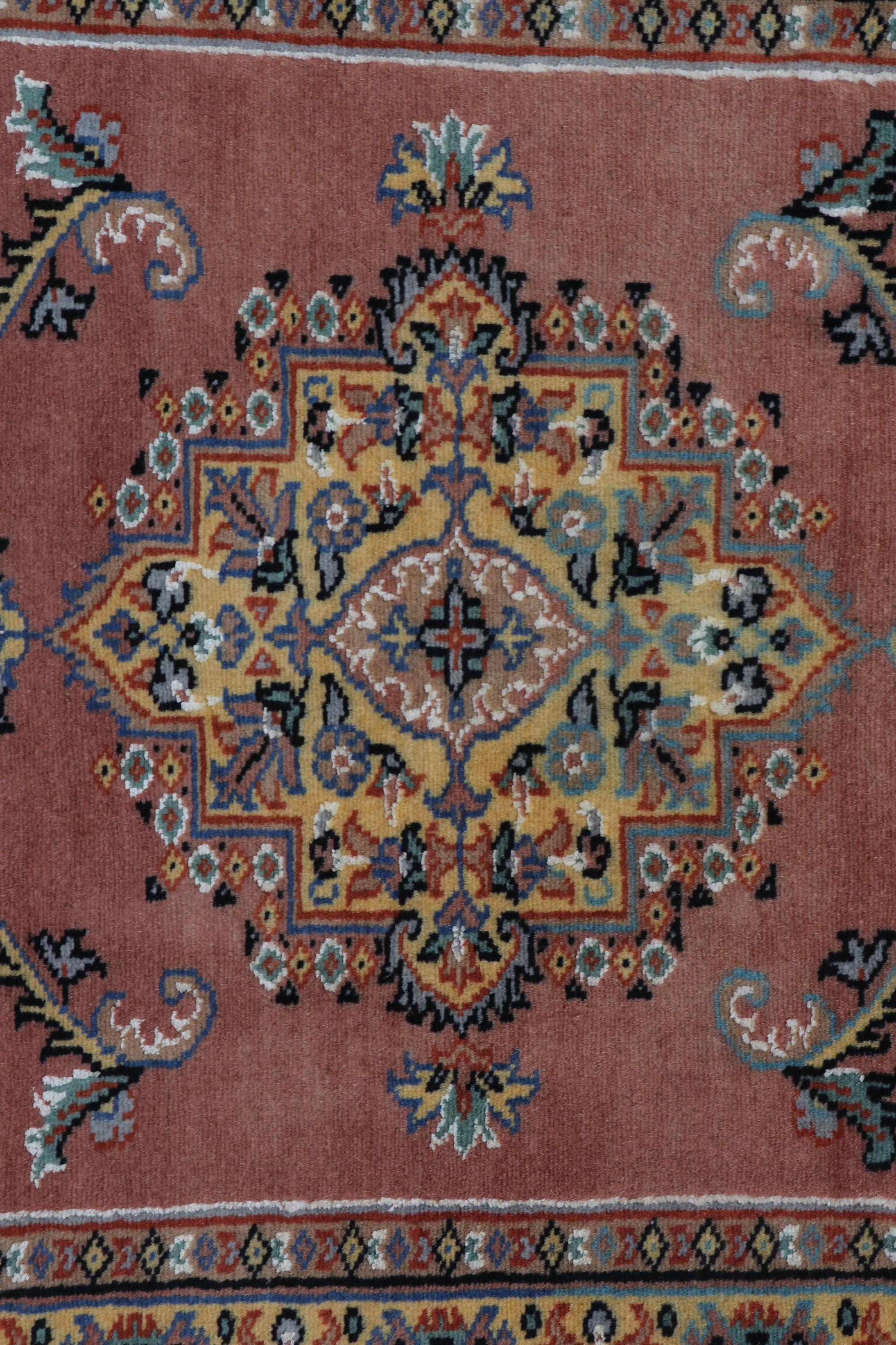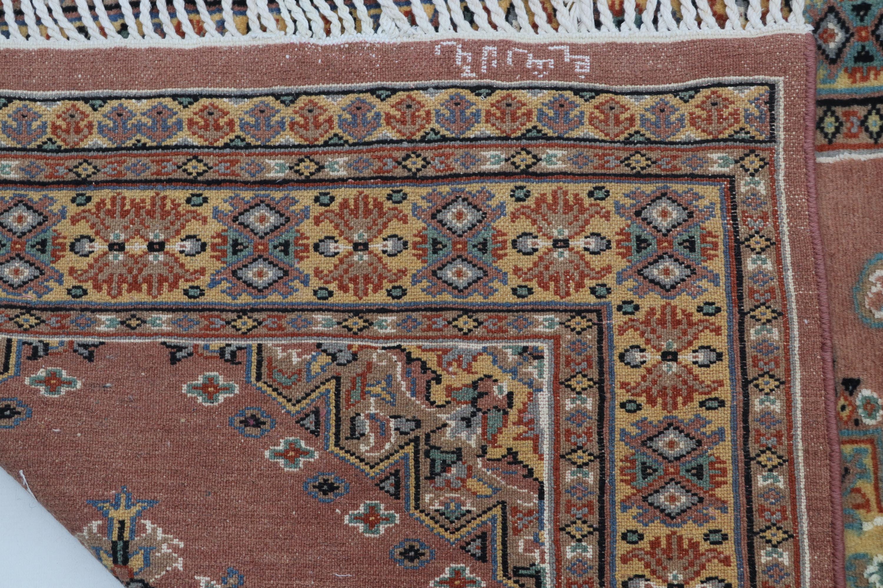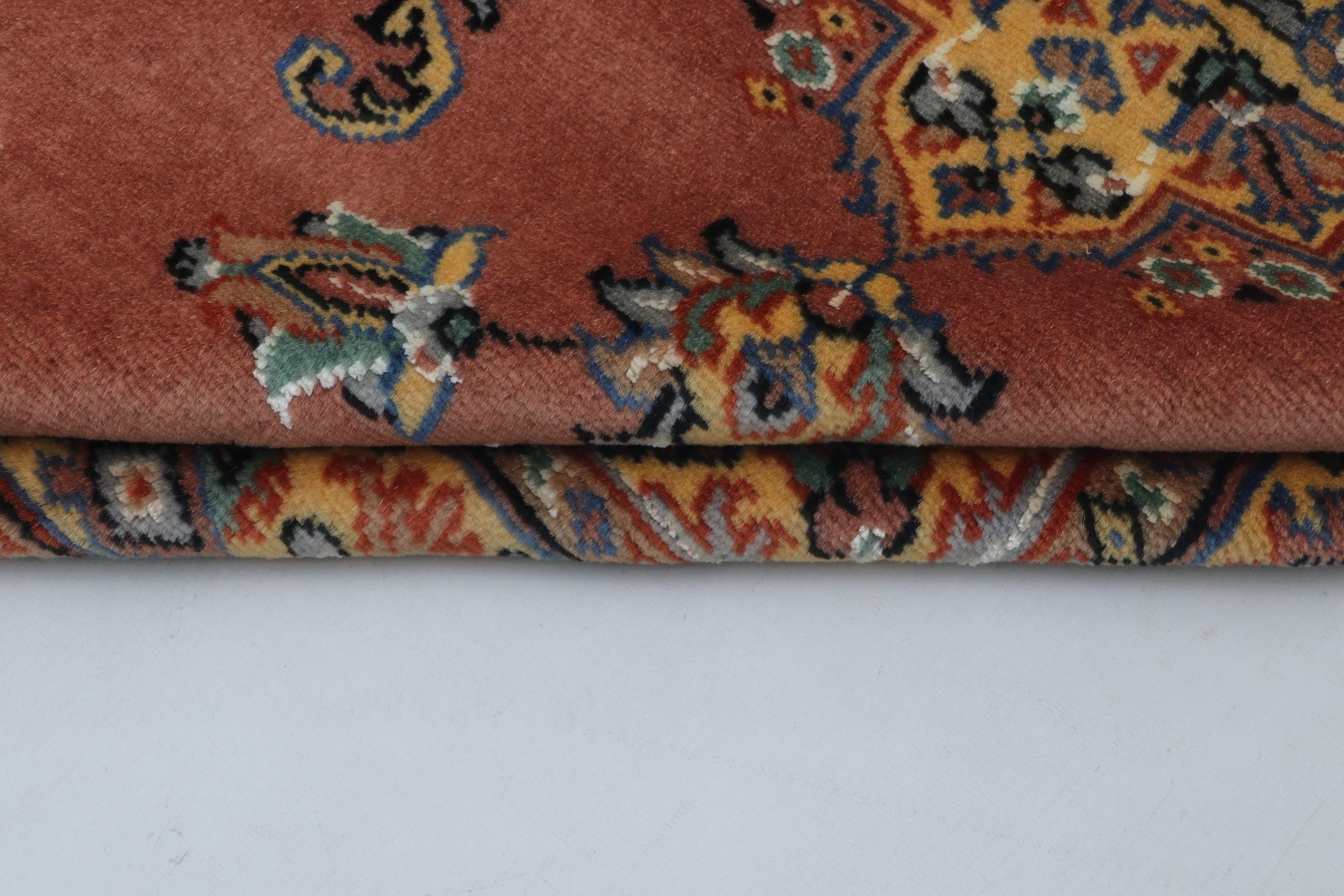 Hand-Knotted Wool and Silk Touch Rug, Copper and Yellow Geometric Design, 2.7 x 4.1 ft