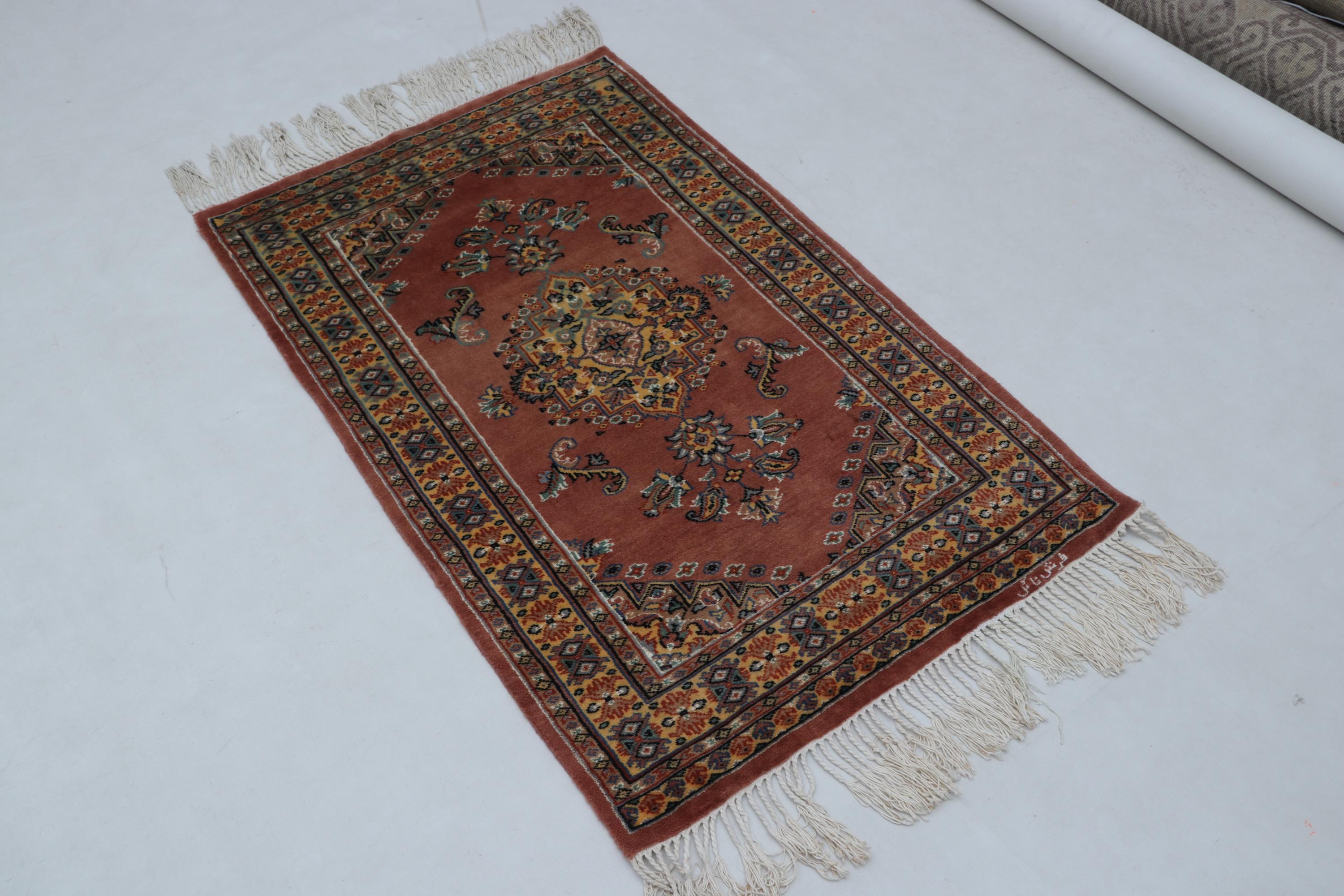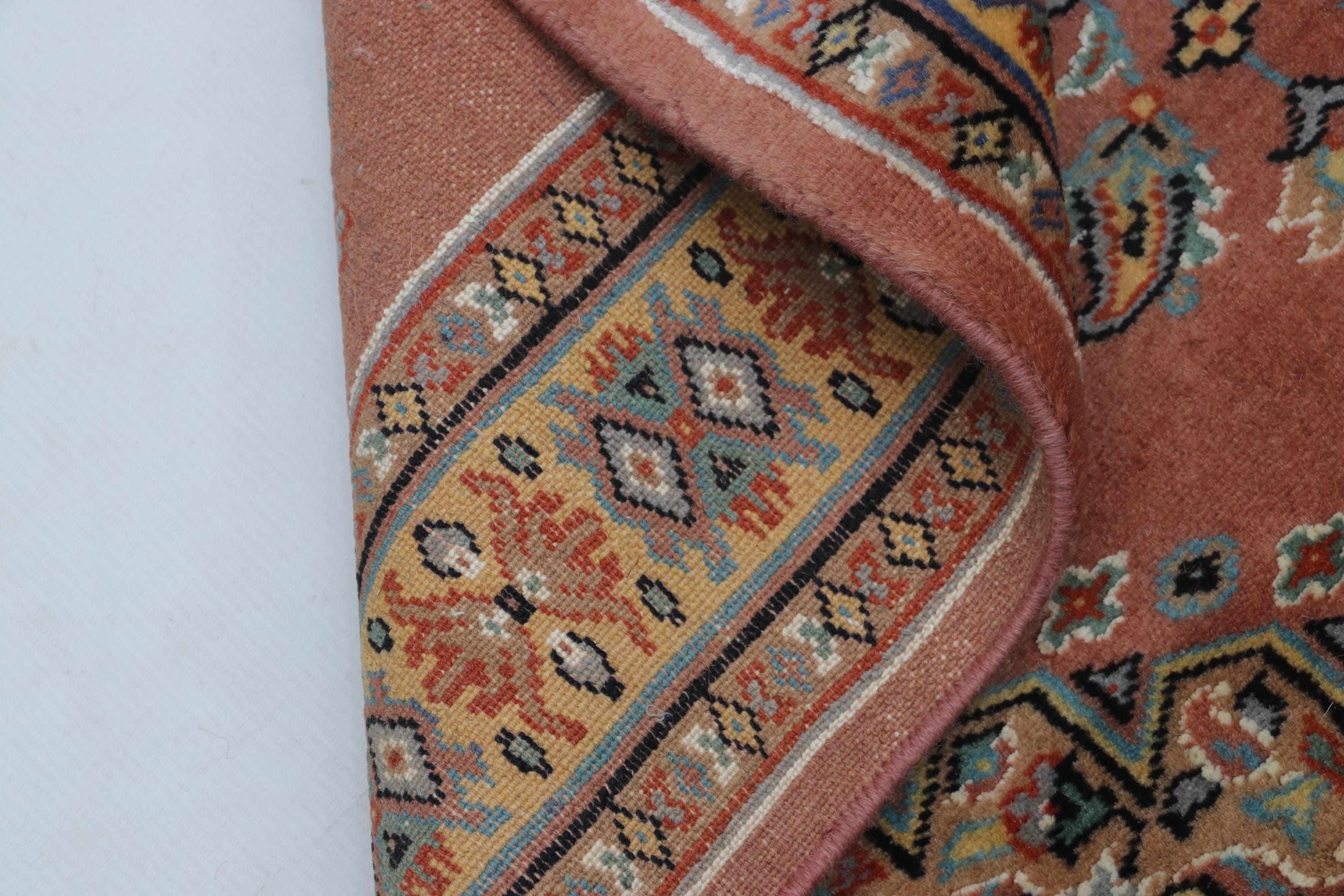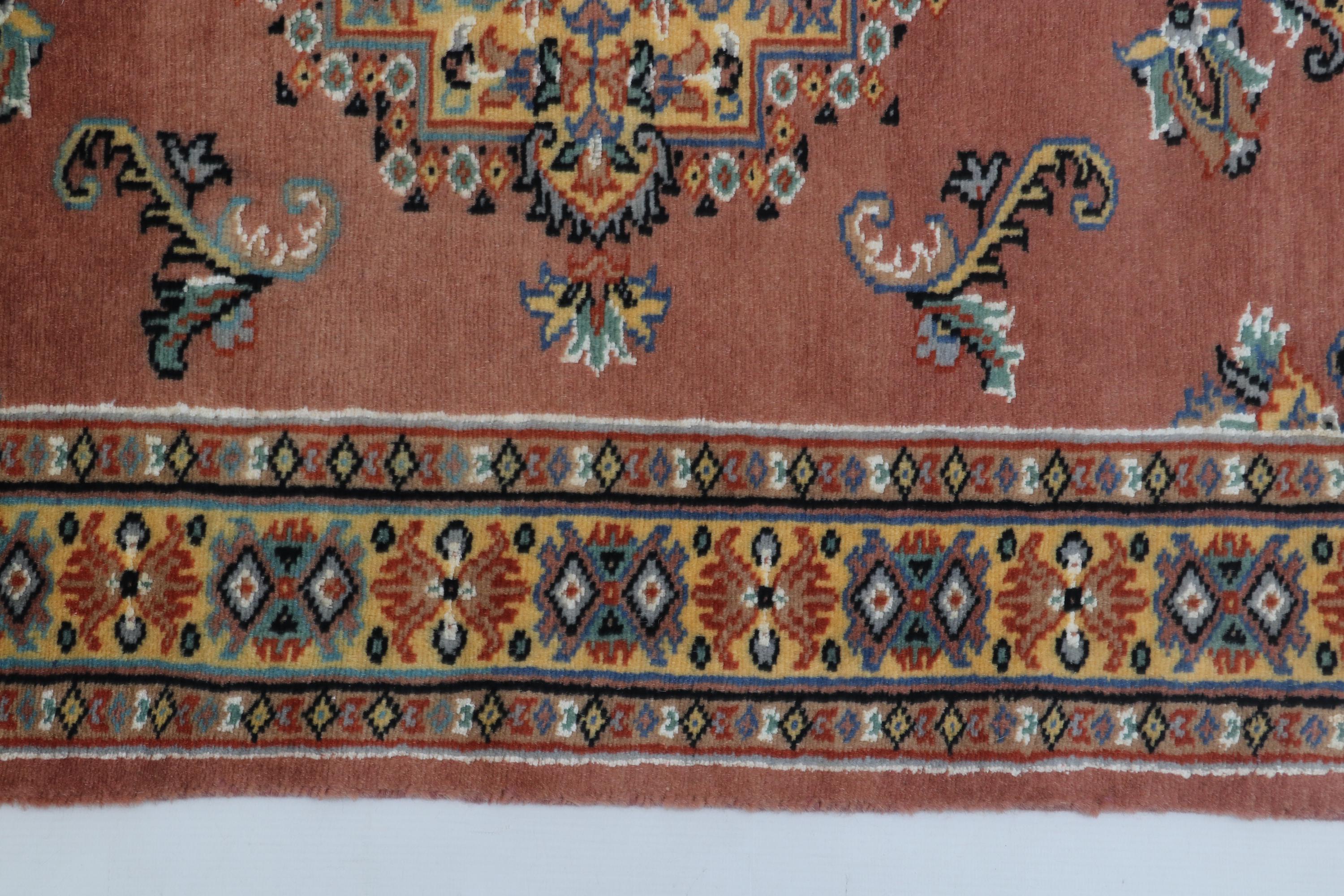 Hand-Knotted Wool and Silk Touch Rug, Copper and Yellow Geometric Design, 2.7 x 4.1 ft