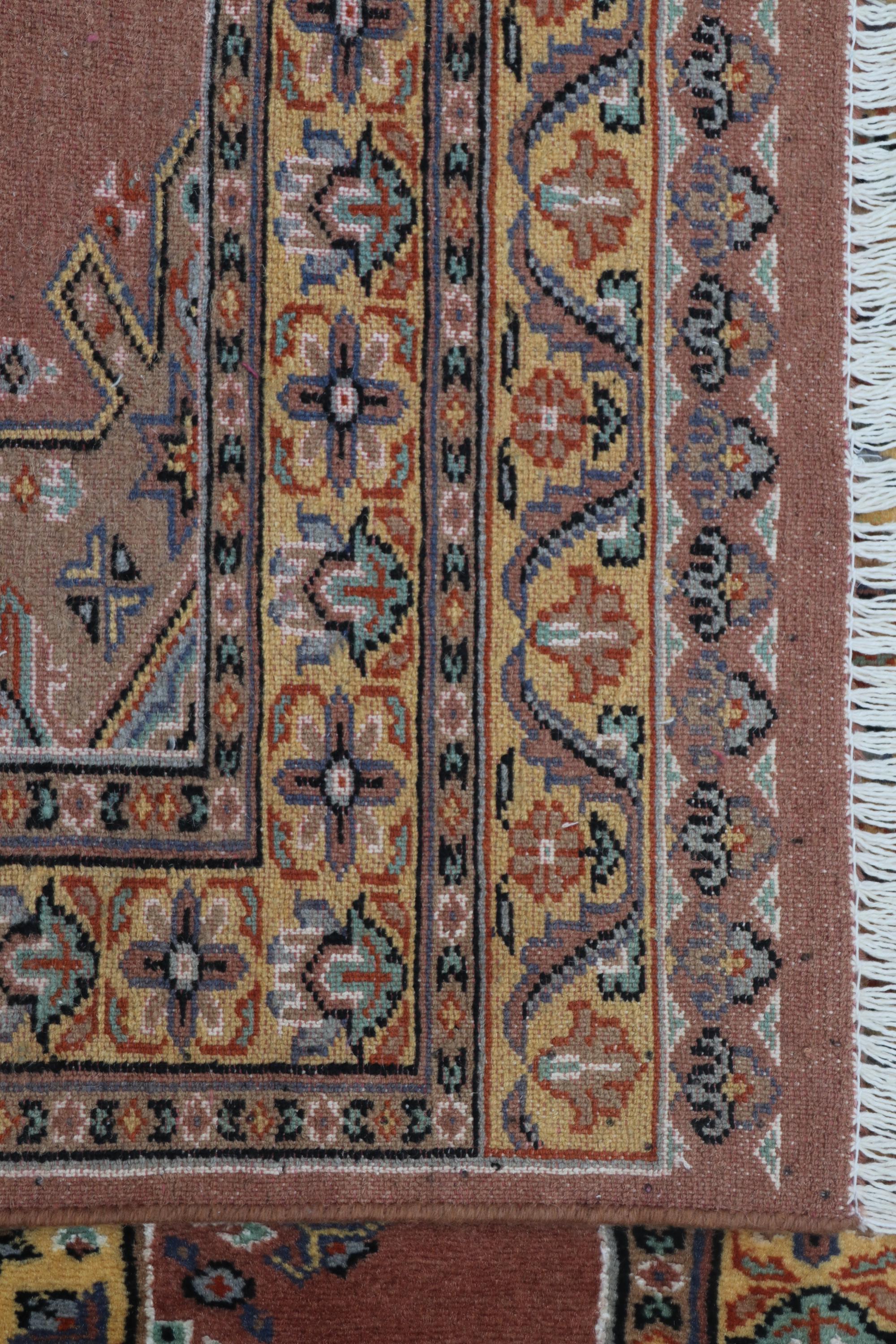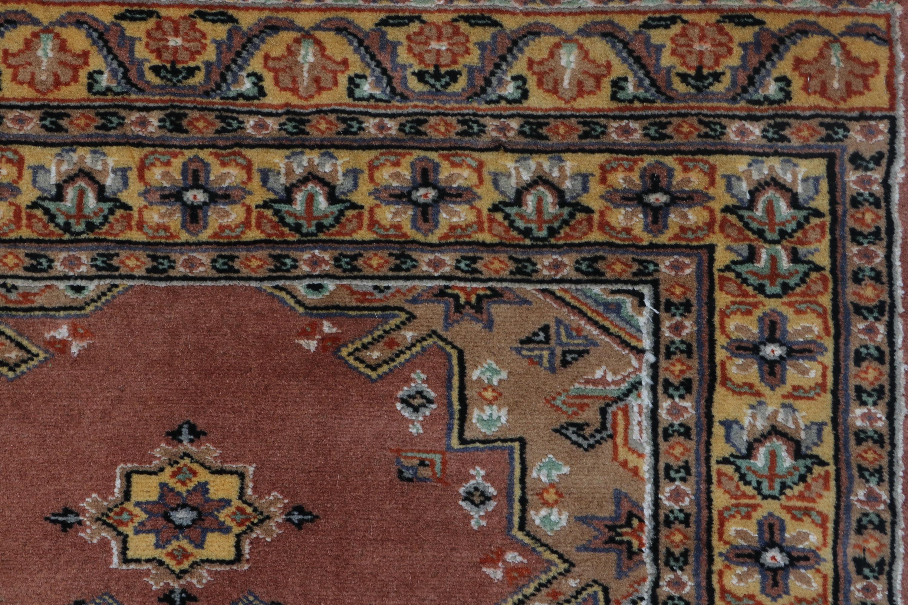 this rug in Copper with a Yellow border brings elegance to any room.