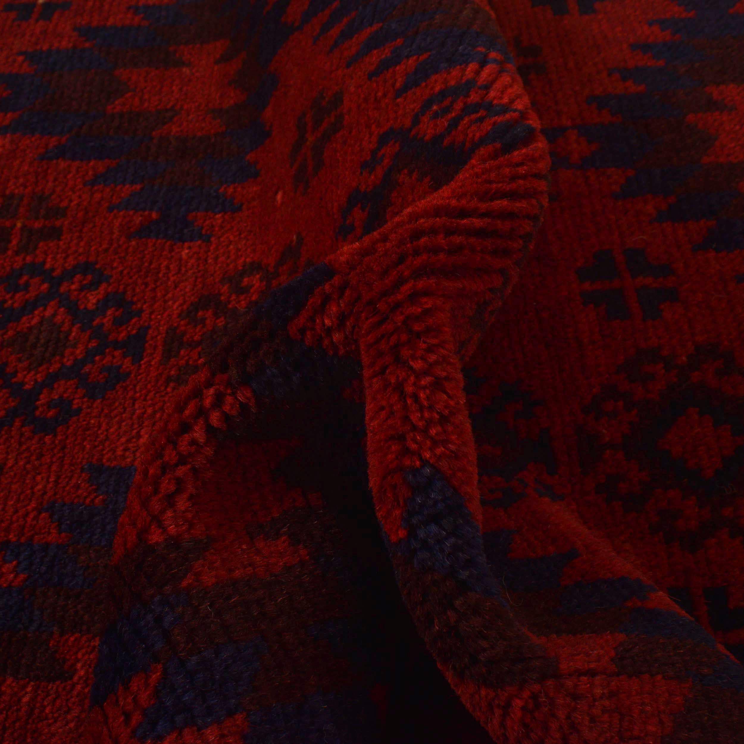 Designed in a Geomatrical style, it showcases Vegetable Dyeing tones for a unique look in Red and Blue colour. Made with Wool, this rug is built to last .