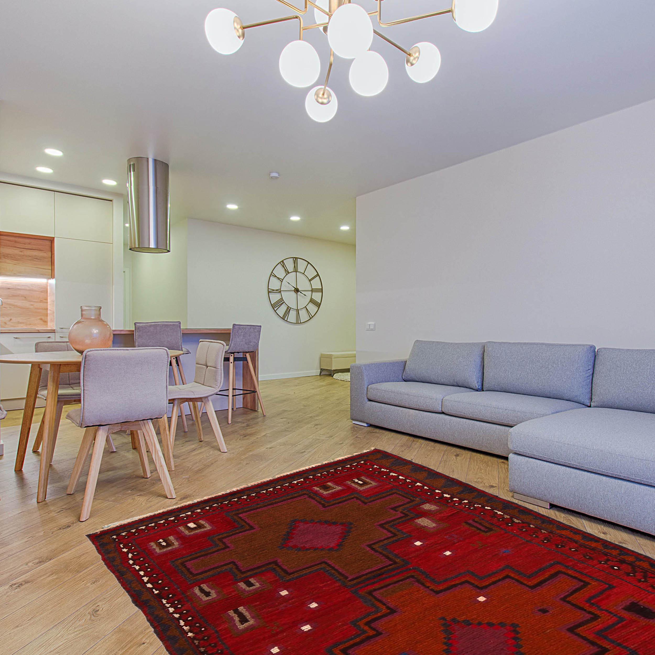 Designed in a Geomatrical style, it showcases Vegetable Dyeing tones for a unique look in Red andBrowncolour. Made with Wool, this rug is built to last .