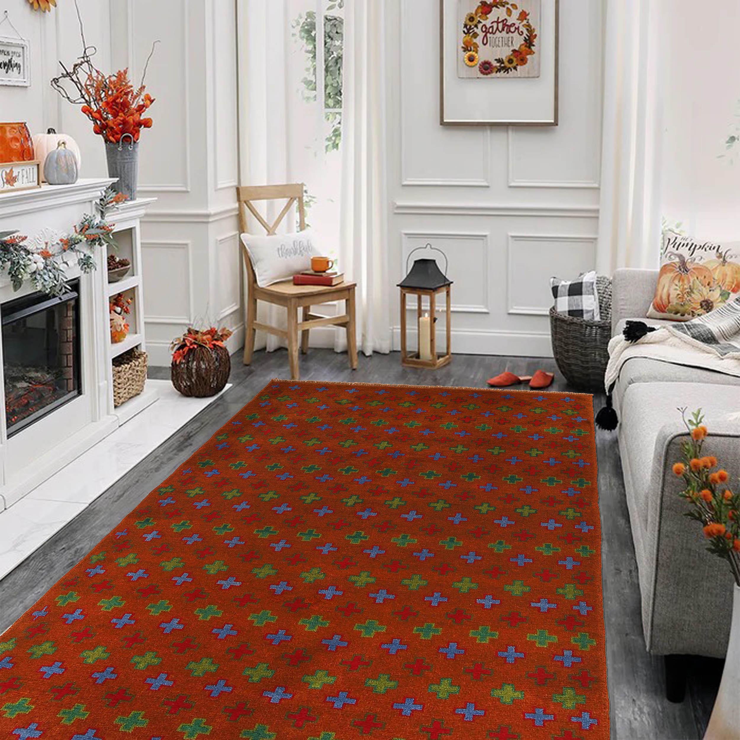 Elevate your décor with the Baluchi, a luxury handmade Geomatrical rug. Featuring a richOrange this rug blends beauty and durability with its wool texture. Standard Size: 3.93 X 6.56 ft