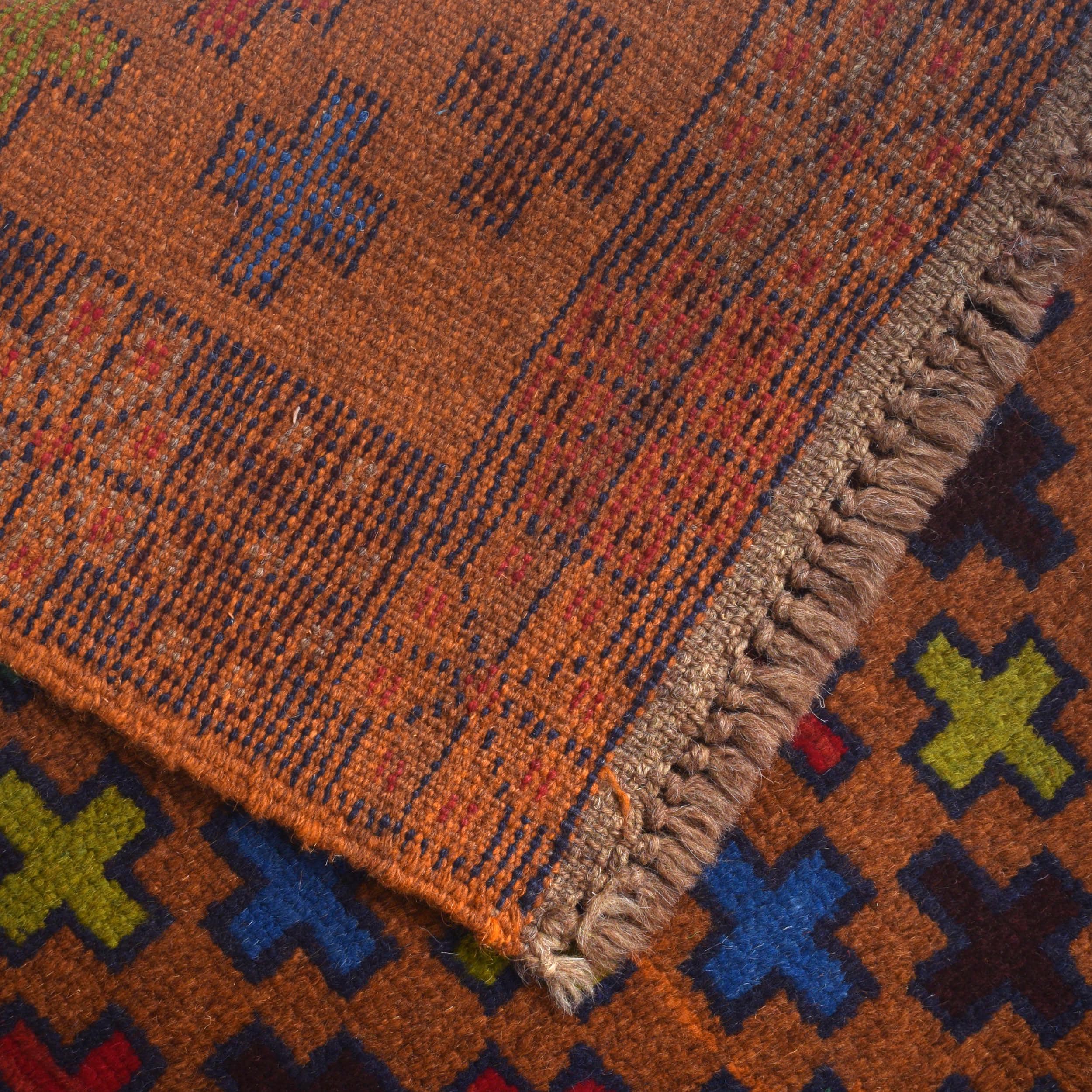 Elevate your décor with the Baluchi, a luxury handmade Geomatrical rug. Featuring a rich Orange and Blue this rug blends beauty and durability with its wool texture. Standard Size: 3.93 X 6.56 ft