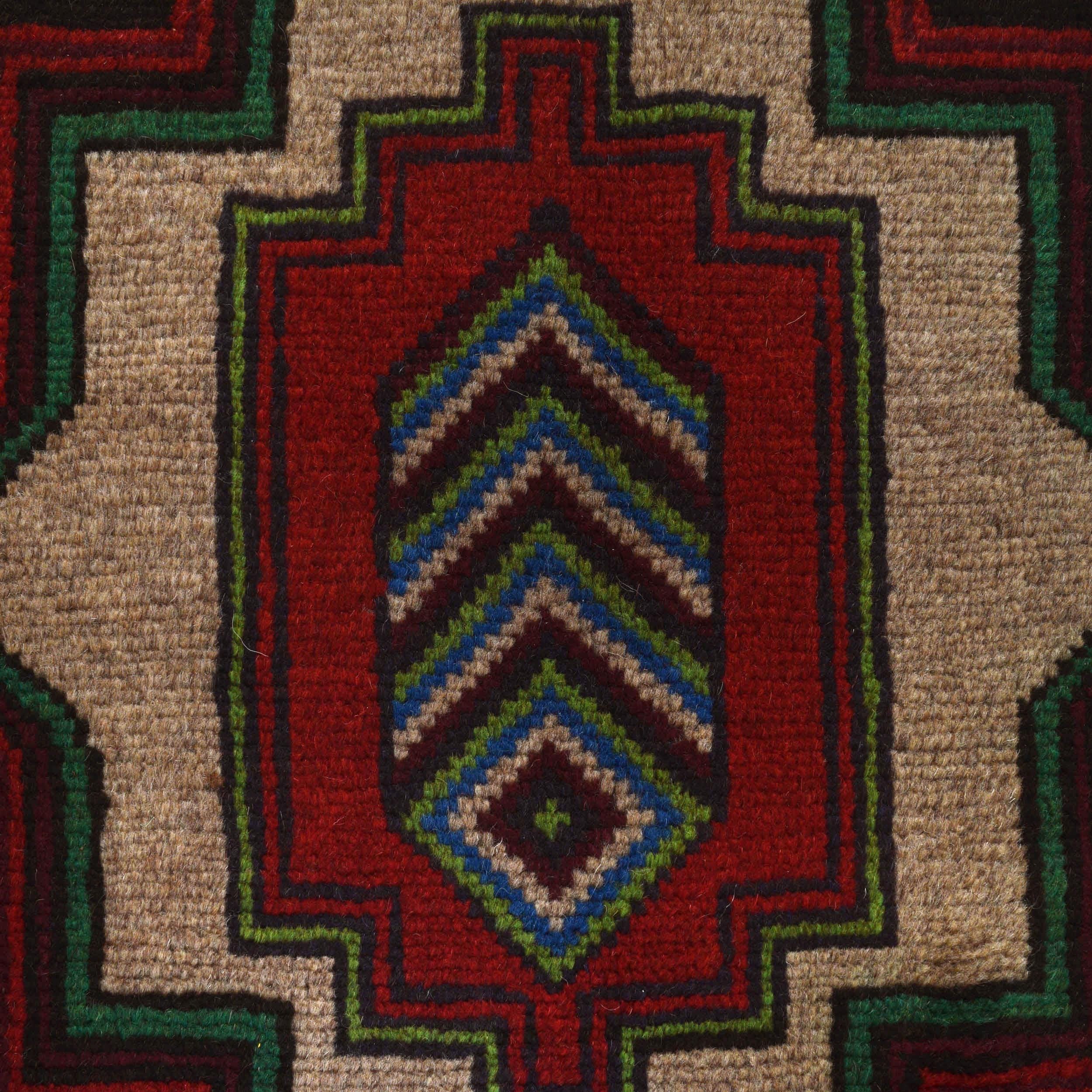 Elevate your décor with the Baluchi, a luxury handmade Geomatrical rug. Featuring a rich Being and Red this rug blends beauty and durability with its wool texture. Standard Size: 3.93 X 6.56 ft