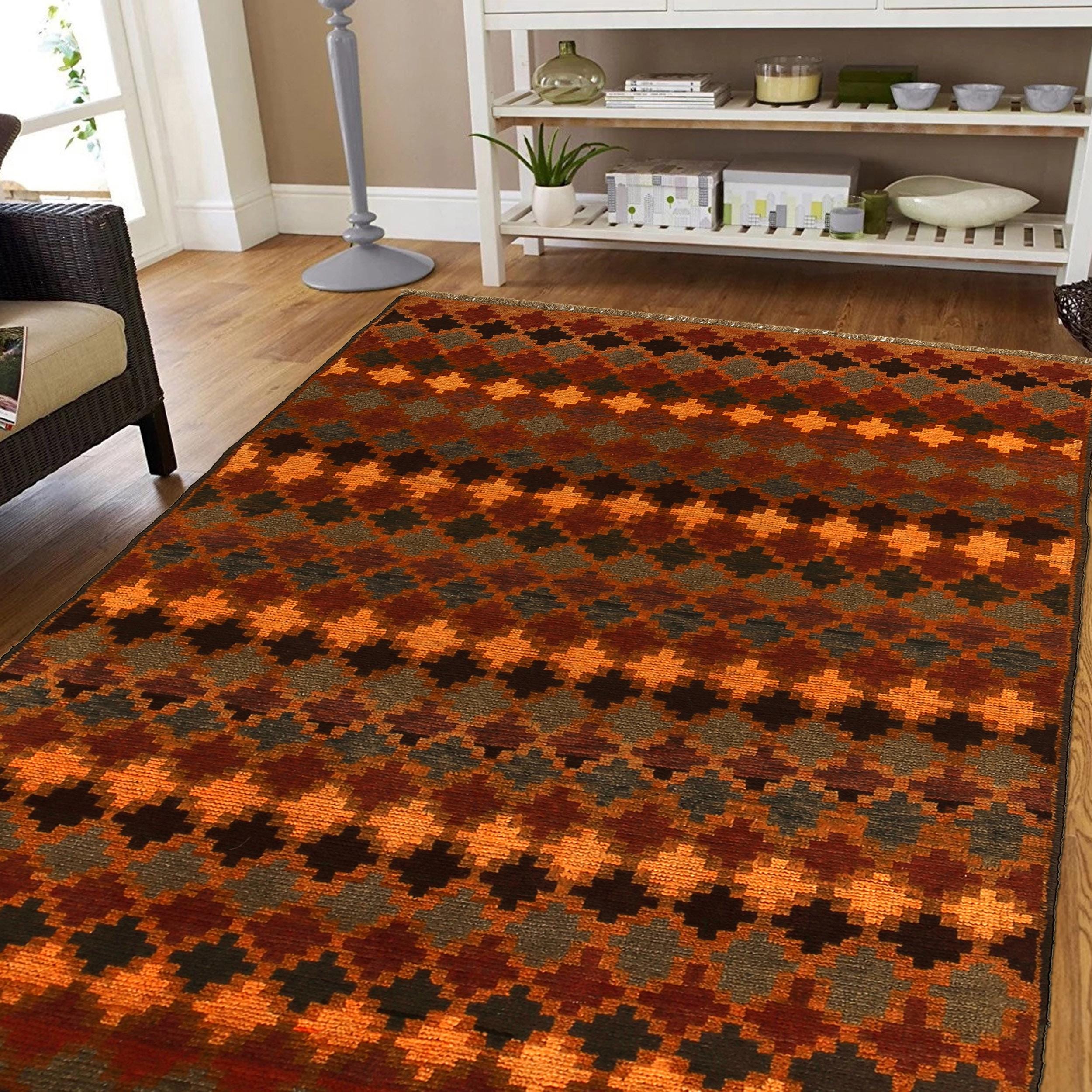 Elevate your décor with the Baluchi, a luxury handmade Geomatrical rug. Featuring a rich Brown and Rainbow, this rug blends beauty and durability with its wool texture. Standard Size: 3.93 X 6.56 ft