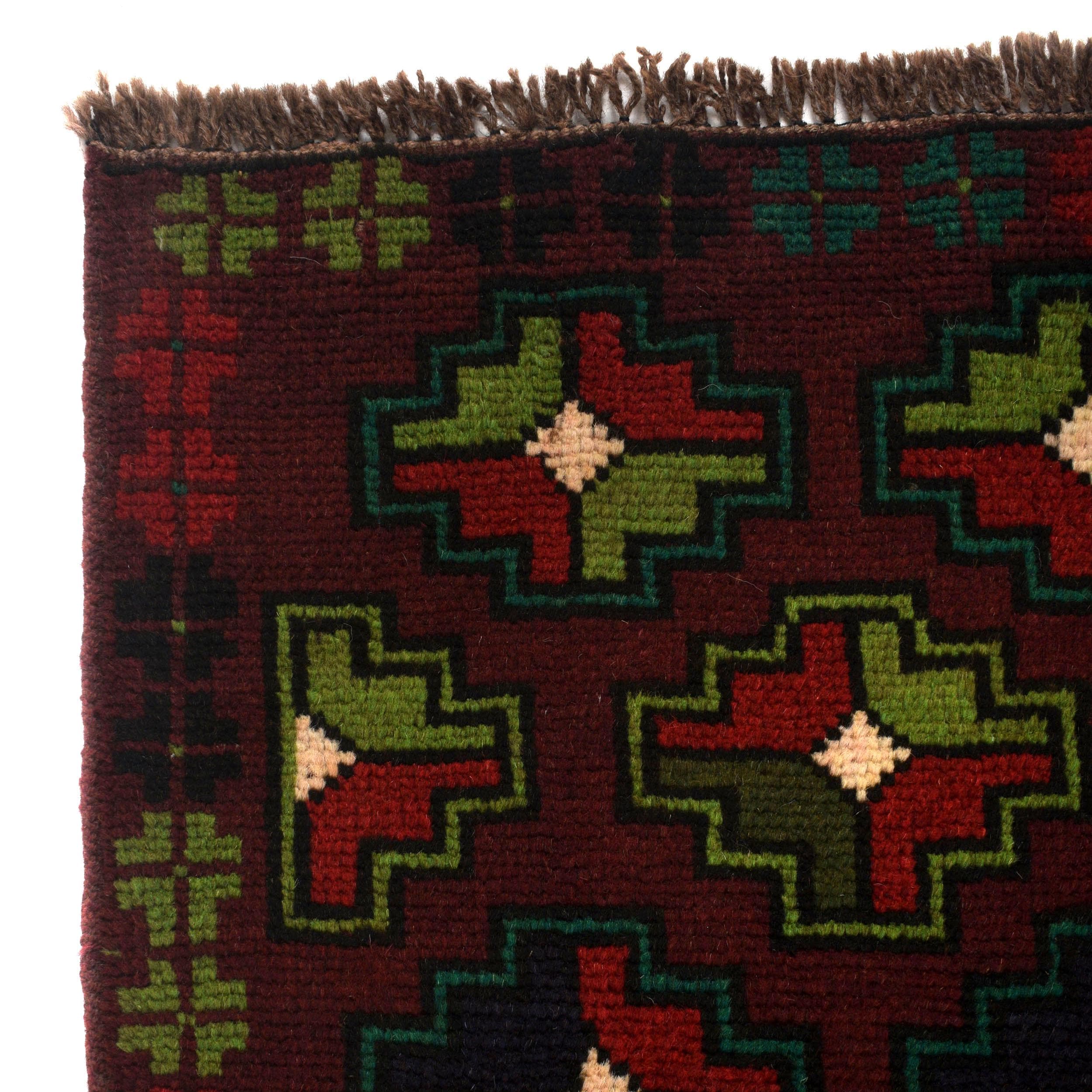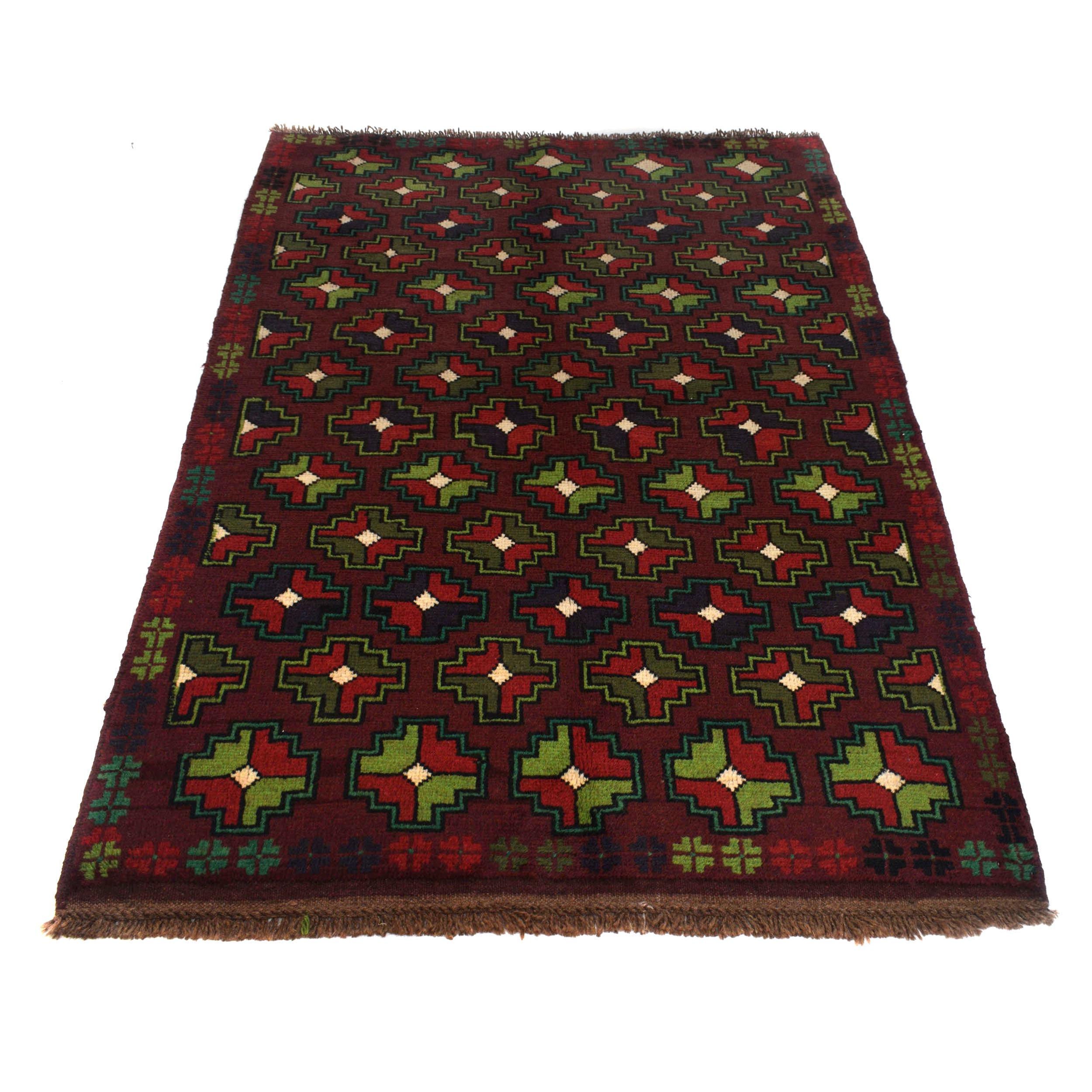 Elevate your décor with the Baluchi, a luxury handmade Geomatrical rug. Featuring a rich Red this rug blends beauty and durability with its wool texture. Standard Size: 3.93 X 6.56 ft