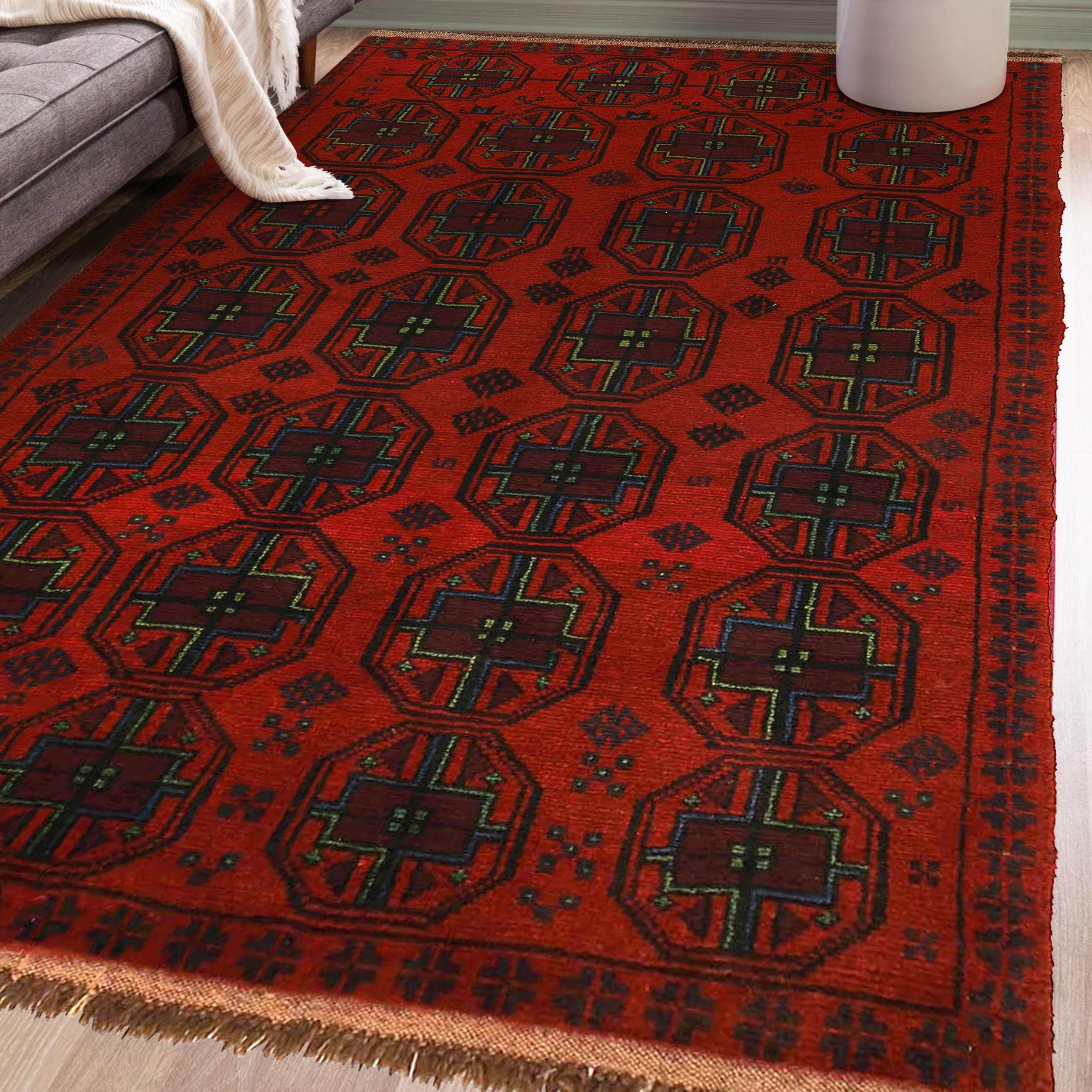 Elevate your décor with the Baluchi, a luxury handmade Geomatrical rug. Featuring a rich Red this rug blends beauty and durability with its wool texture. Standard Size: 3.93 X 6.56 ft