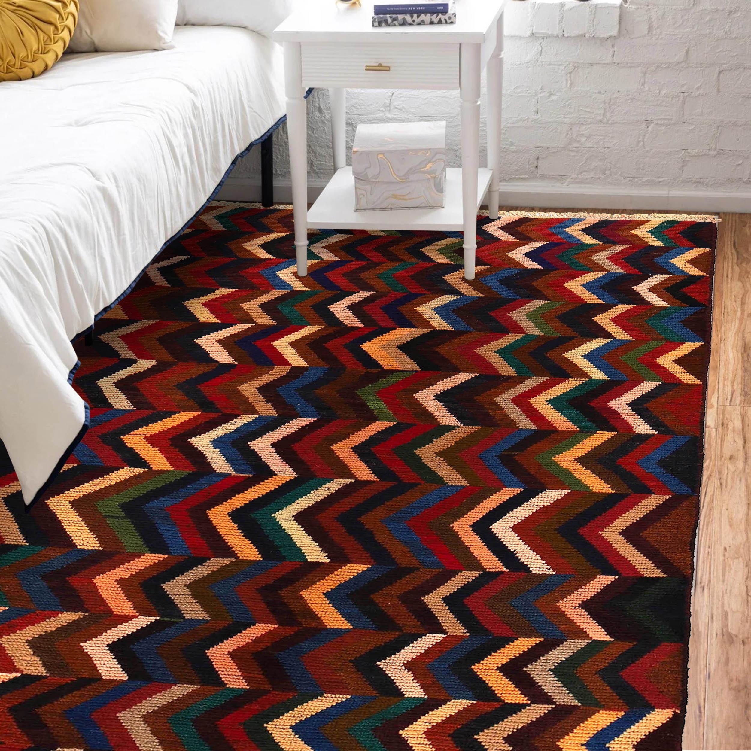 Featuring a rich Brown and Rainbow this rug blends beauty and durability with its wool texture.