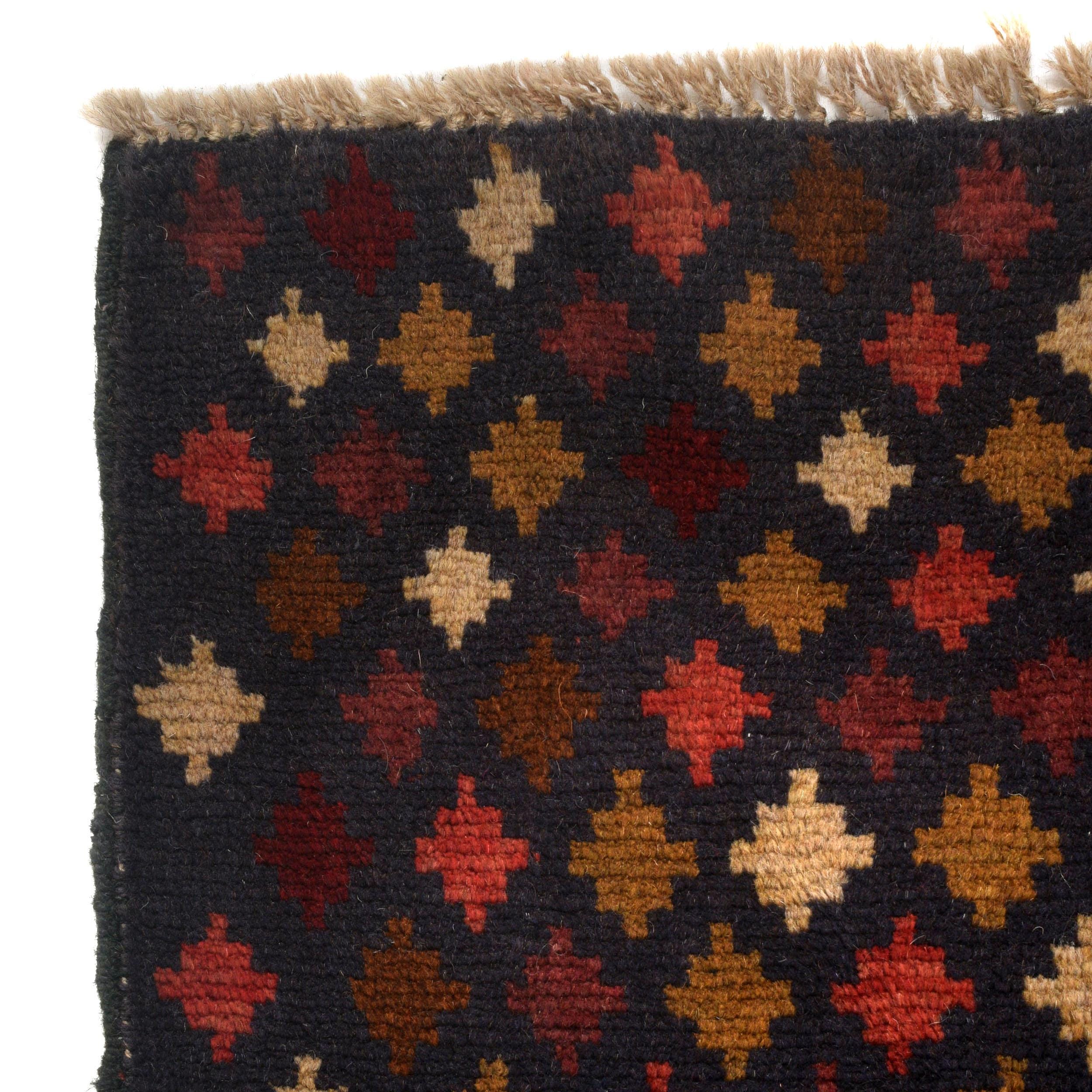 Elevate your décor with the Baluchi, a luxury handmade Geomatrical rug. Featuring a rich Blue and Rainbow this rug blends beauty and durability with its wool texture. Standard Size: 3.93 X 6.56 ft