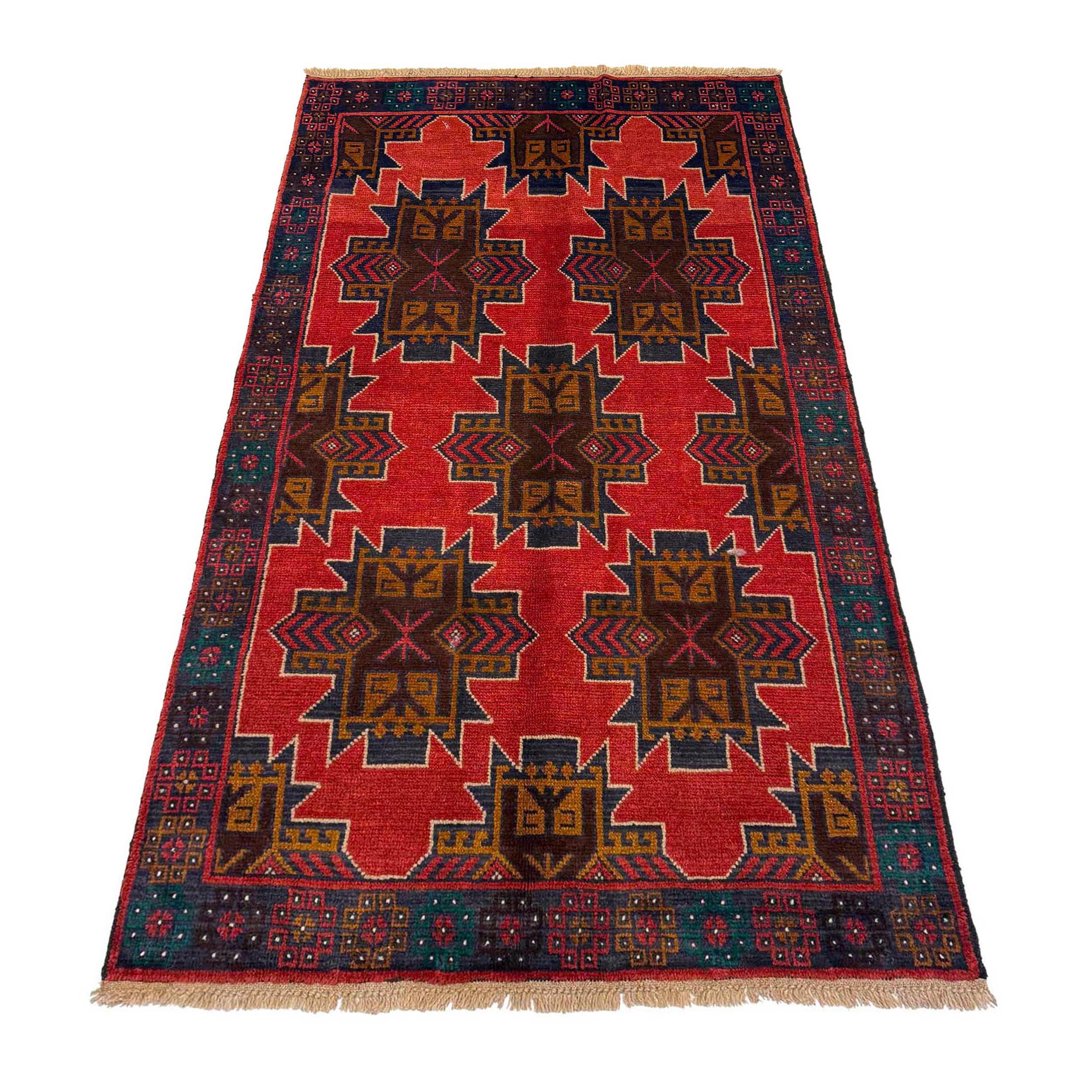 Elevate your décor with the Baluchi, a luxury handmade Geomatrical rug.