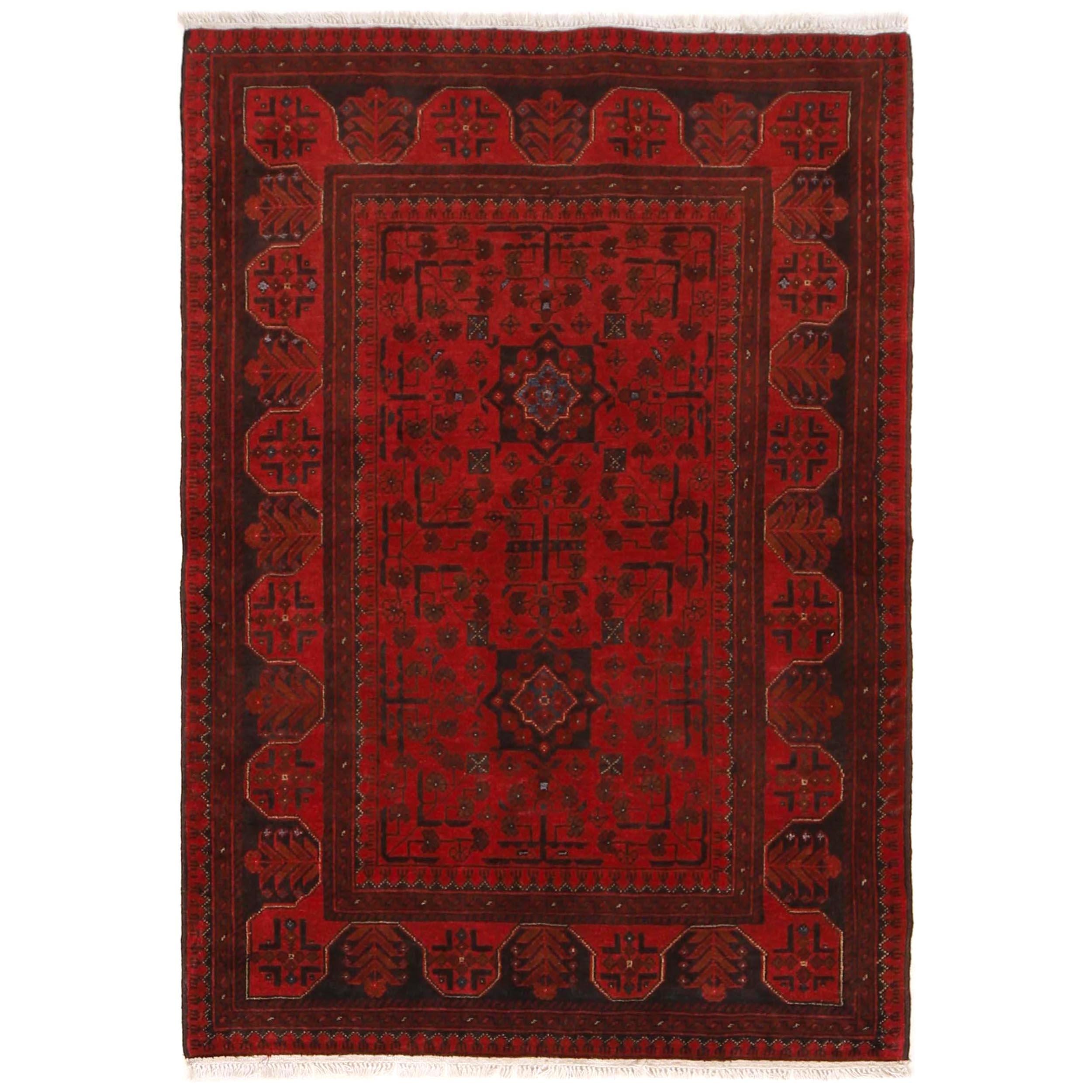 Elevate your décor with the Khal Mohammadi, a luxury handmade Geomatrical rug. Featuring a rich Red this rug blends beauty and durability with its wool texture. Standard Size: 3.28 X 4.92 ft