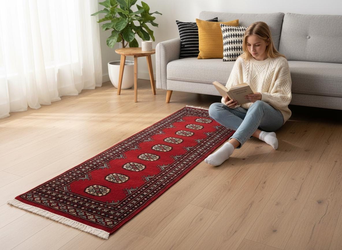 this rug in Red border brings elegance to any room.