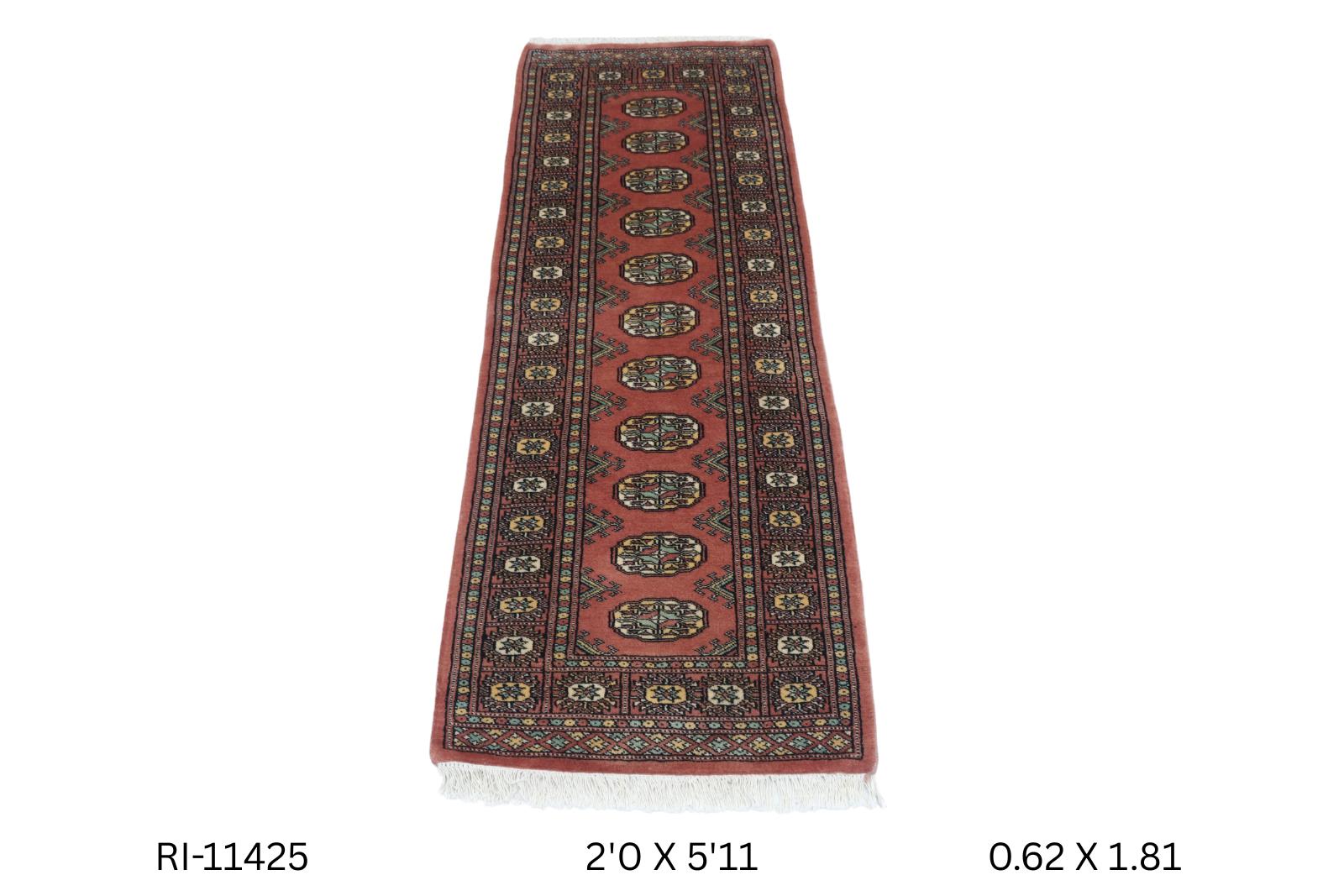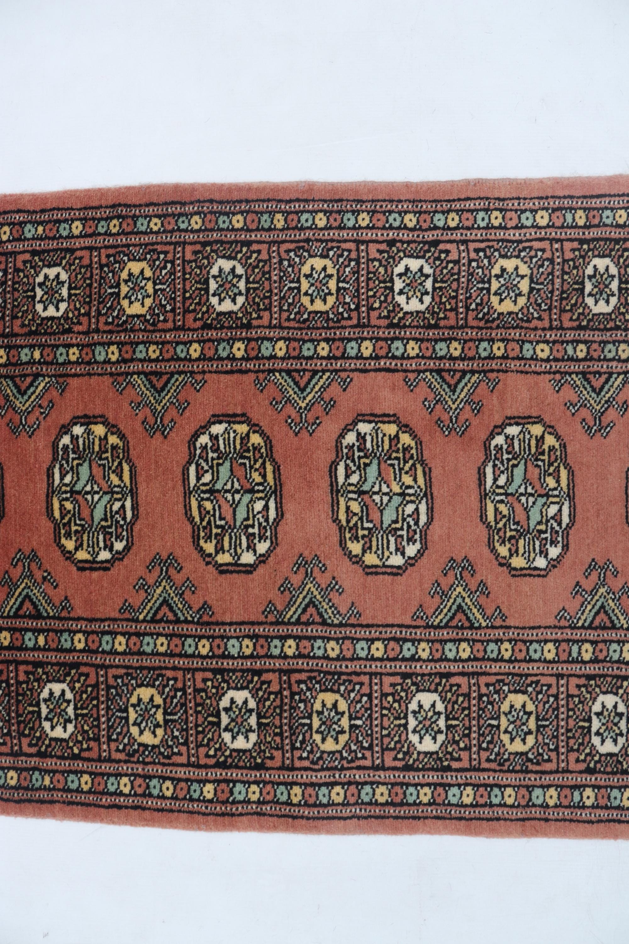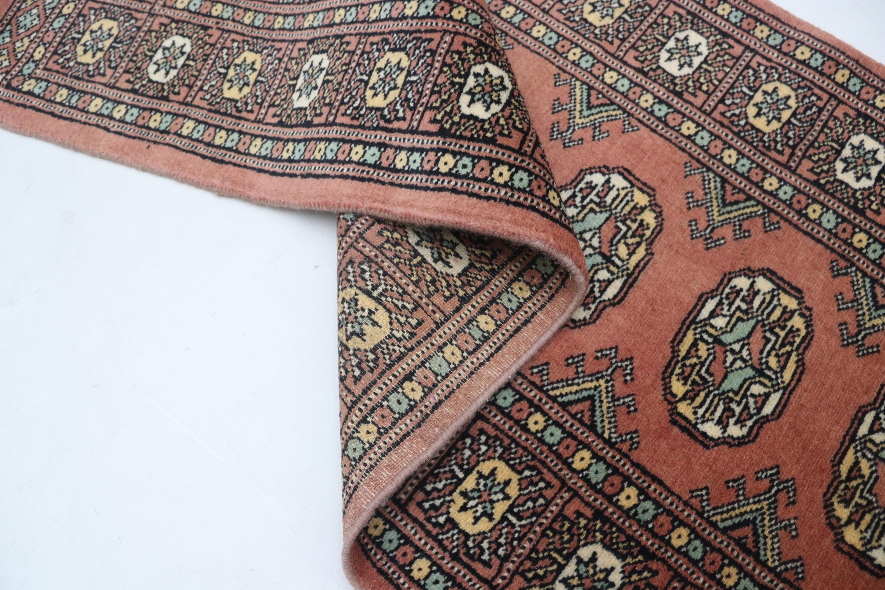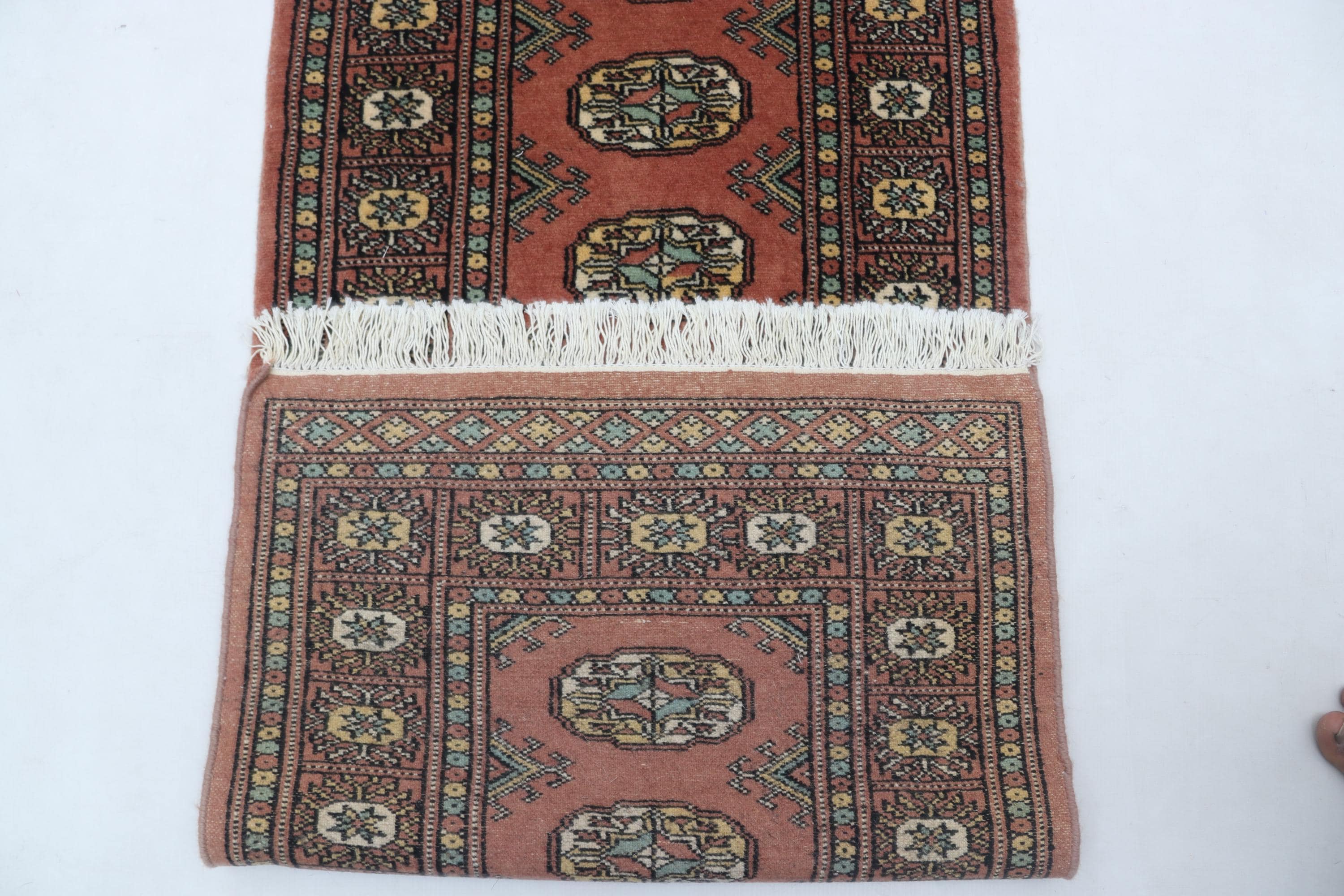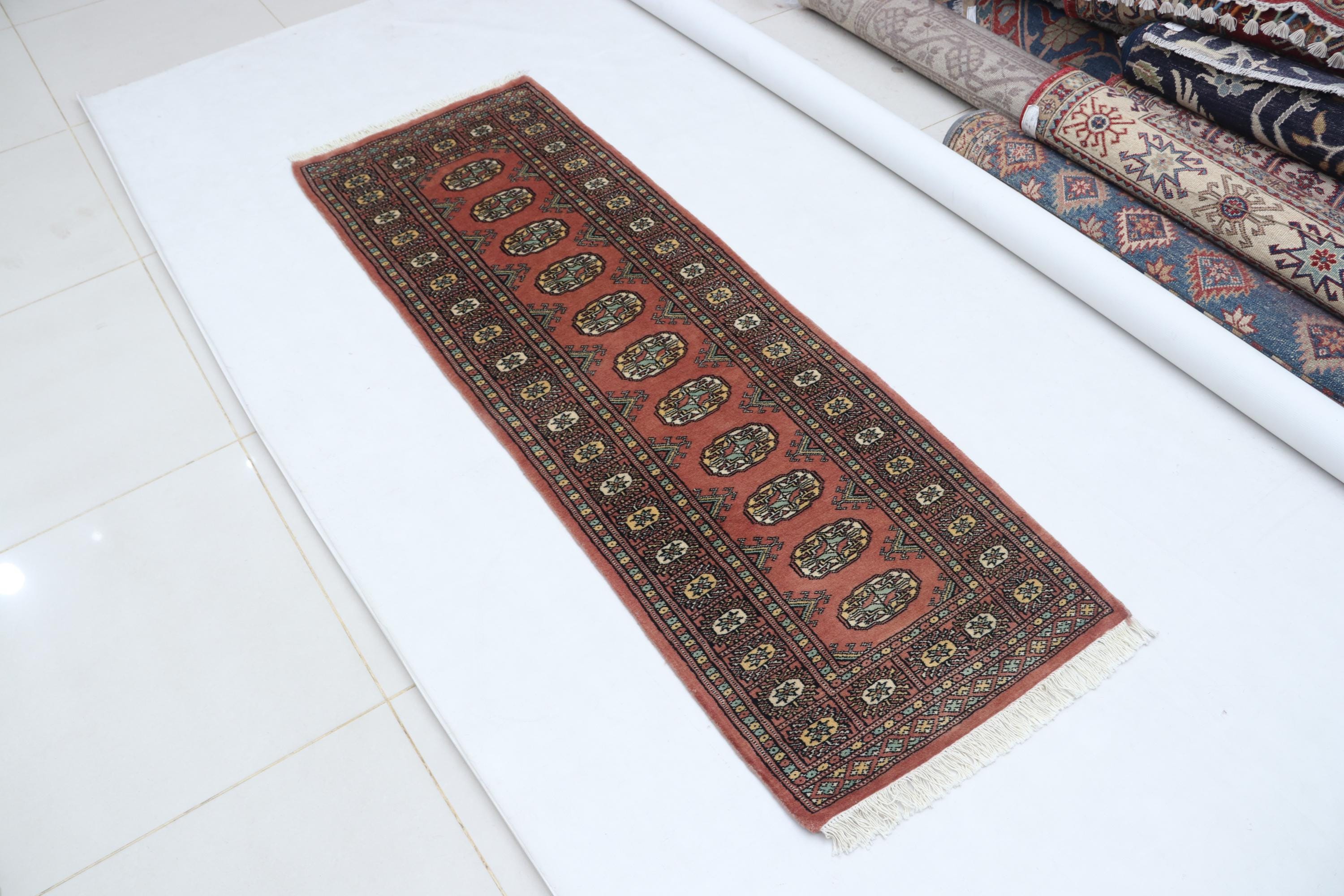 2.1 X 5.11 ft Copper Geomatrical Runner Handmade, Mori Bokhara Cotton and Wool