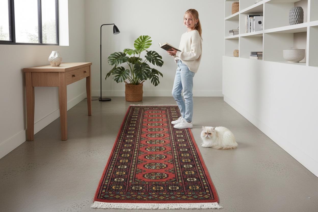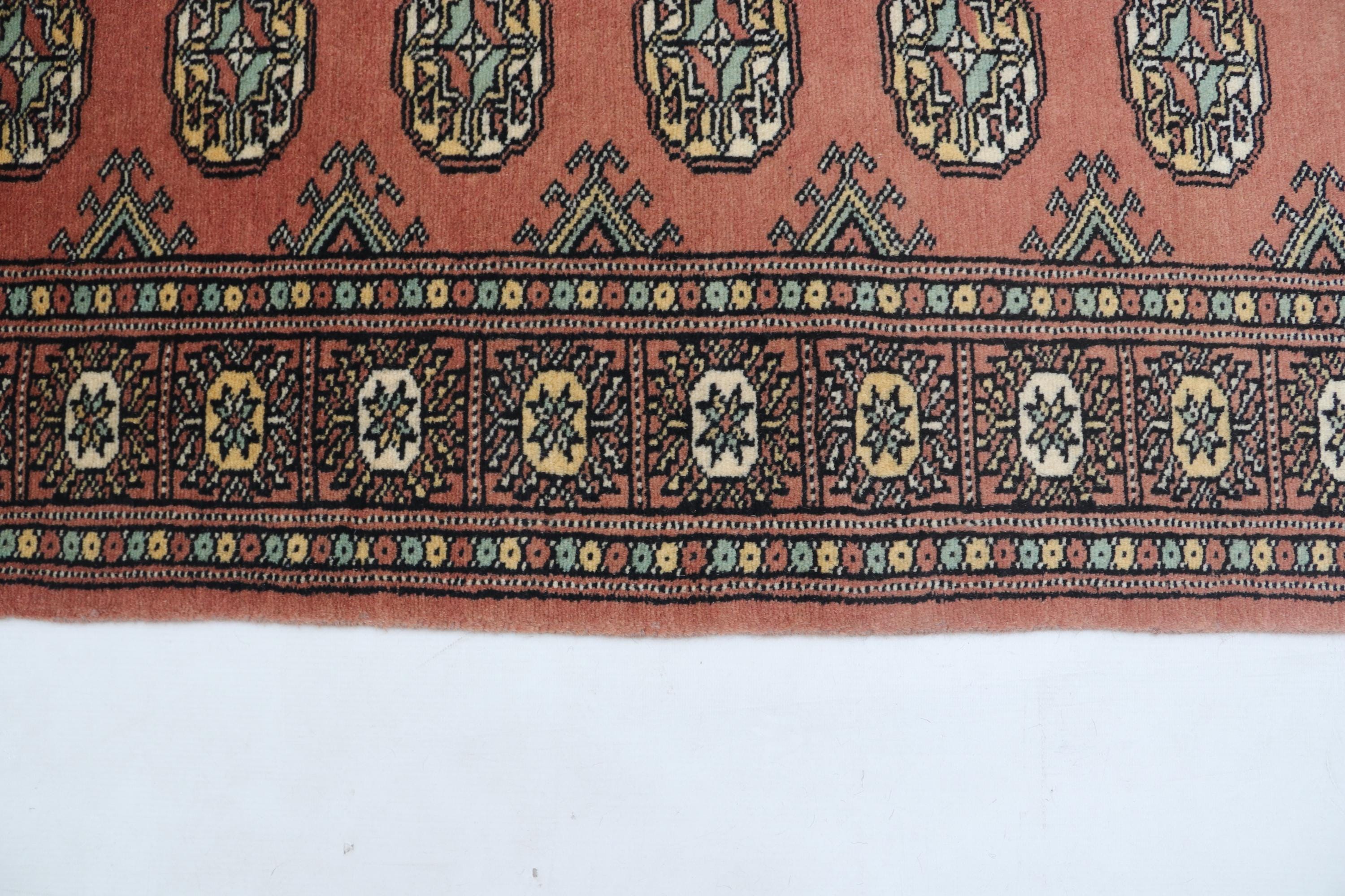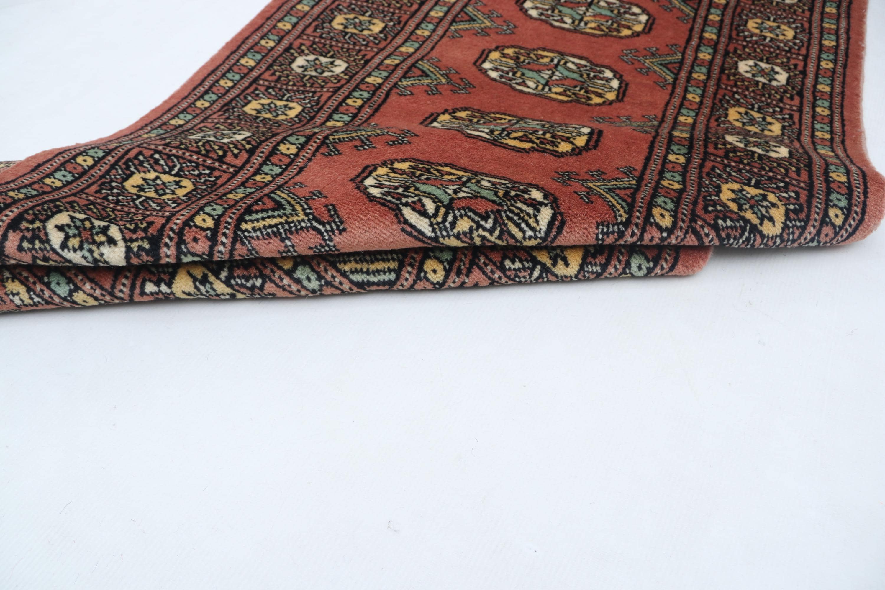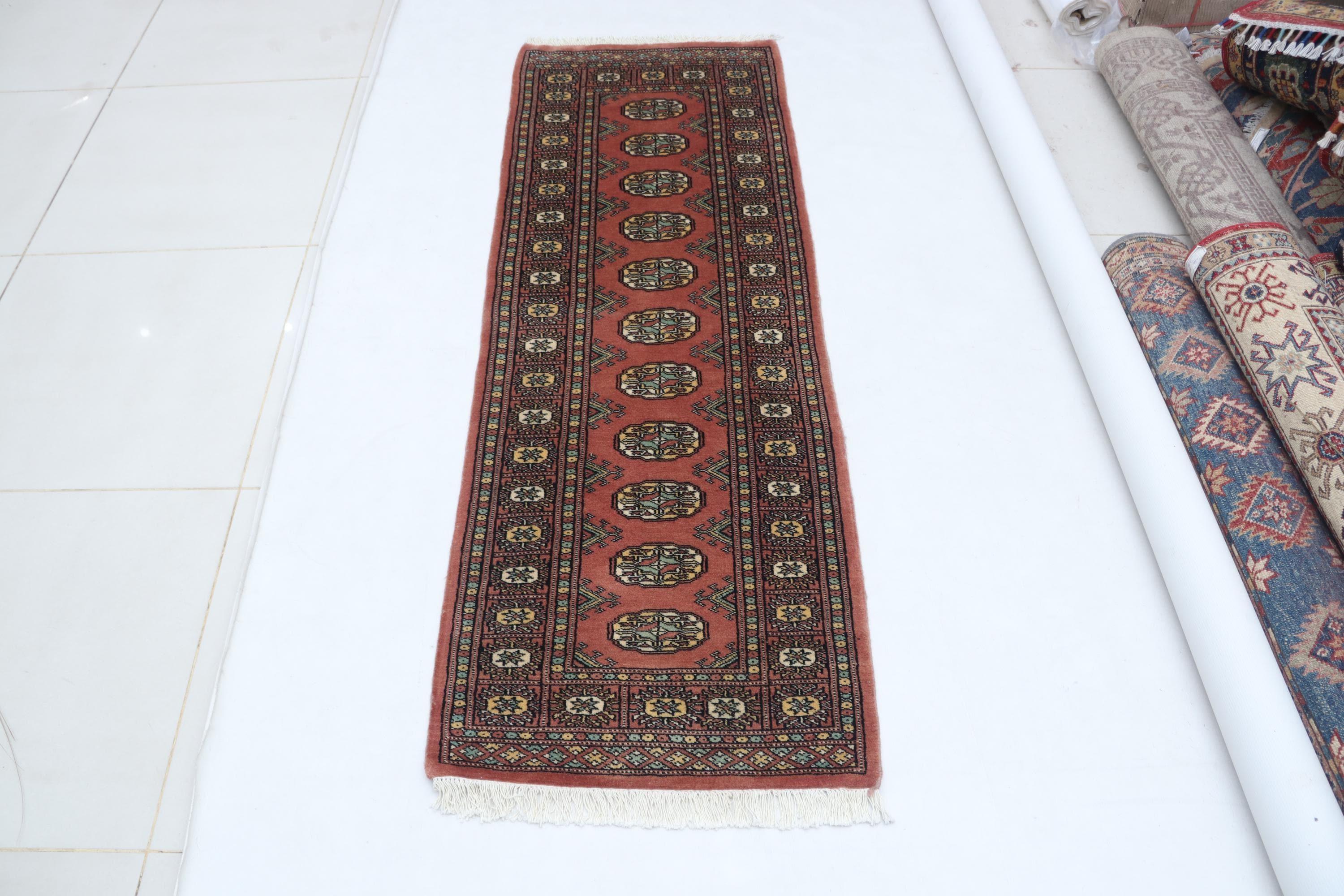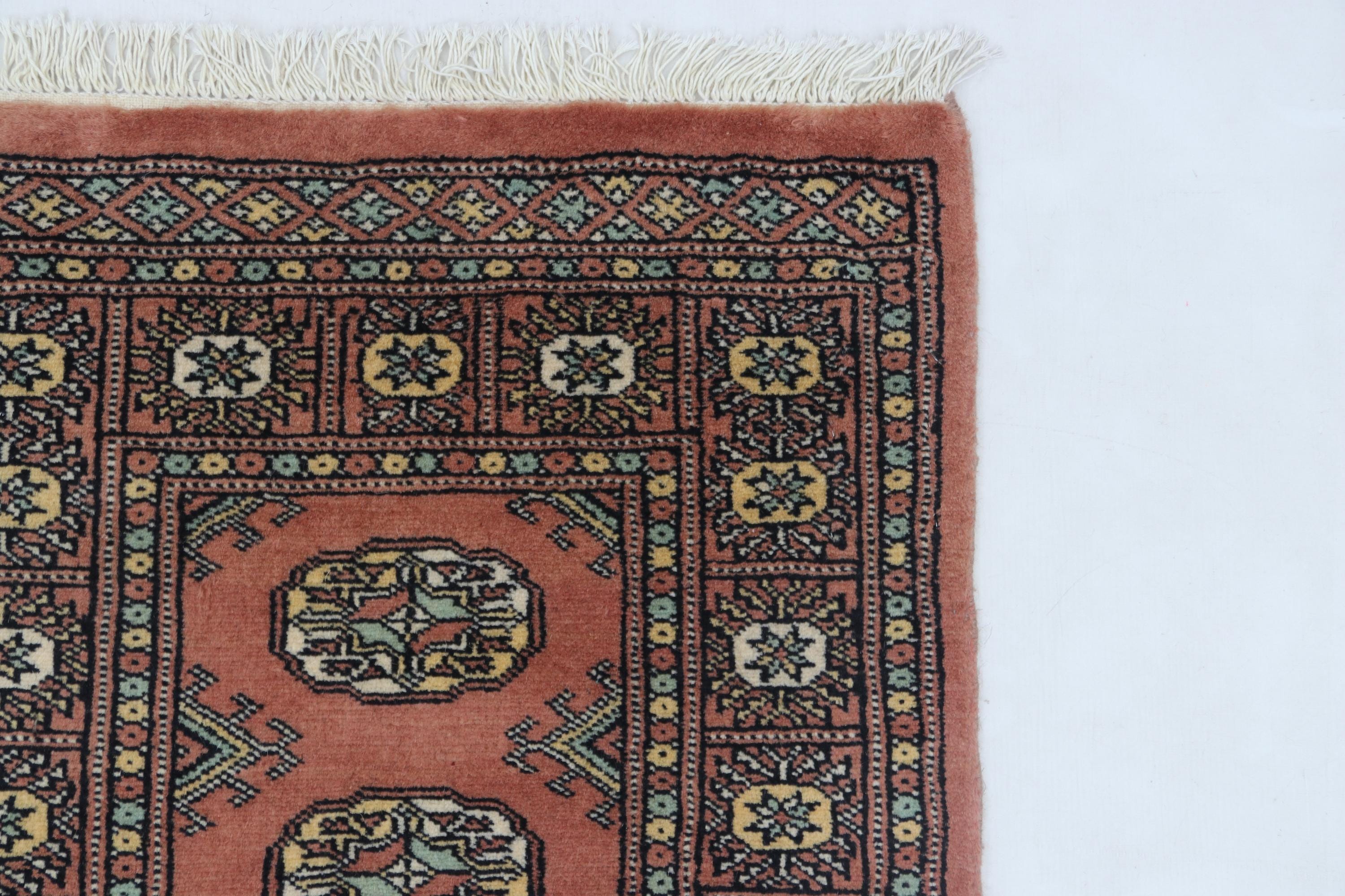 2.1 X 5.11 ft Copper Geomatrical Runner Handmade, Mori Bokhara Cotton and Wool