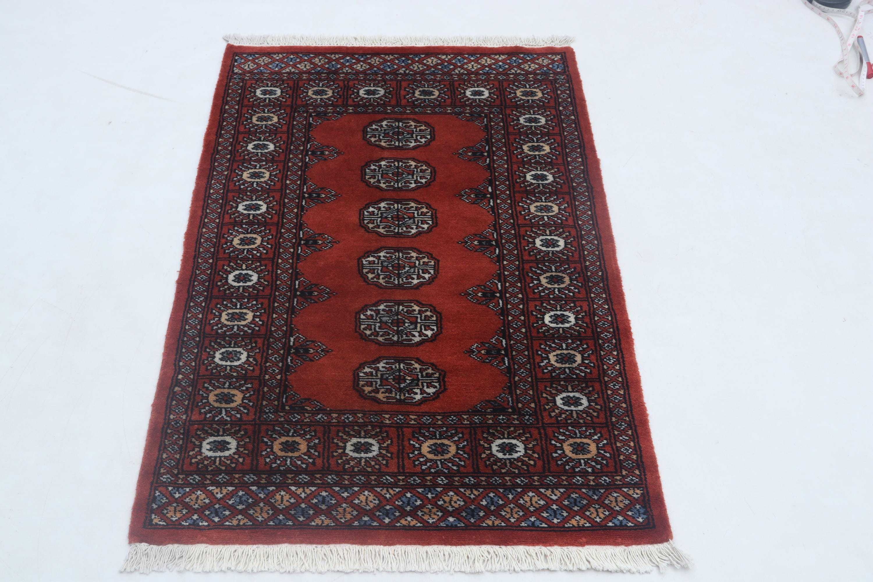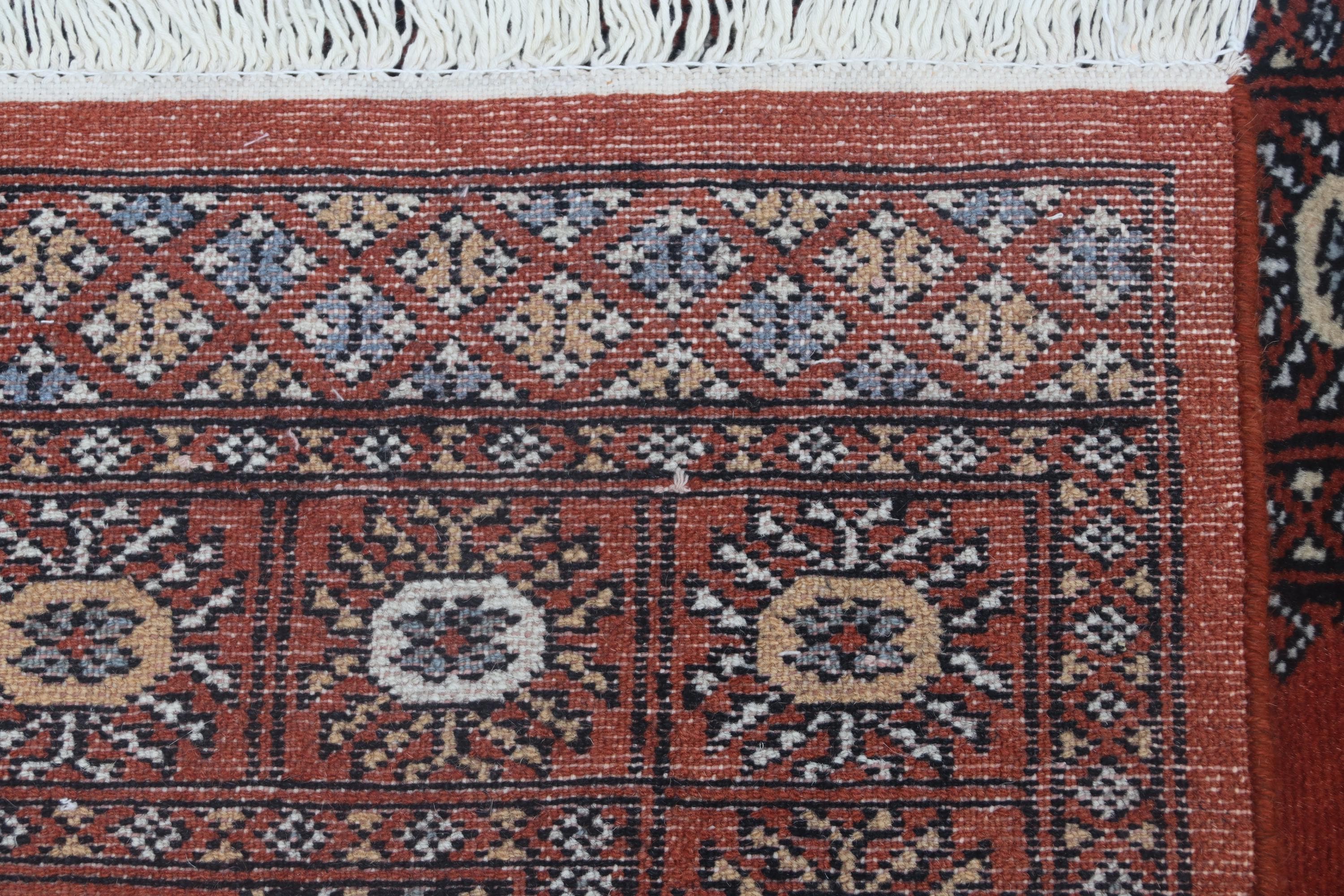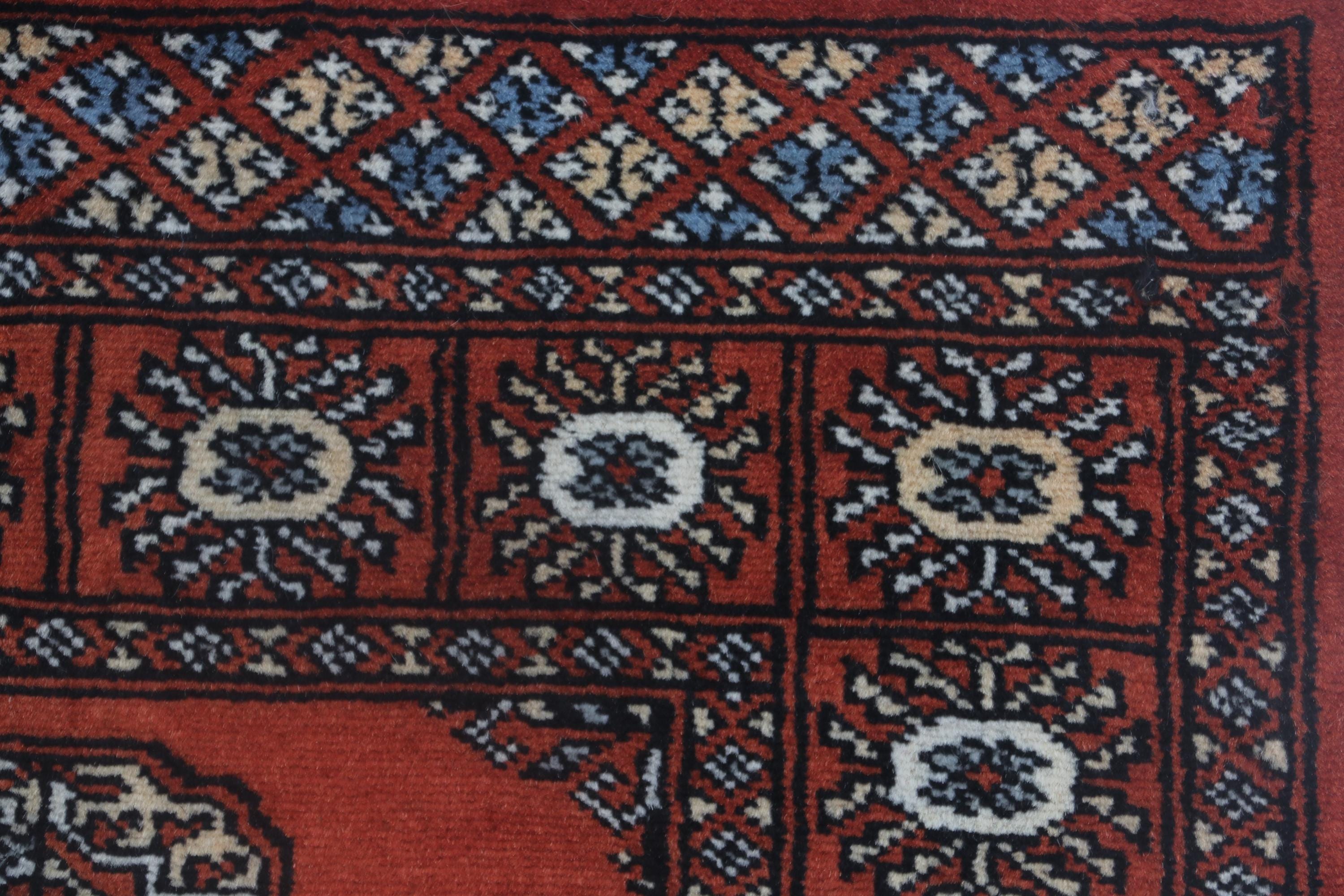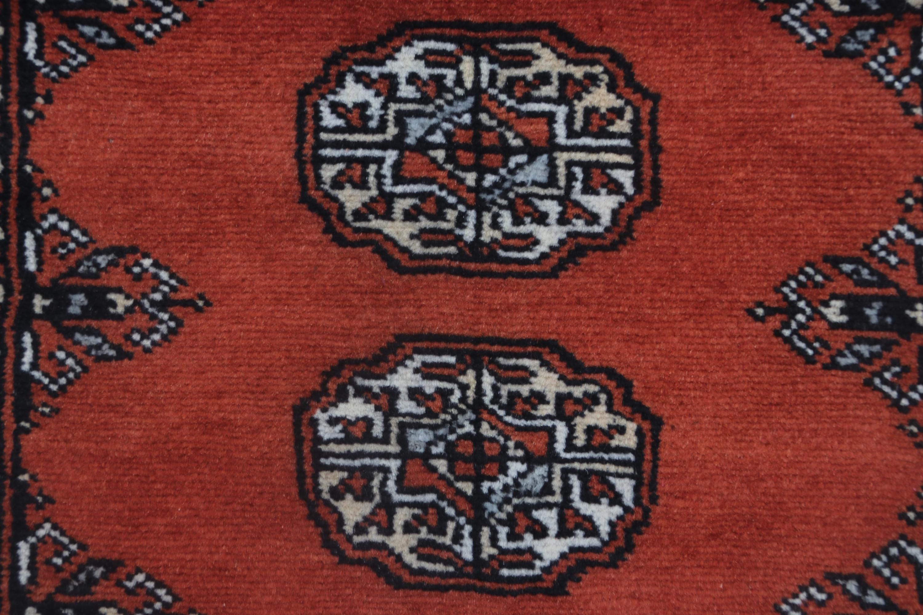 2.7X 4.0 ft Red Geomatrical Handmade Runner, Mori Bokhara Cotton and Wool