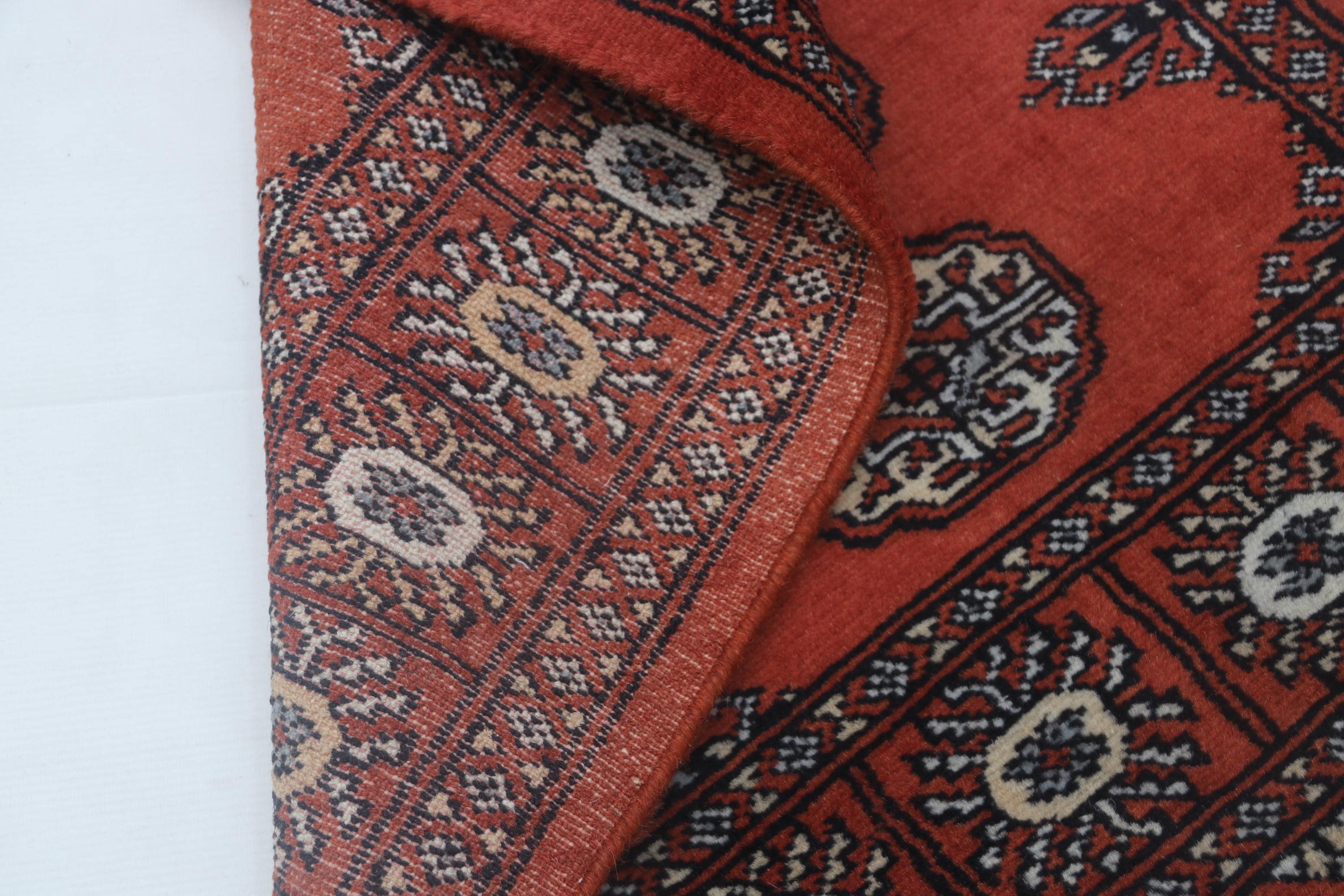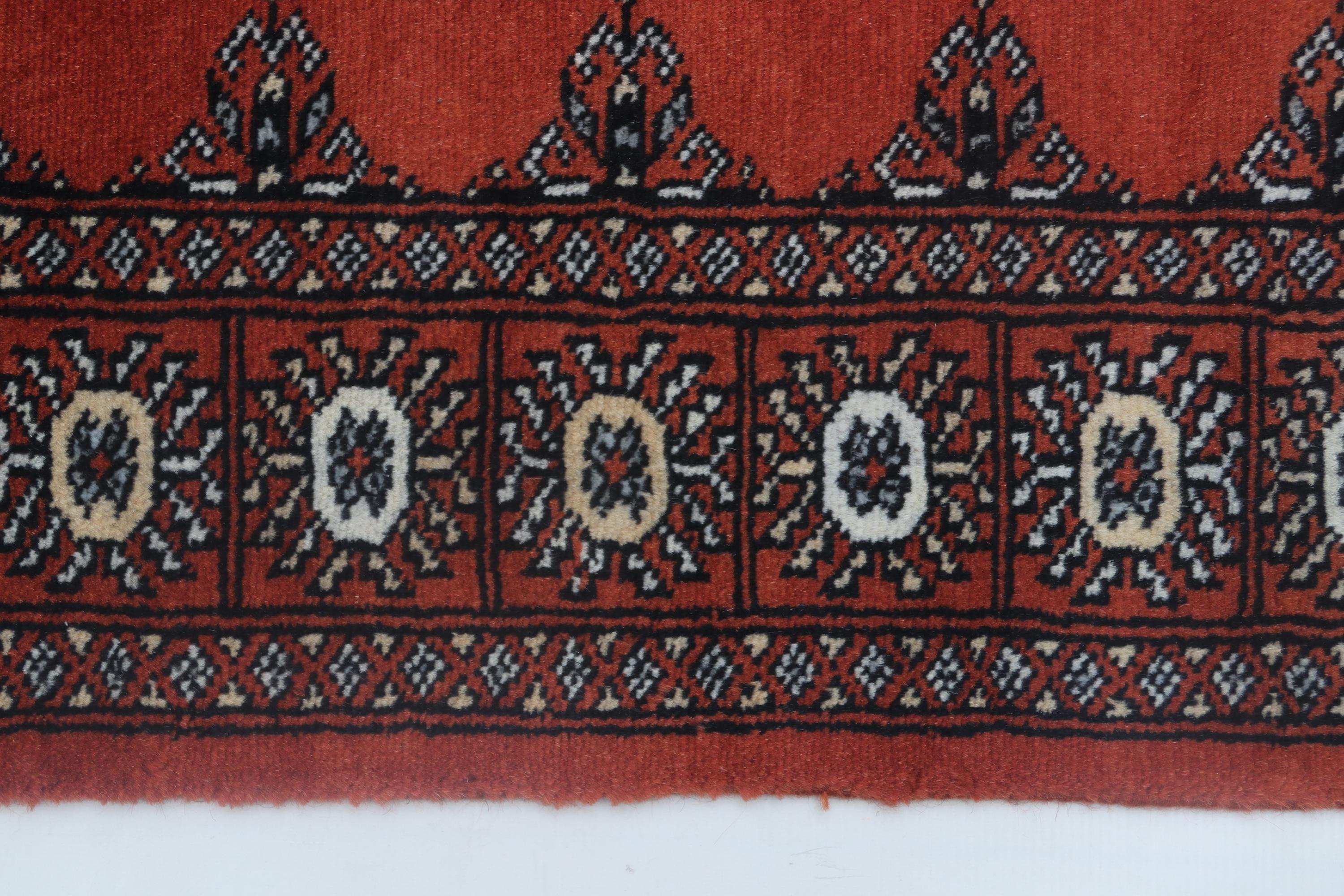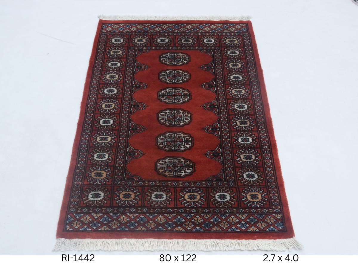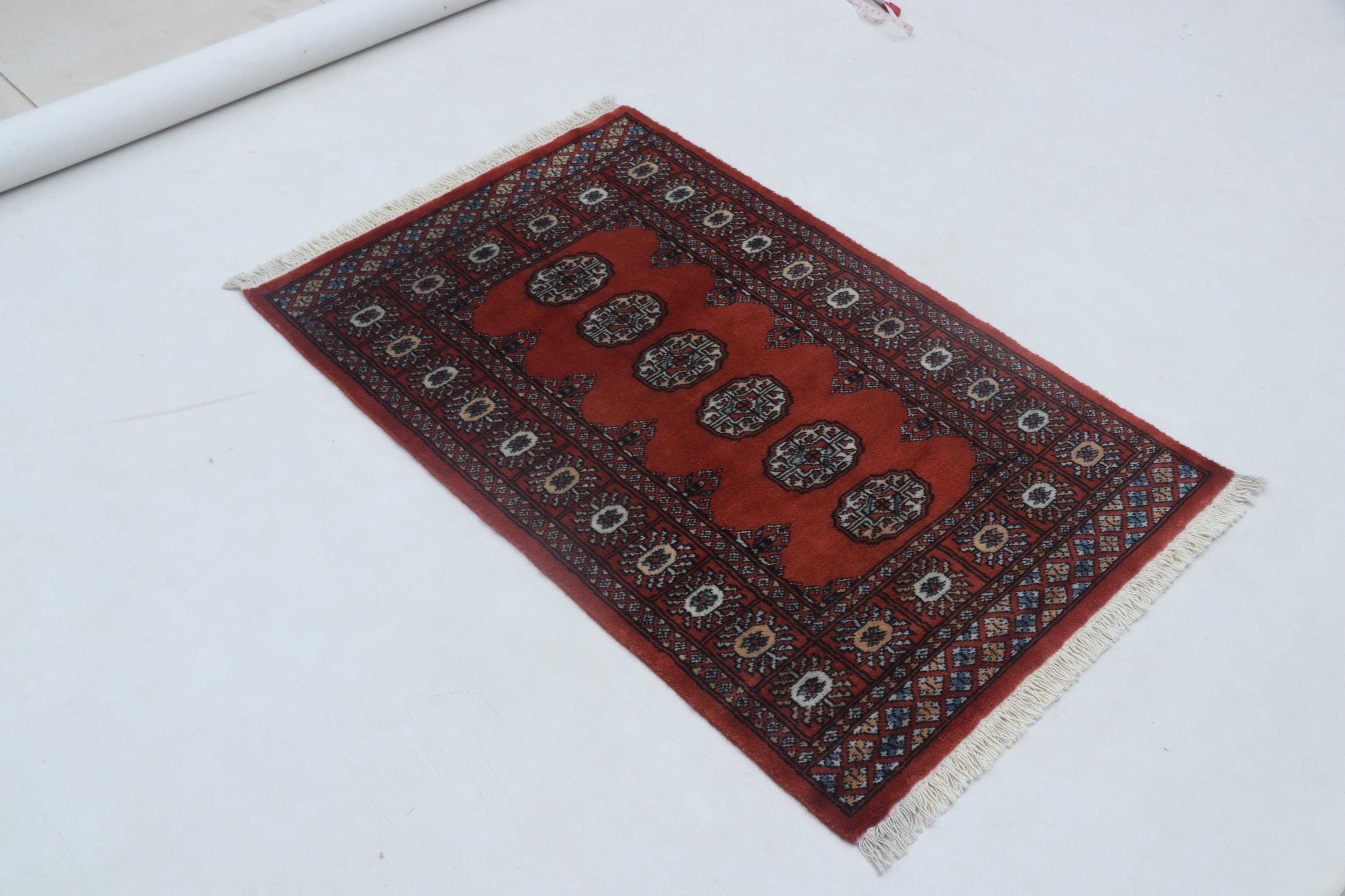2.7X 4.0 ft Red Geomatrical Handmade Runner, Mori Bokhara Cotton and Wool