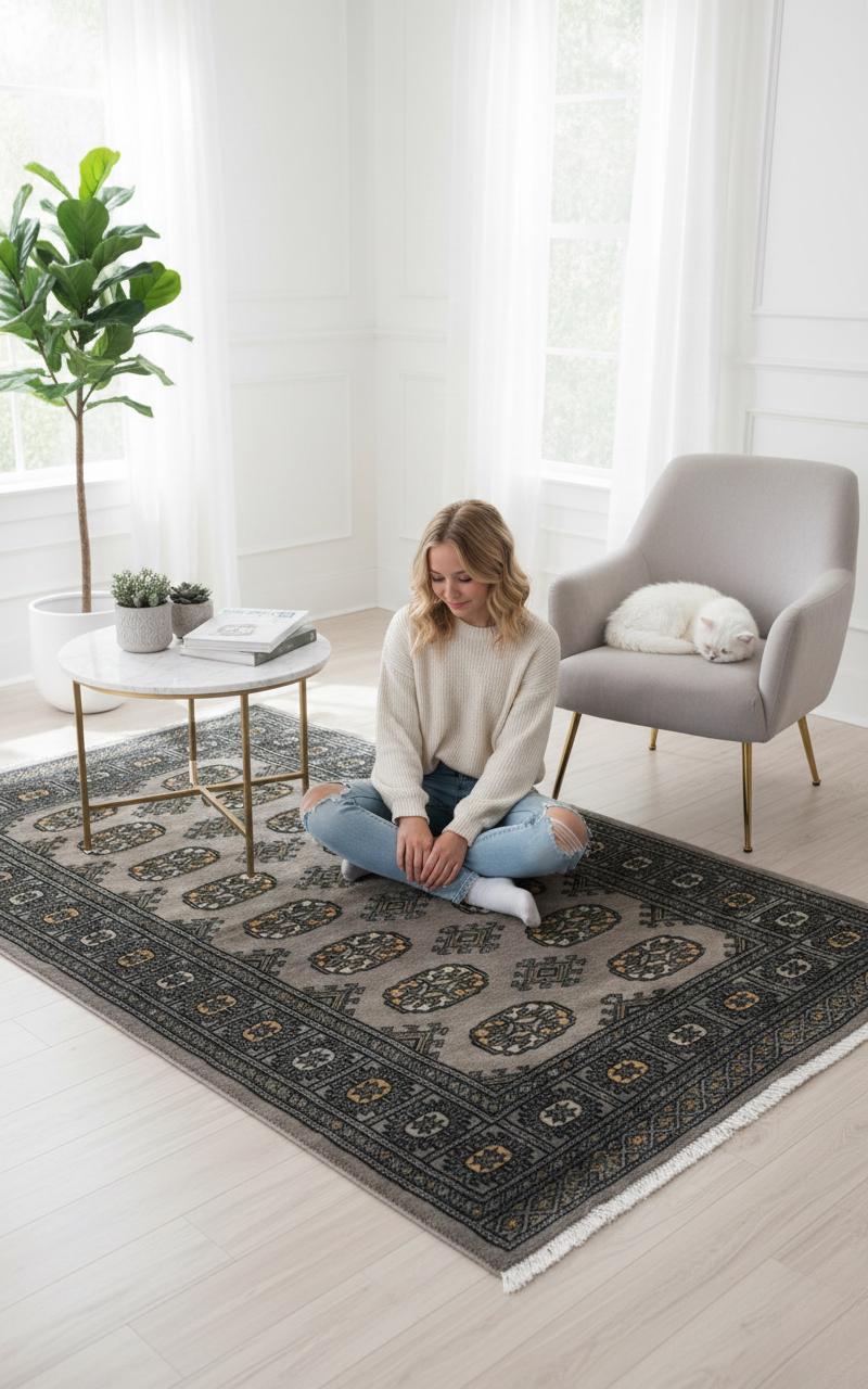 Add timeless charm to your home with this handmade Geomatrical rug.