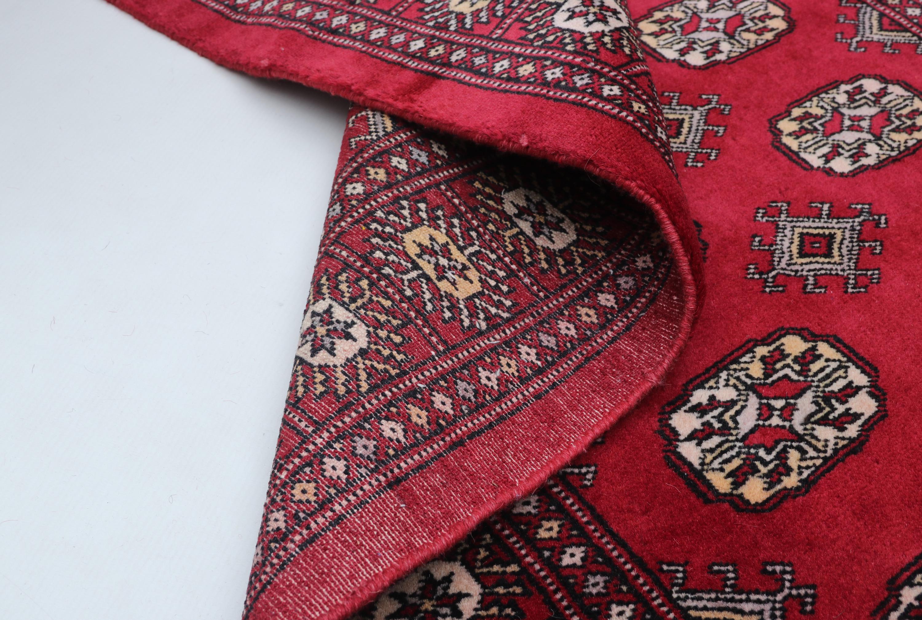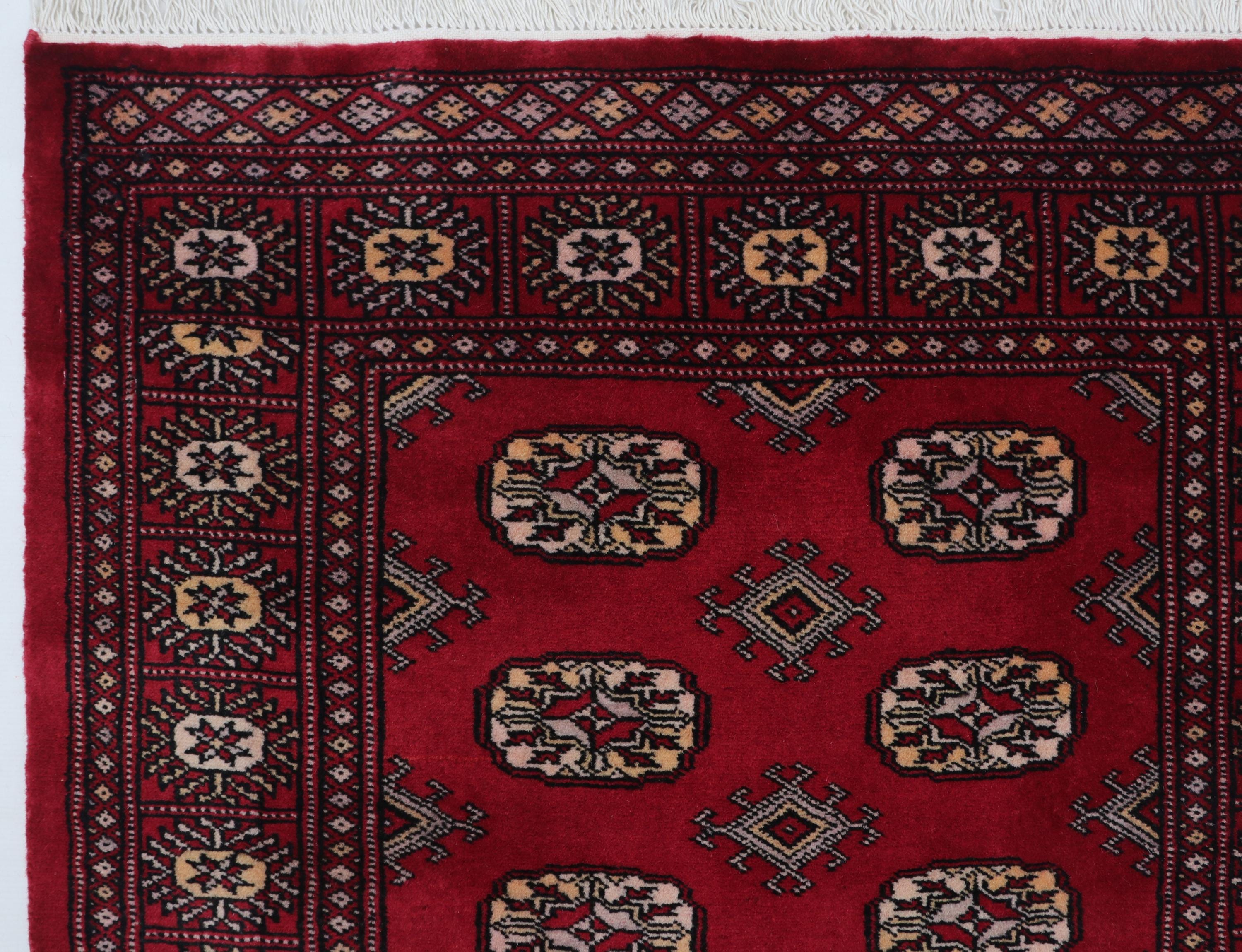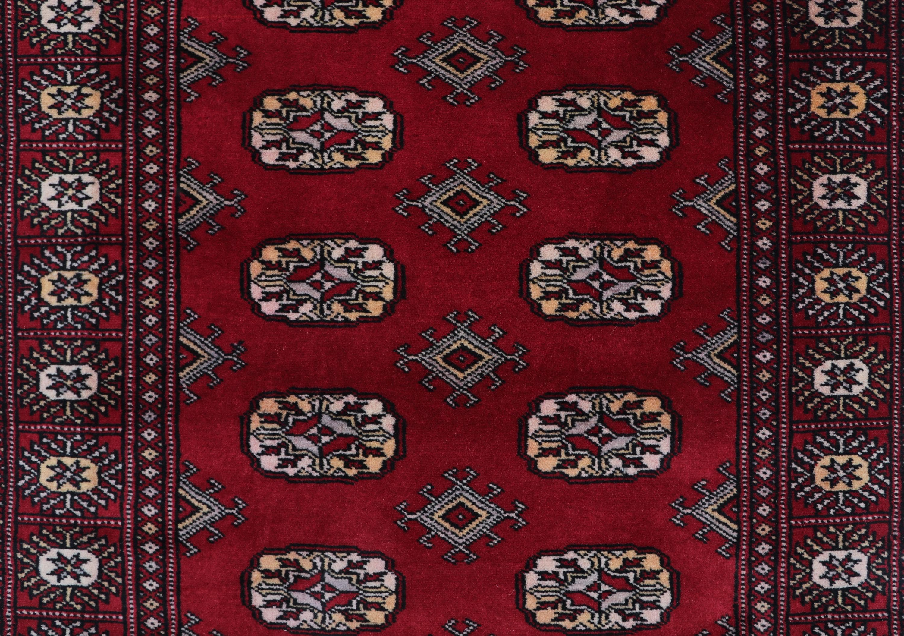 3.0 X 4.9 ft Red Geomatrical Handmade Runner, Mori Bokhara Cotton and Wool