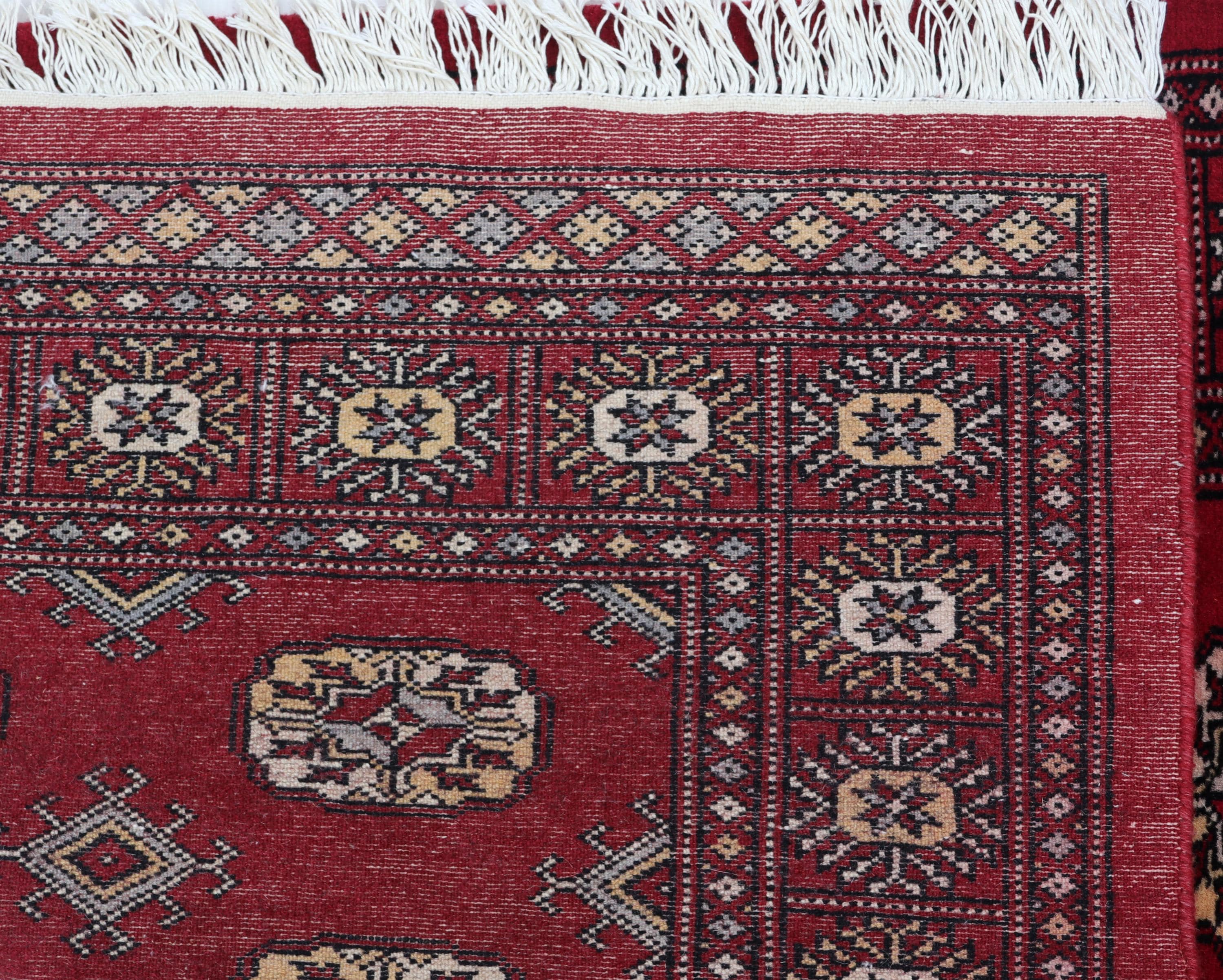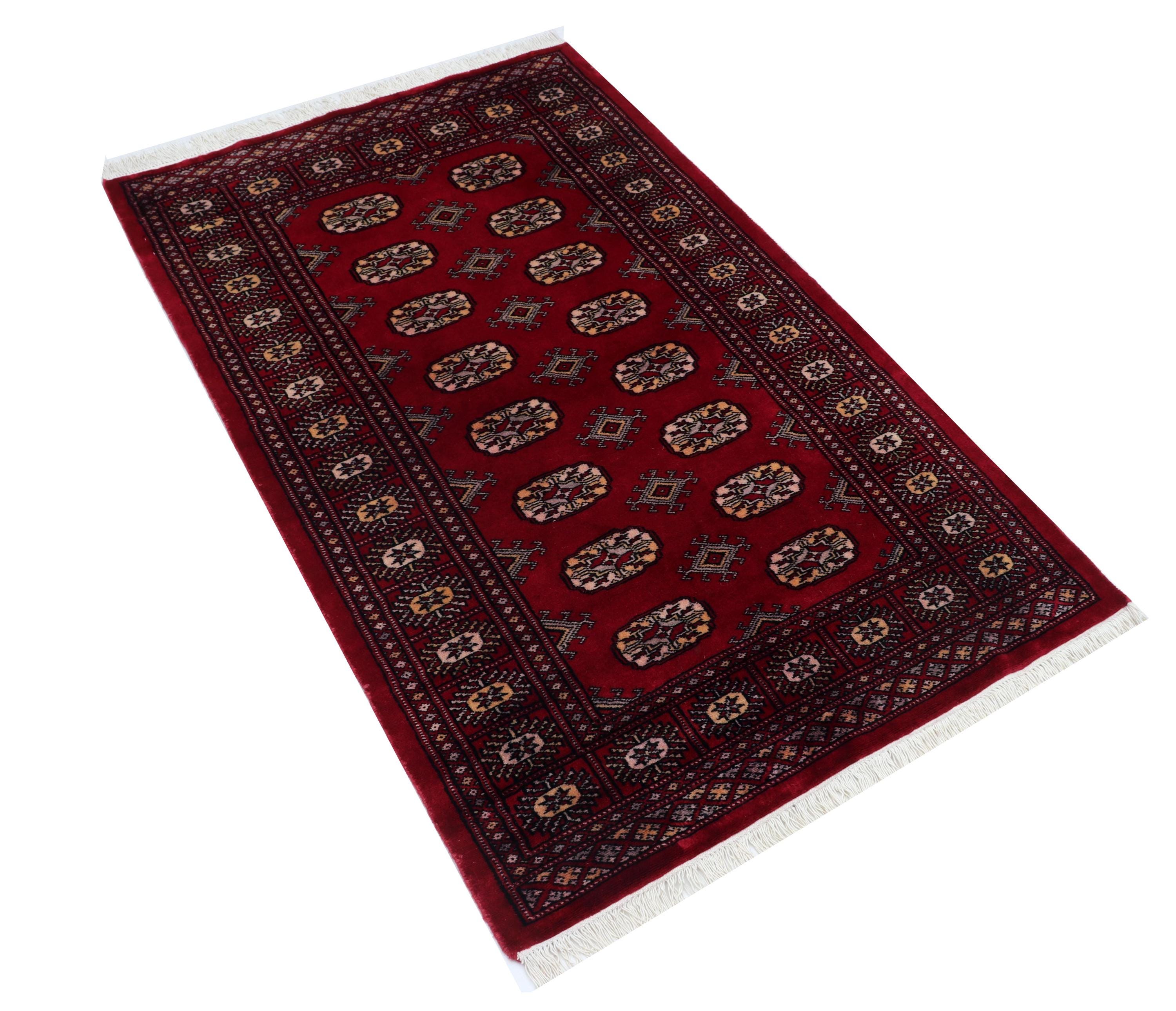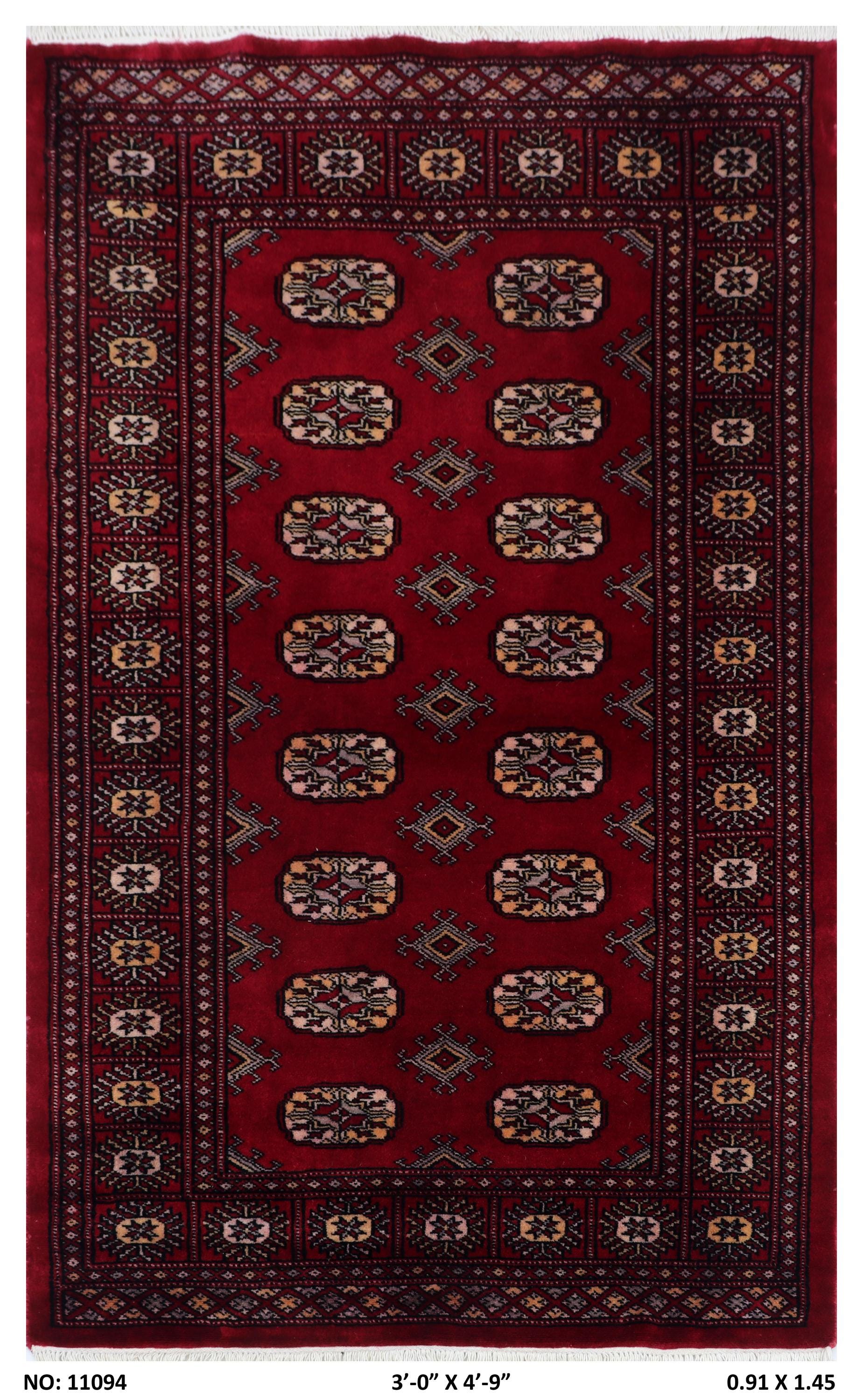 3.0 X 4.9 ft Red Geomatrical Handmade Runner, Mori Bokhara Cotton and Wool