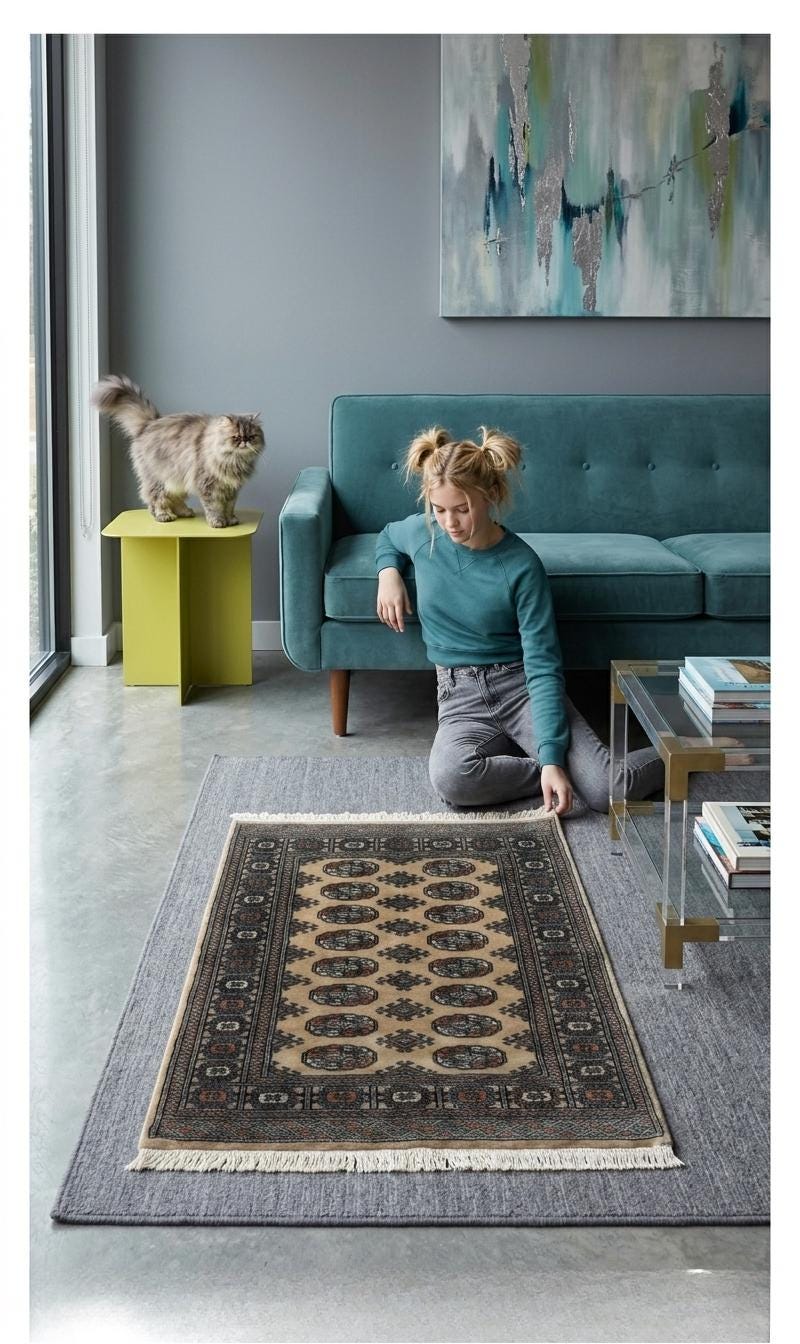 Add timeless charm to your home with this handmade Geomatrical rug.