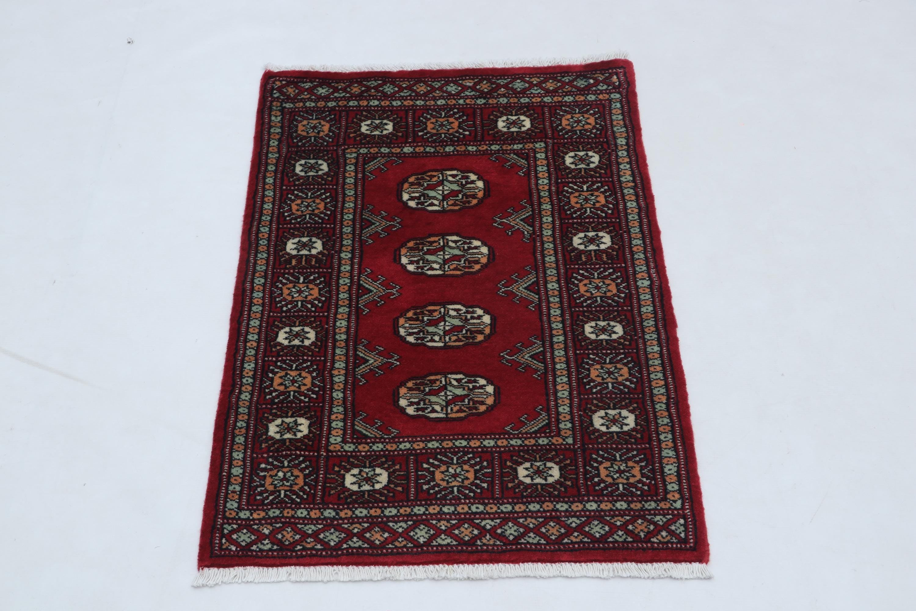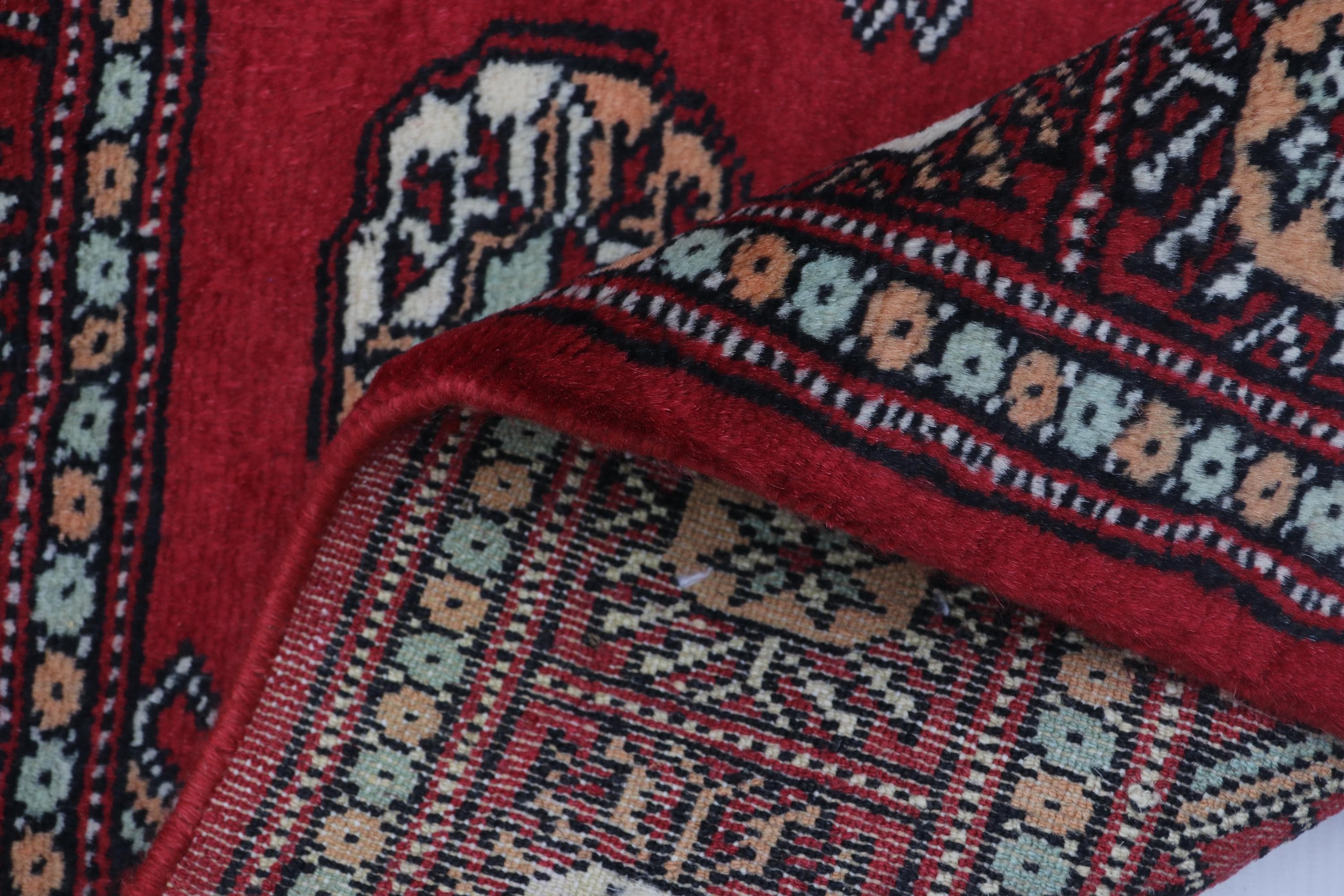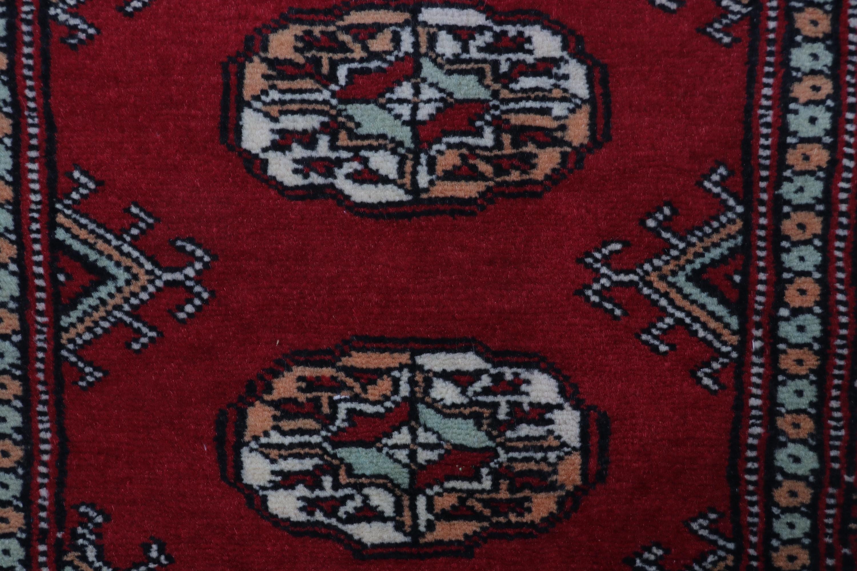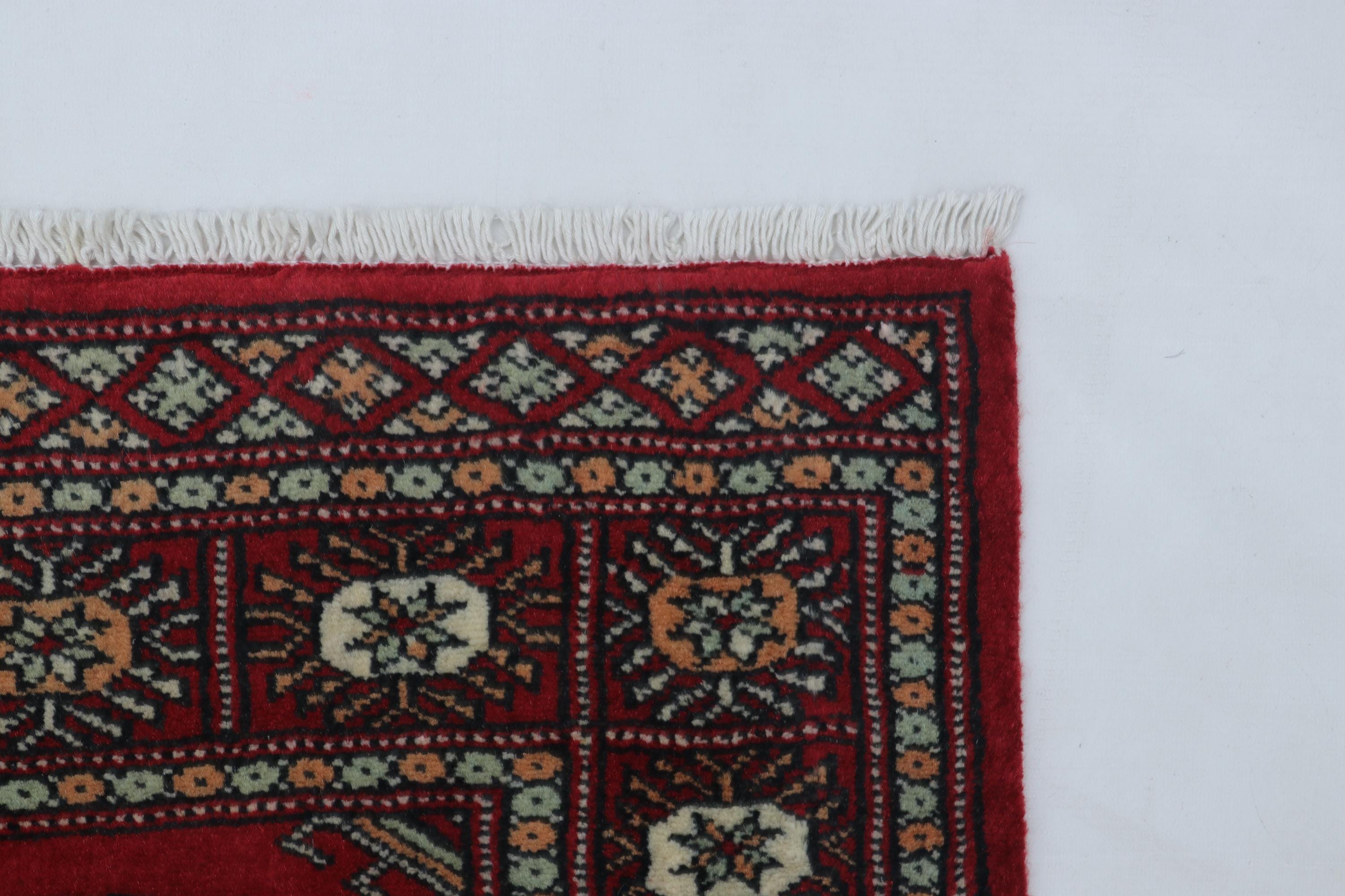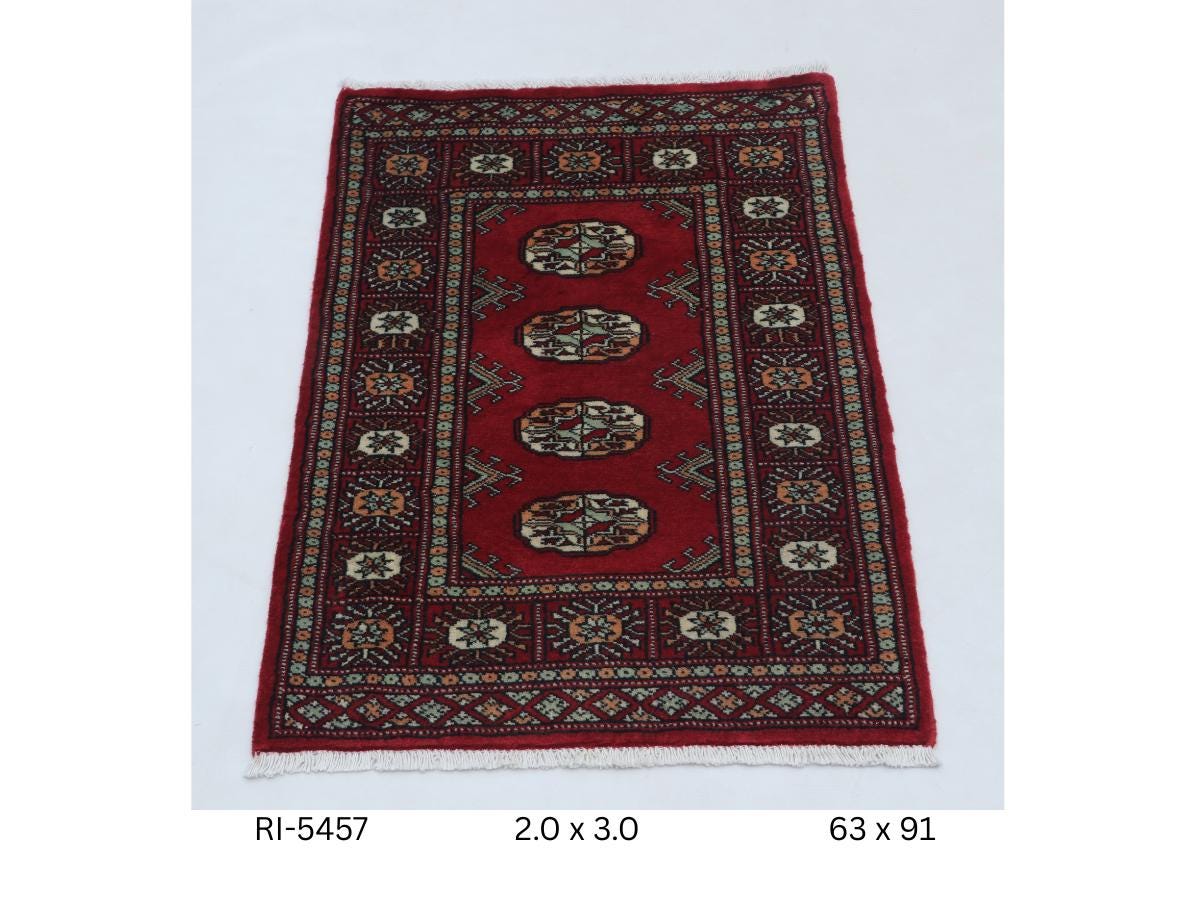 2.0 X 3.0 ft Red Geomatrical Handmade ,Mori Bokhara Cotton and Wool