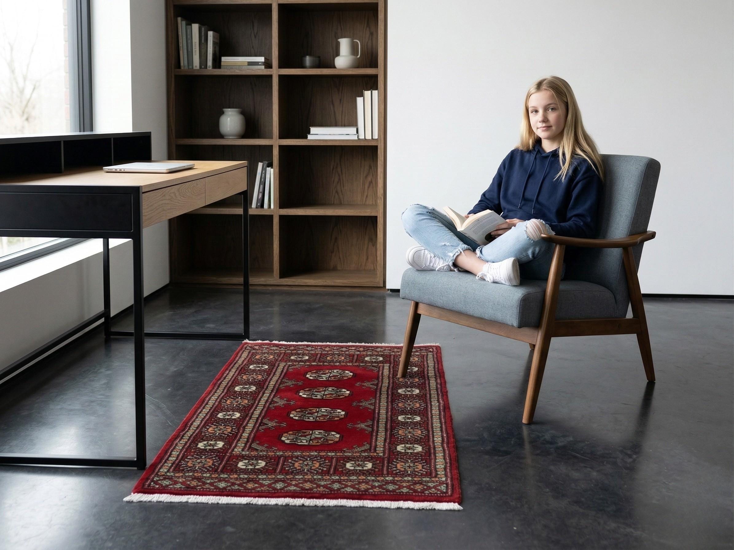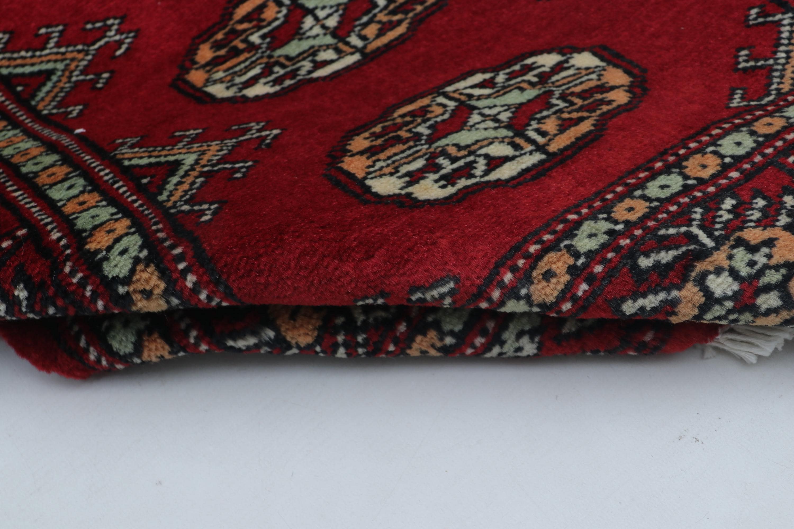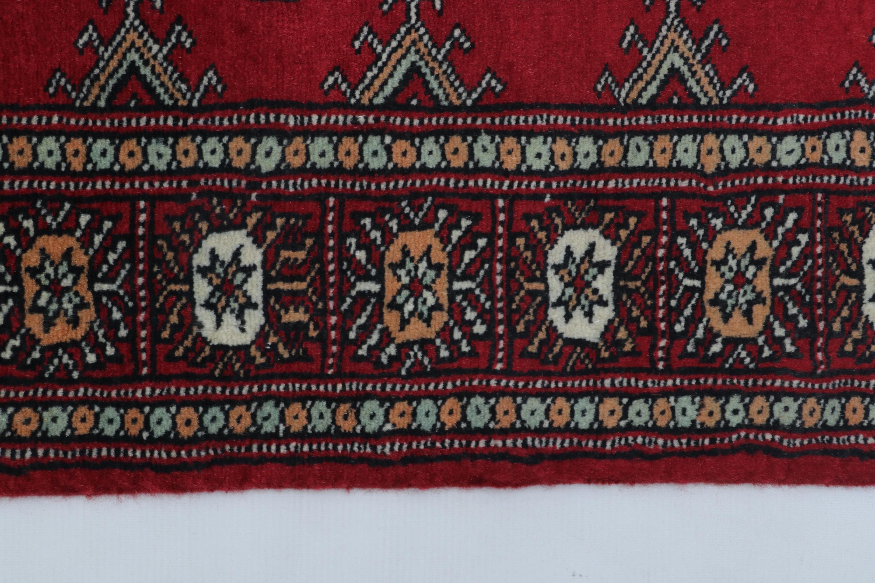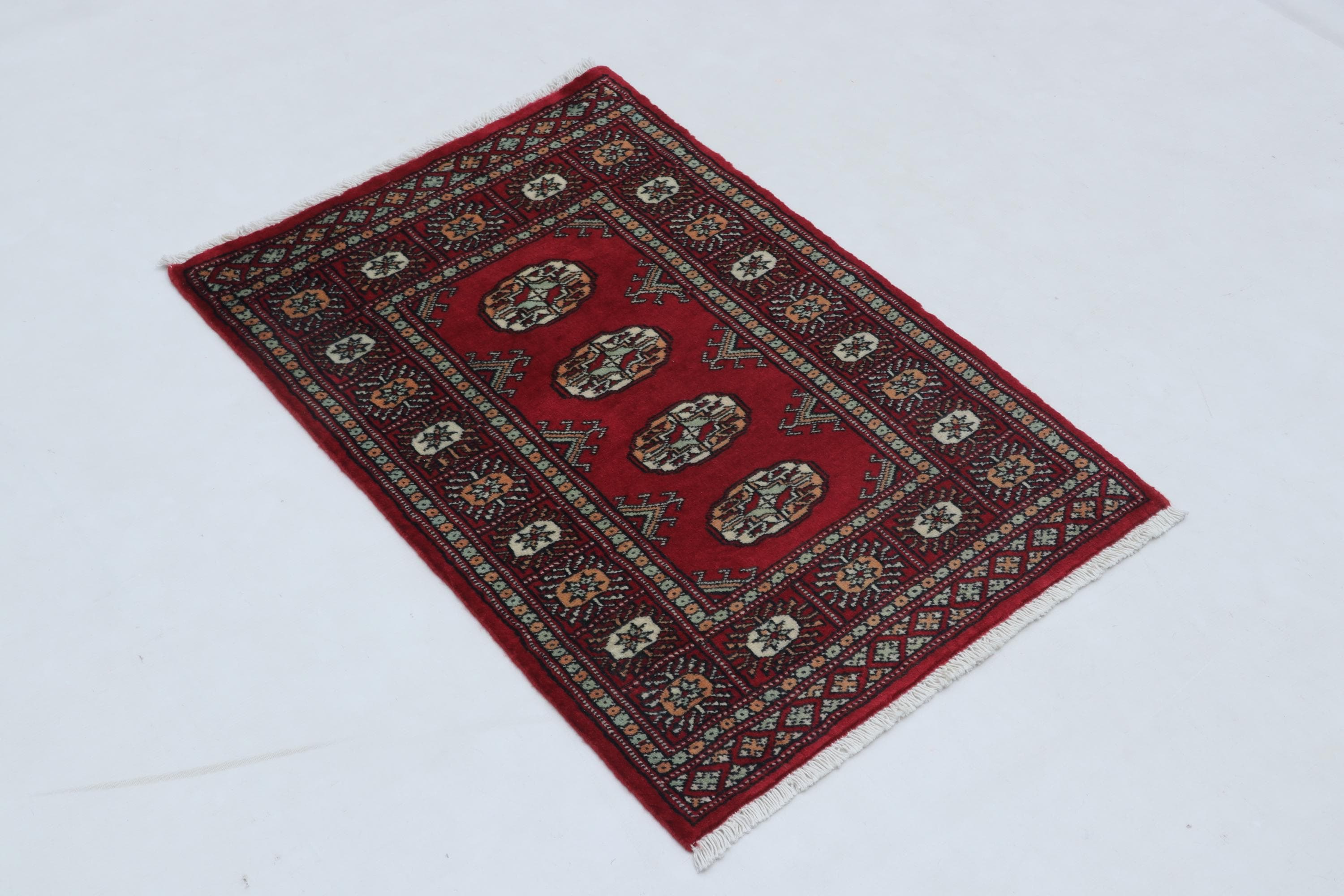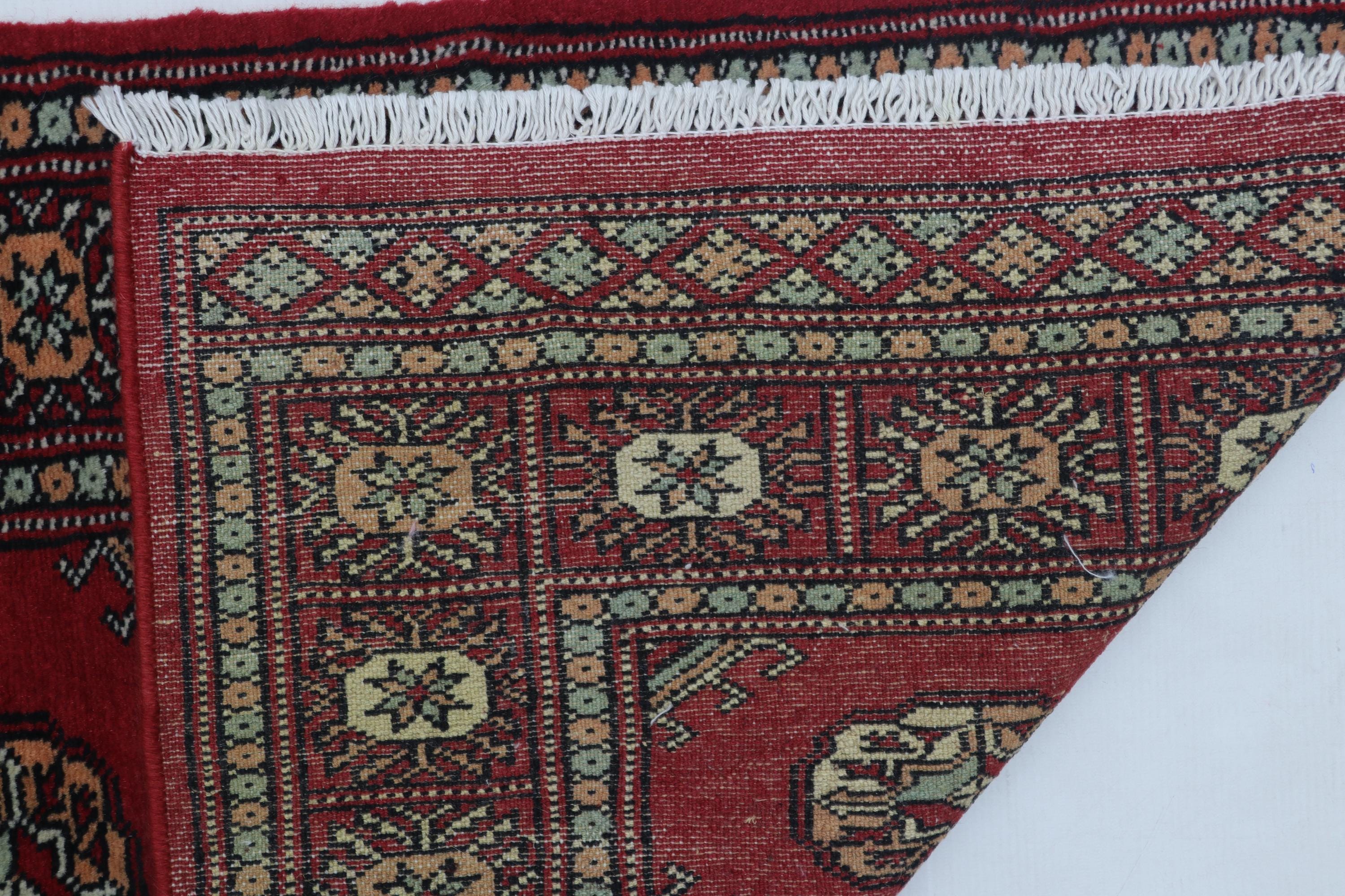 2.0 X 3.0 ft Red Geomatrical Handmade ,Mori Bokhara Cotton and Wool