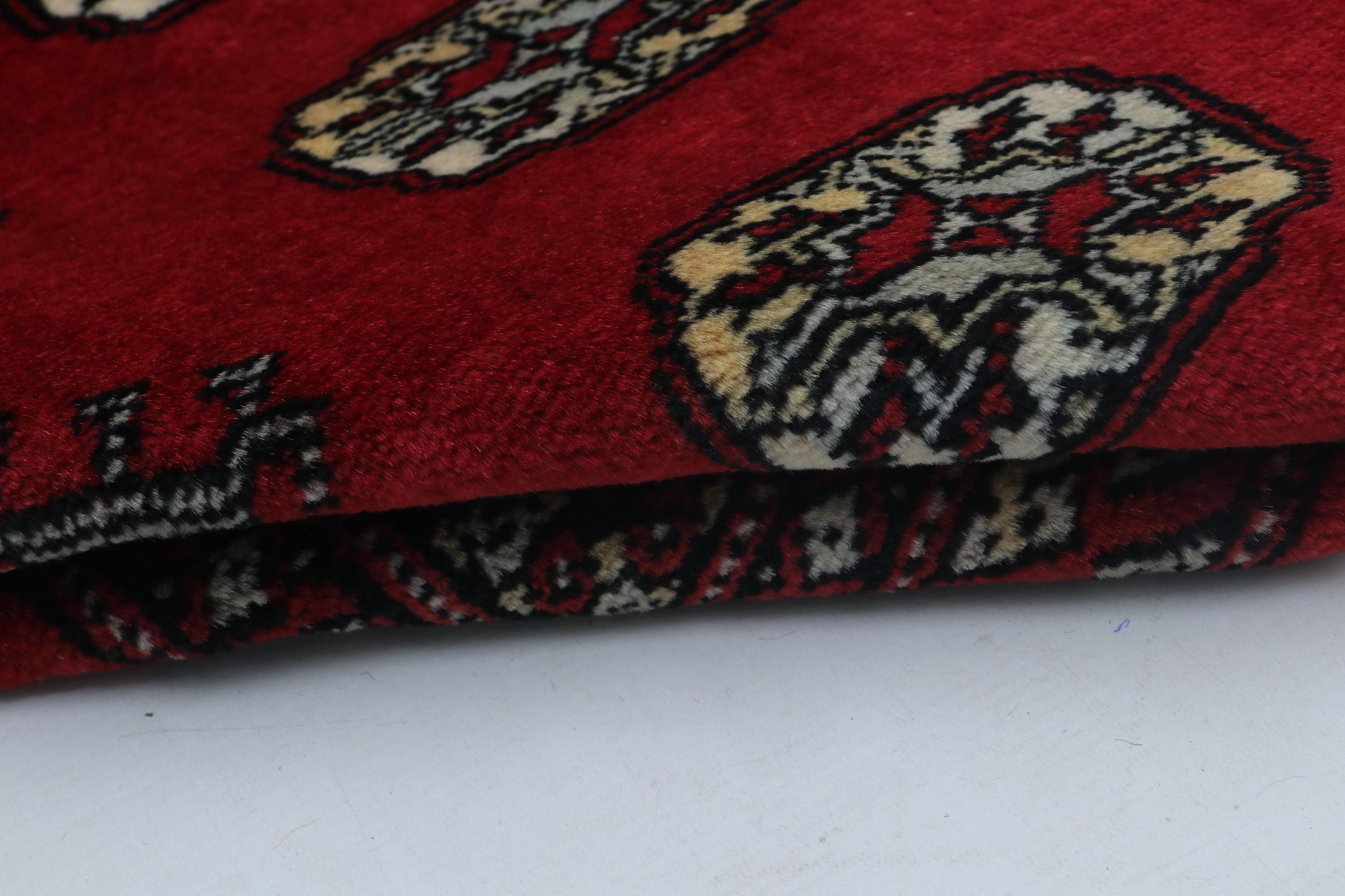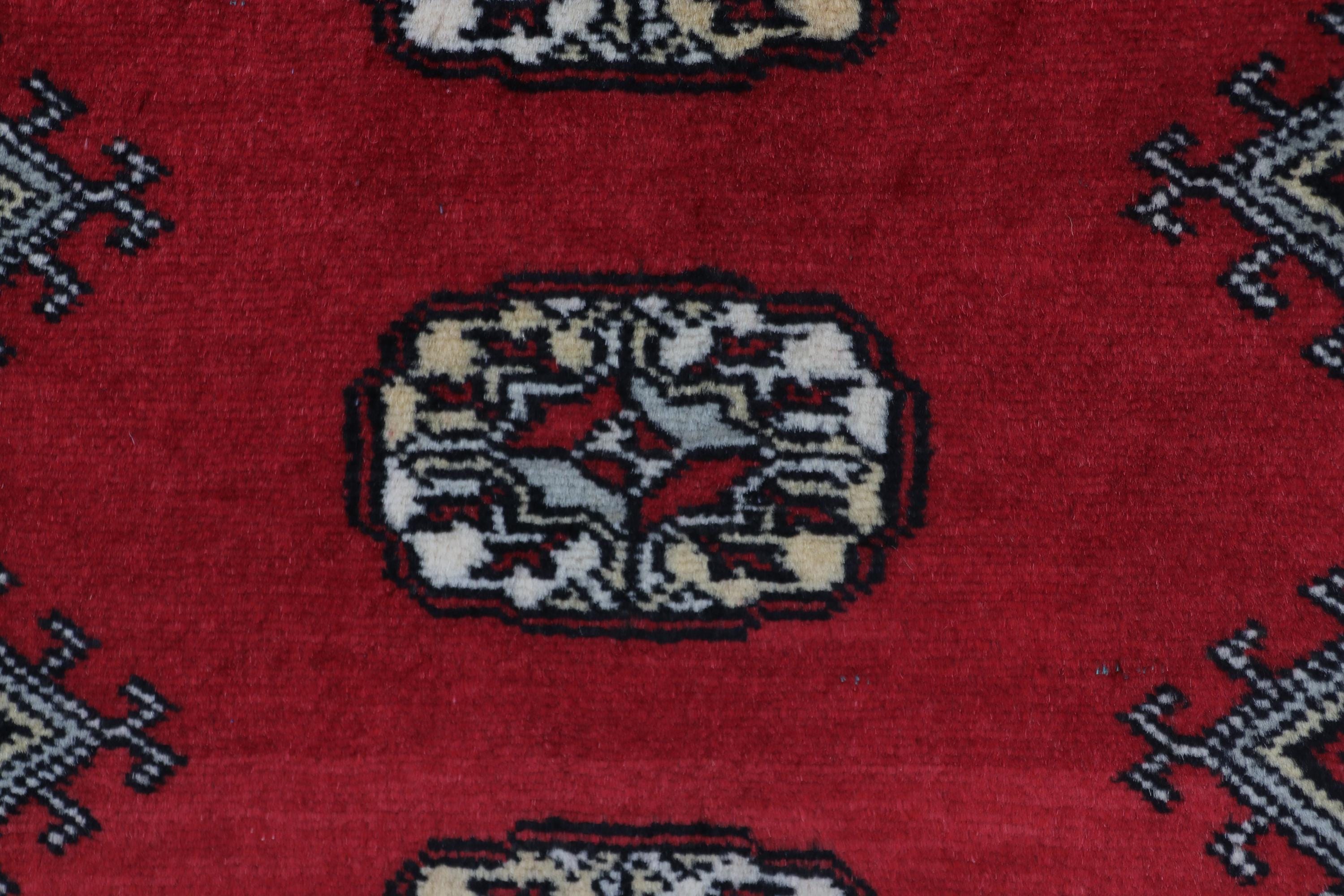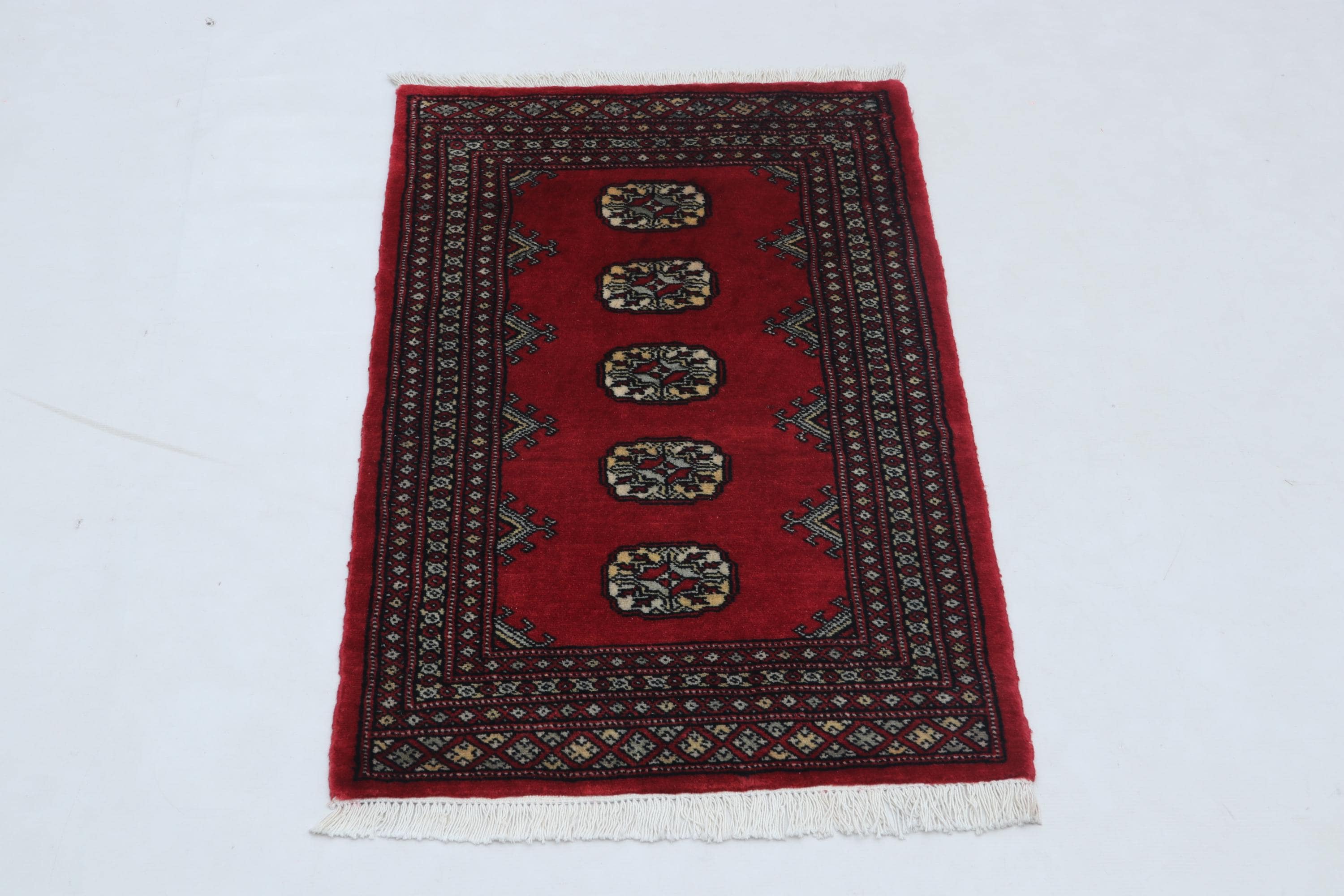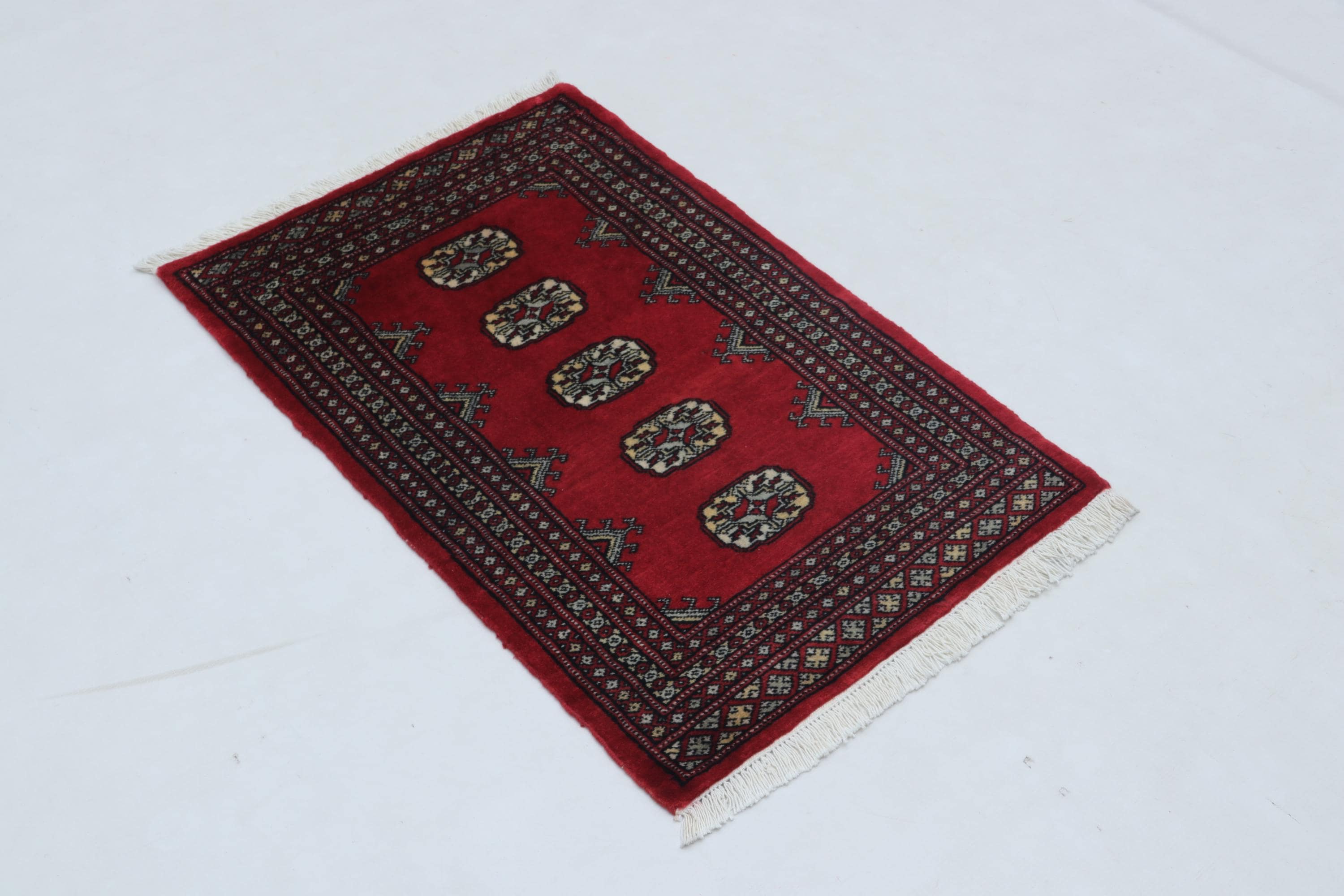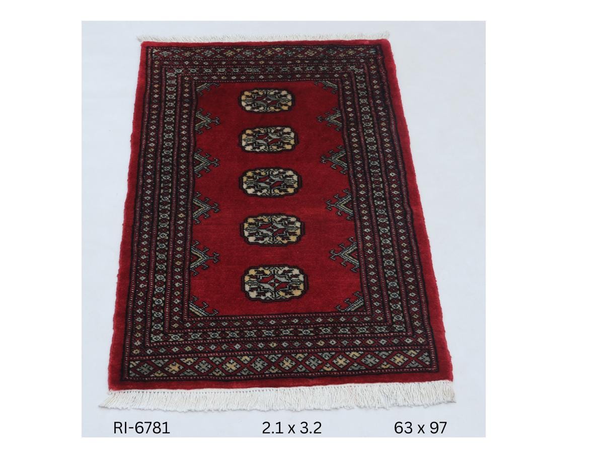 2.1 X 3.2 ft Red Geomatrical Handmade ,Mori Bokhara Cotton and Wool